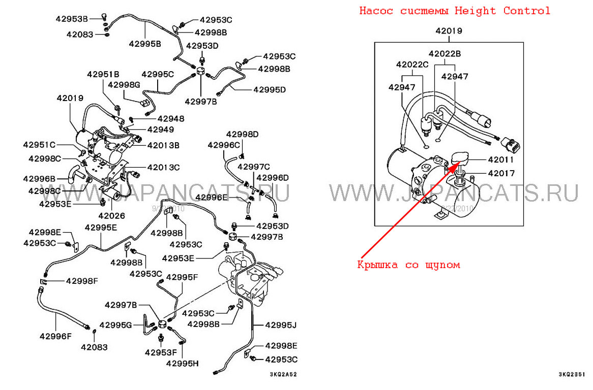 ИсточникДва года назад брали родственнику 1993 г.в. Паджеро-2( Mitsubishi Pajero-2 с системой Height Control )([V23W] 3000/SHORT WAGON [GNXE] SR-2/XR(WIDE/SS4),5FM/T) коротыш в максимальной комплектации(3.0л (6G72(12 клапанов/150 л.с.) механика, регулируемые по жесткости(3 степени)амортизаторы, система гидроподъема кузова!!!(ставили только на коротышах японческих, поднимает кузов на 7см(над задними пружинами гидроподушка,передний торсион с гидроаккумулятором)) + легендарный СуперСелект. Очень крепкий авто. расход16-17 в городе, и мотор по моему лучший для паджеро. Кстати, про систему гидроподъема 2-года владелец не знал о ее существовании , пока я в гости не приехал Оказалось не было уровня рабочей жидкости (район левого заднего колеса похоже на блок АБС с многими трубочками.), долили декстрона до уровня контролируется щупом на крышечке, - и авто как верблюд поднимает сначала зад, а потом подпрыгивает перед. С 40 км/ч система Height Control переходит в нижнее положение. Мосты остаются на месте (т.е. клиренс не увеличивается), а поднимается только кузов-, вероятно, система создана для улучшения геометрической проходимости(угол въезда/съезда и под пузом побольше пространства). В салоне эту систему выдают кнопочки на подлокотнике UP/DOWN (рядом с регулировкой жесткости аммортизаторов (Sport/Normal/Comfort).Кнопку необходимо однократно нажать и на панели начнет моргать желтая лампочка High, пока авто не задерется (сек 20-30), если авто в верхнем положении горит постоянно. И гаснет, как только авто упадет на обычную подвеску.