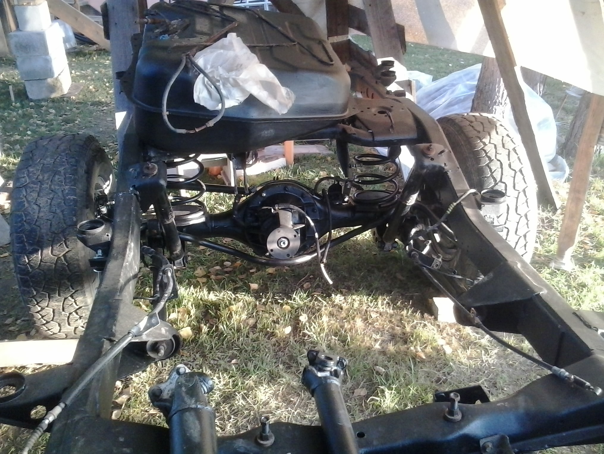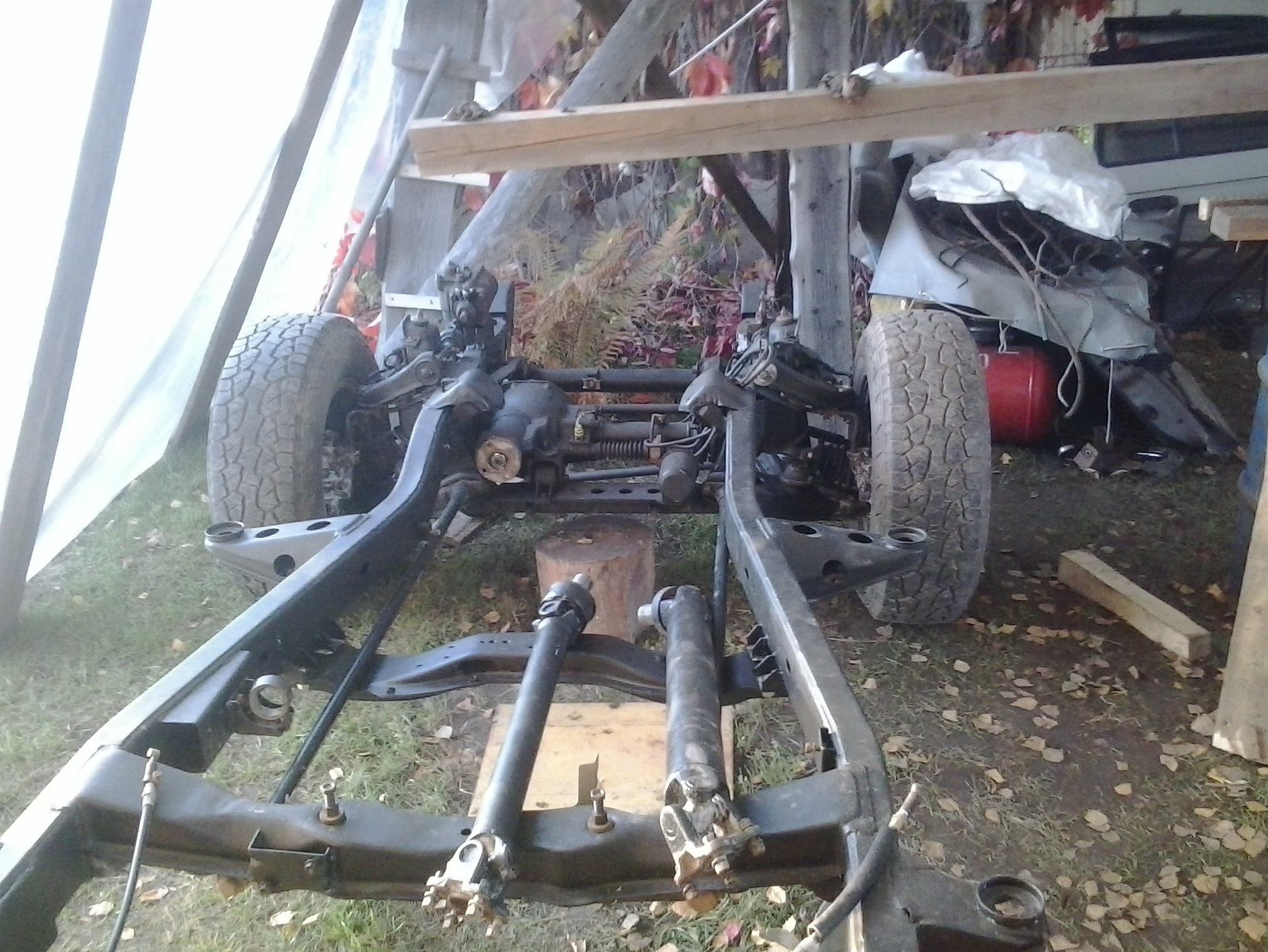 сейчас вся ходовка перебрана и покрашена, новая рама стоит на 4-х колесах.