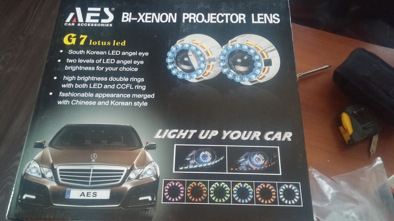 начну издалека. когда купил автомобиль, был очень разочарован светом фар, вернее даже не светом а его отсутствием при включенном освещении стояли родные ффары правого (правильного, поскольку авто — немец) света с рифленым стеклом (можно увидеть на фото), но отражатель был изрядно осыпавшийся… первая мысль которая пришла в голову — фары Depo! — придумано — сделано фары обошлись в 1150 руб за штуку по тому времени, хрусталь, правого света с ровным стеклом — установил, поставил хорошие лампочки и по сравнению с тем что было — я просто прозрел ! Но прошло какое то время и начал замечать что света в стороны от этой оптики нет, что фары невозможно нормально настроить, они освещают машину впереди но на дорогу света нет, мертвая зона перед бампером огромна! при посадке за рулем перед капотом видно еще метра 3 темноты а только после этого остаточные явления свечения ламп… обидно, хотя на первый взгляд они показались очень даже ничего… тут начались танцы с бубном — настройка фар по новой, но опускаешь ниже — видно дорогу но дальше 3 метров вперед не светит, выше — прекрасно освещается обочина и знаки на уровне головы… покрутили настройку влево-вправо — начали моргать встречные… НАДОЕЛО, да и не видно, живу за городом, и каждый дент приходится летать по темной трассе — в общем терпение лопнуло ! в свое время на форике был опыт установки линз 1го или 2го поколления с ксеноном 6000К — отлично, но 6000 не светит на владной дороге, поэтому подумав подарил своему слонику на НГ линзы (4500 р)… вот такие: в комплекте с ними идет вся проводка на ксенон и лампы, опять же на 6000К, но по согласию продавца (спасибо ему что не пришлось покупать вторые лампочки) эти лампы были заменены на лампы 4300К — светят лучше и в дождь видать их… дополнительно к этому куплены блоки розжига на 35W 450 руб/шт) на 55 мне сказали что нет, хотя знаю что есть !