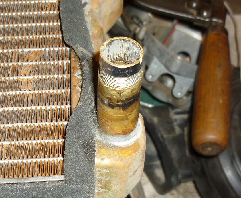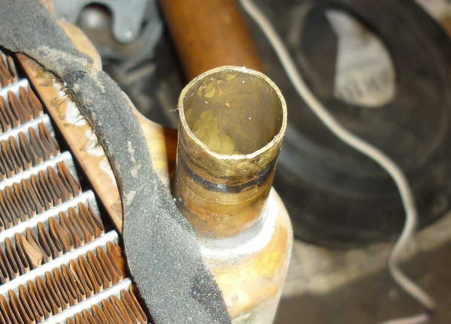 Нынче, вытаскивая радиатор печки, случайно замял один из его штуцеров.