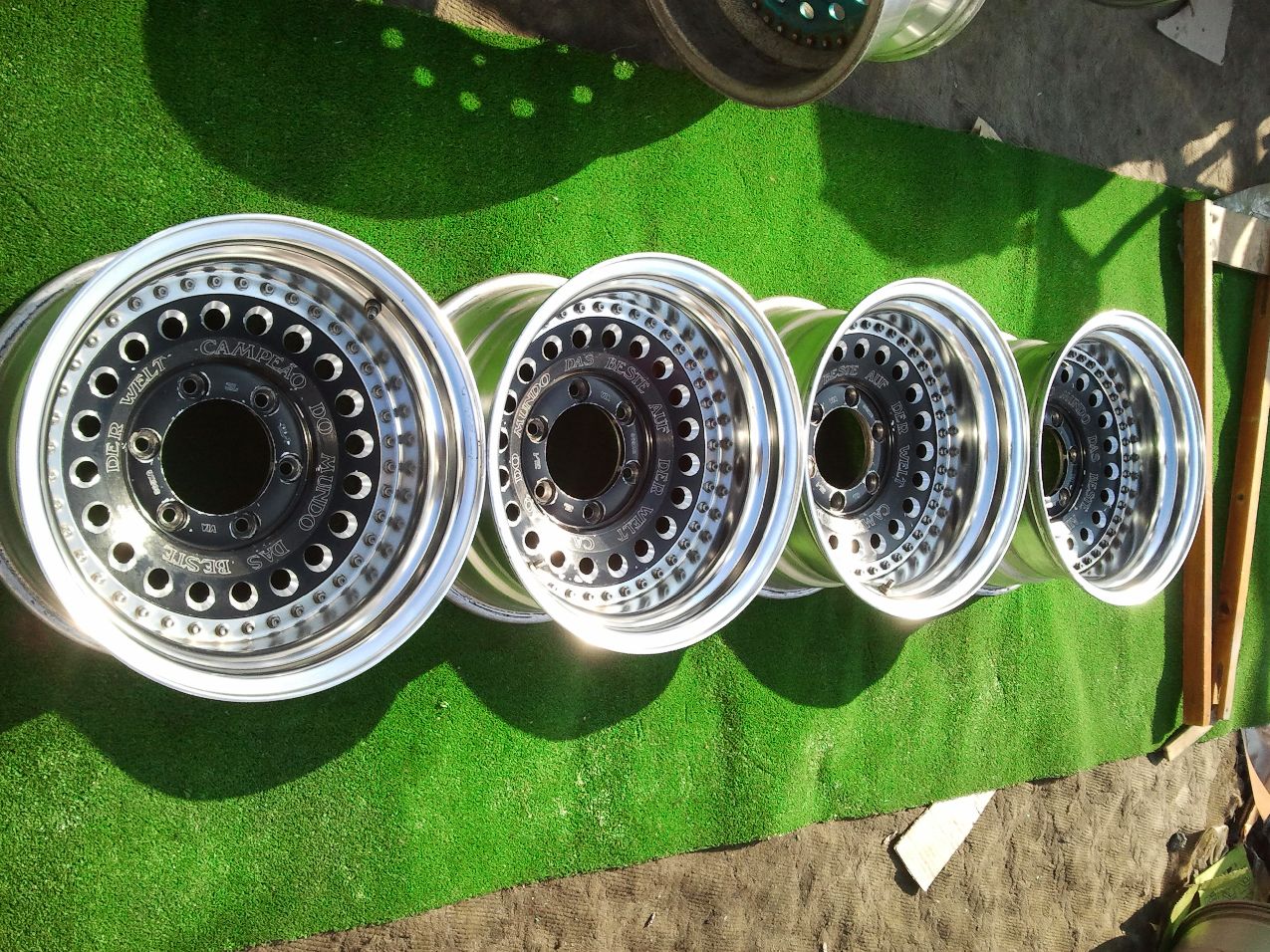 4 диска б/у пятый новый в коробке ещё. На одном диске на кромке есть коцка от камня,на фото видно.