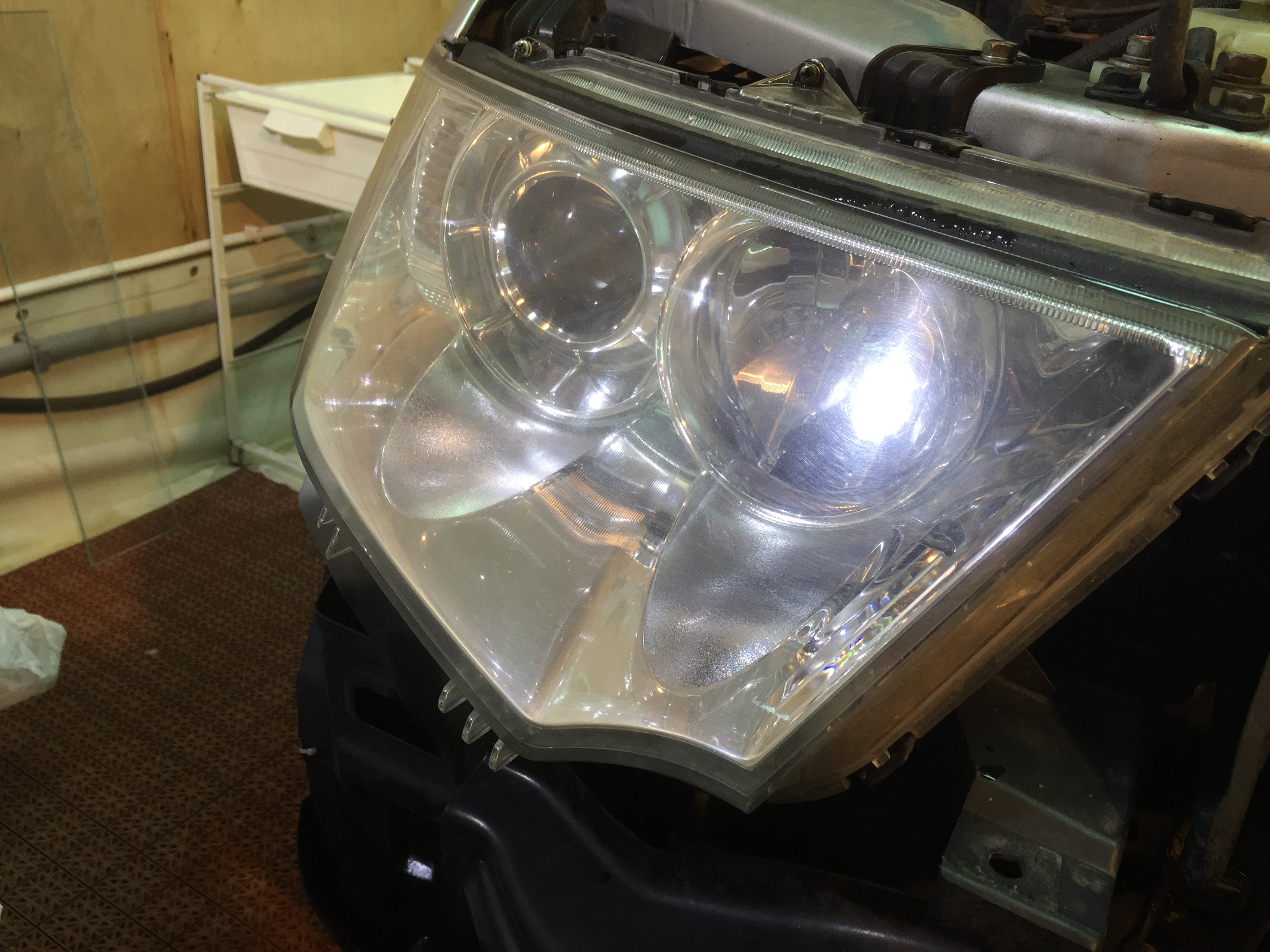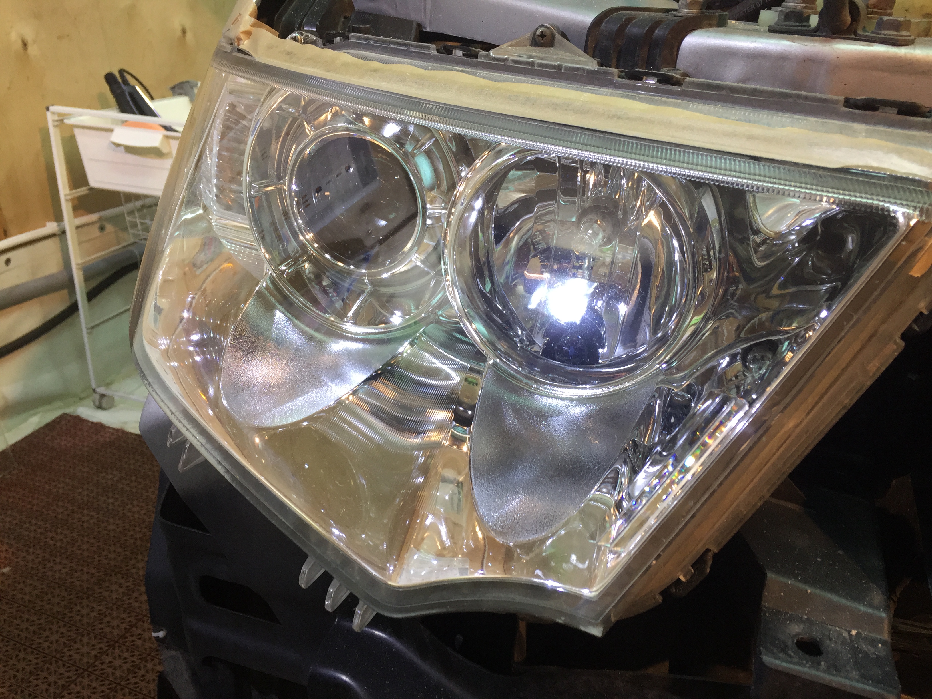 Пока бампер был снят, удобней и безопасней привезти в порядок фары, что и было сделано.