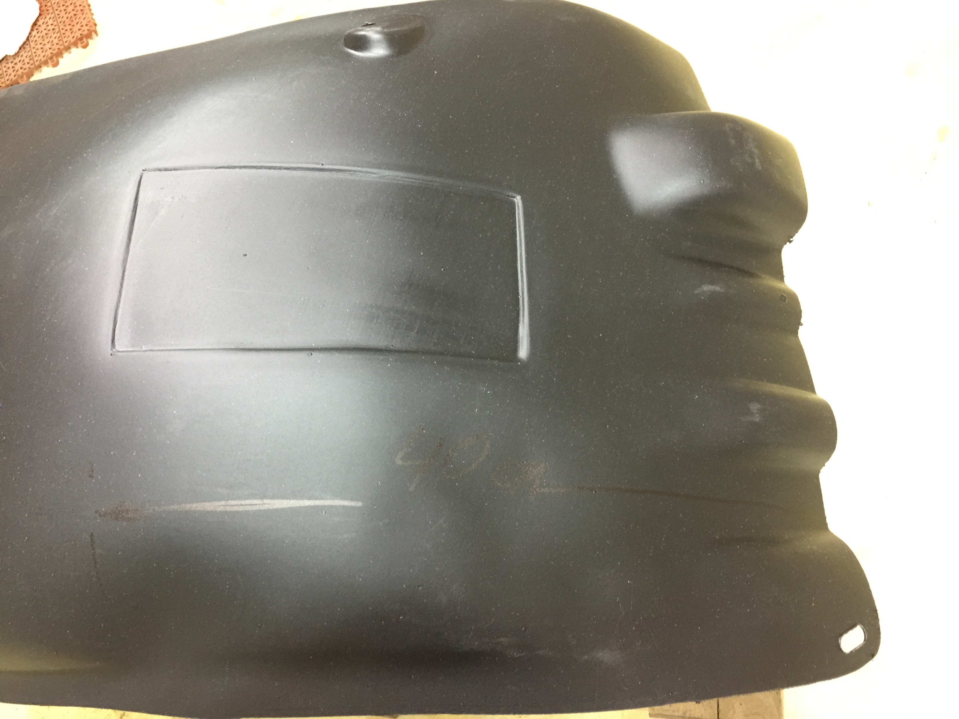Перед готов. Приступаем к задним. С ними по аналогии, как с передним, не клеим зону бампера и боковину. В последствии будет делаться шумоизоляция салона, там полностью заклеим арку. Отступаем 25см, от центра отверстия под крепеж.