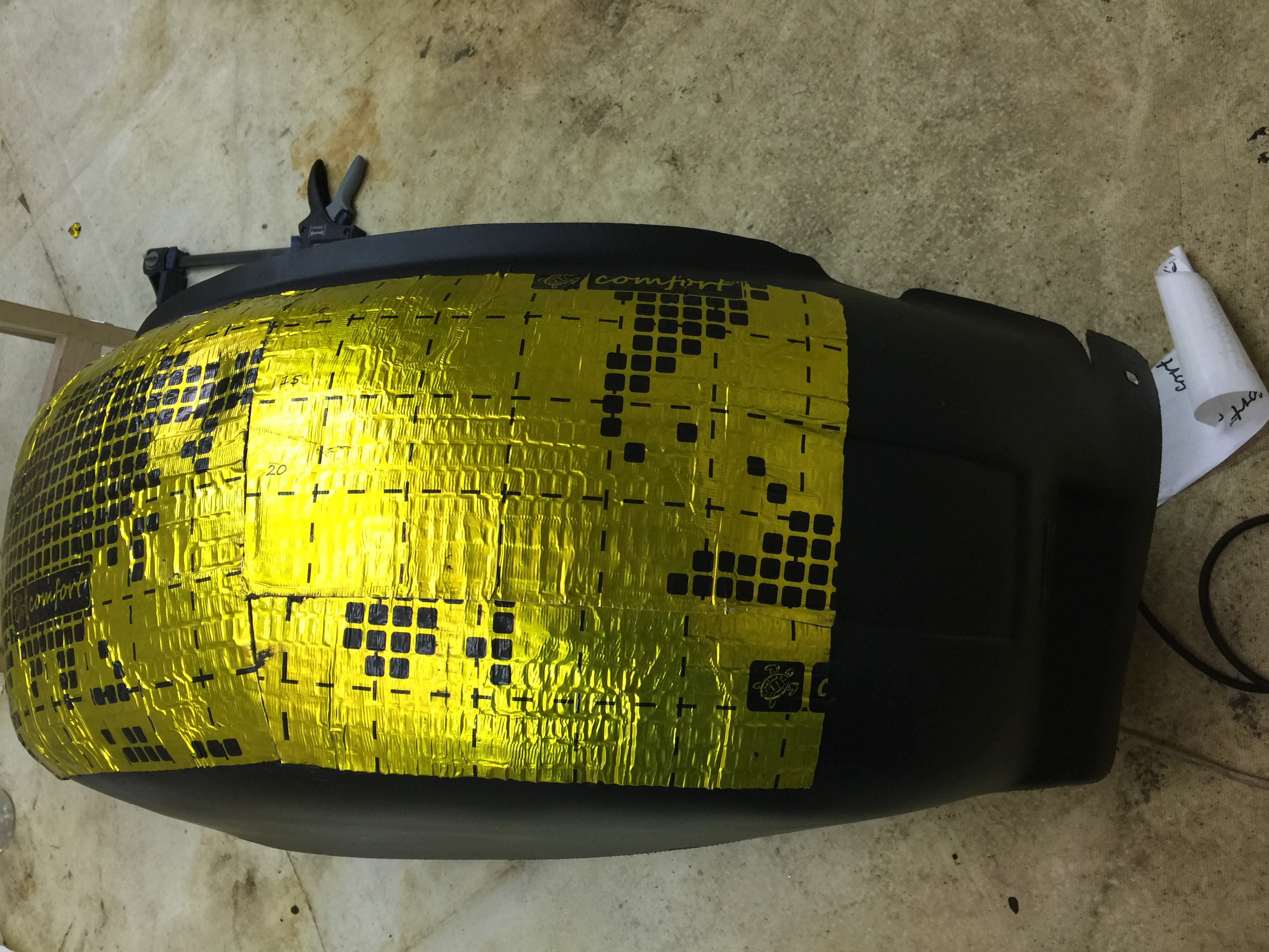 Вот чего, чего, а на шумоизоляции точно сэкономили, и тут не поспоришь. Первый раз, когда поехал по гравийке, аж испугался, как стучали камни по аркам. Об установке локеров задумался прям после покупки, но с одной целью, сделать антикор арок, и защитить их от пескоструя от колес. Стал изучать вопрос локеров, и выбор пал на "Novline". Порой их позиционируют как оригинал, даже номера есть оригинальные. Номера: Rsa-nll3520003, …004,…001, …002. Передняя часть номера одинаковая, а задняя указывает на принадлежность, какие задние, какие передние. Пока изучал этот вопрос, наткнулся на темы по их шумоизоляции. Подумал, что лишним не будет. Пришел на рынок, там отдел торгует материалами, поговорил с продавцом, показался адекватным, разбирающимся в теме. Рассказал, что хочу. И мне было рекомендовано, материал "Comfort Mat". После, высказанных мною опасений по нагрузке на пластик, в качестве виброгасителя материал G2, толщина 2,3мм. Новый, мол иновационный материал, воспроизвел в себе все лучшие качества, при более легком весе. В качестве шумоизоляции, материал FI4 (Универсальный виброшумотеплоизолятор, изготовленный по технологии ButyLam из EPE основы и мастичной композиции S-formula. Материал дополнительно ламинирован тонким слоем алюминиевой фольги, что значительно увеличивает теплоизолирующие свойства и позволяет применять его в зонах с повышенной температурой), Только сейчас задумался. А зачем мне фольга? Ну не знаю, может у них не было без фольги, или с фольгой дороже, и нужно его продавать. Одним словом пообщались, как я уже говорил про опасения по весу, вместе с продавцом было принято решение шумоизоляцию клеить на пластик, т.е. на локер, а виброизоляцию на метал с наружи. Дабы не утежелять локеры.