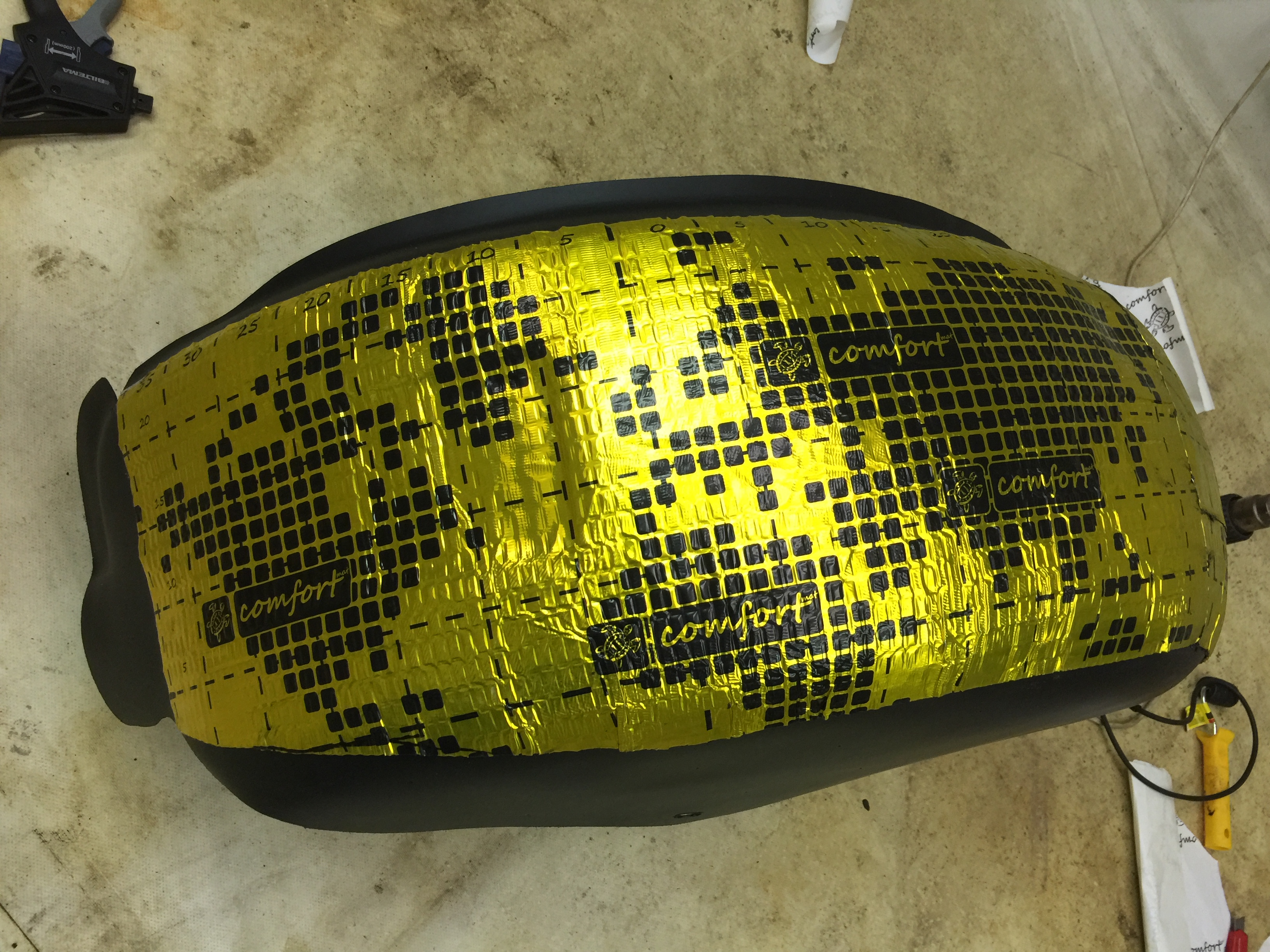 Вторым слоем клеим шумоизоляцию, с перекрытием швов первого слоя. Этот материал более эластичен, но расслабляться не надо, следите чтобы везде приклеился без воздуха.