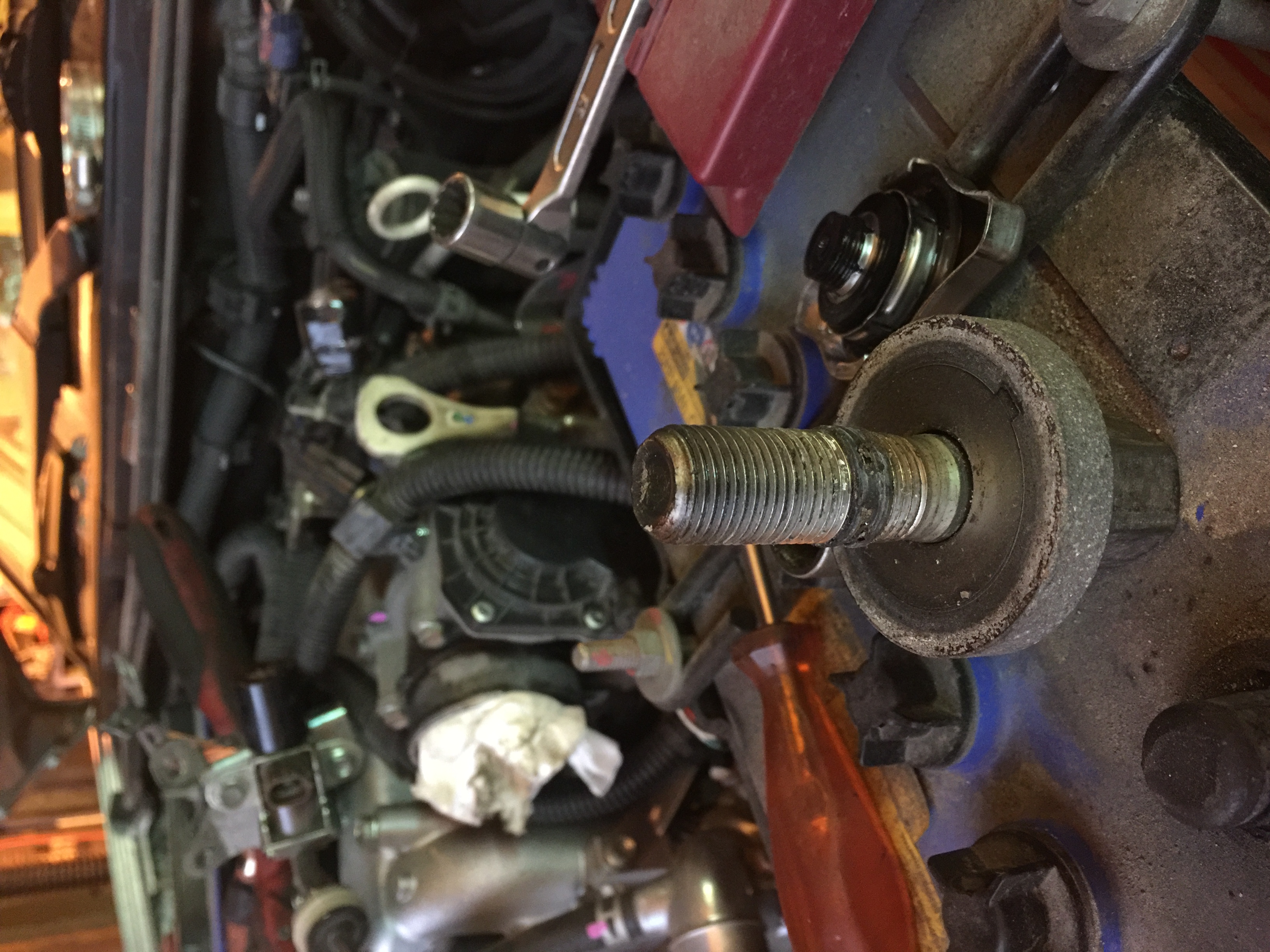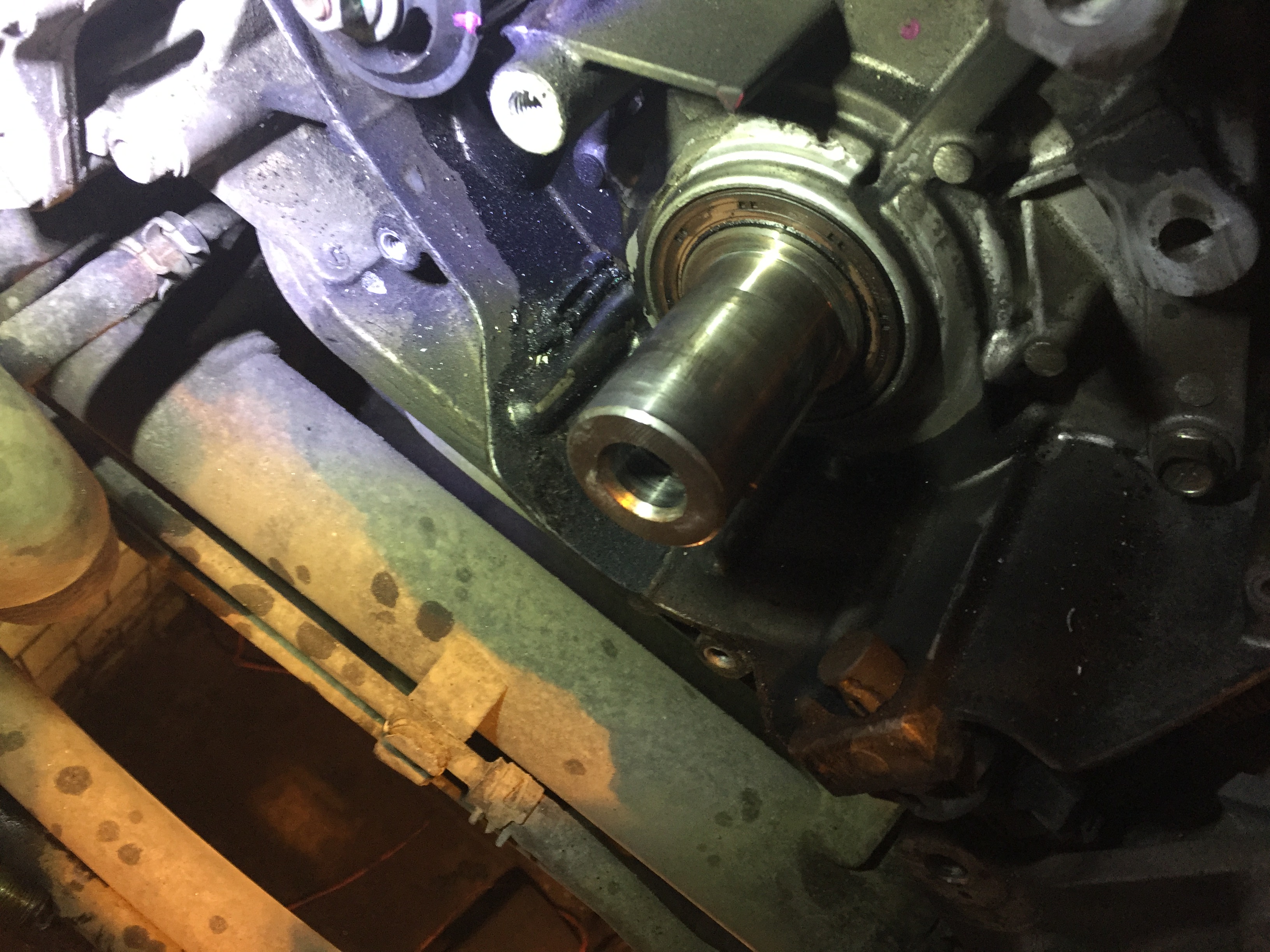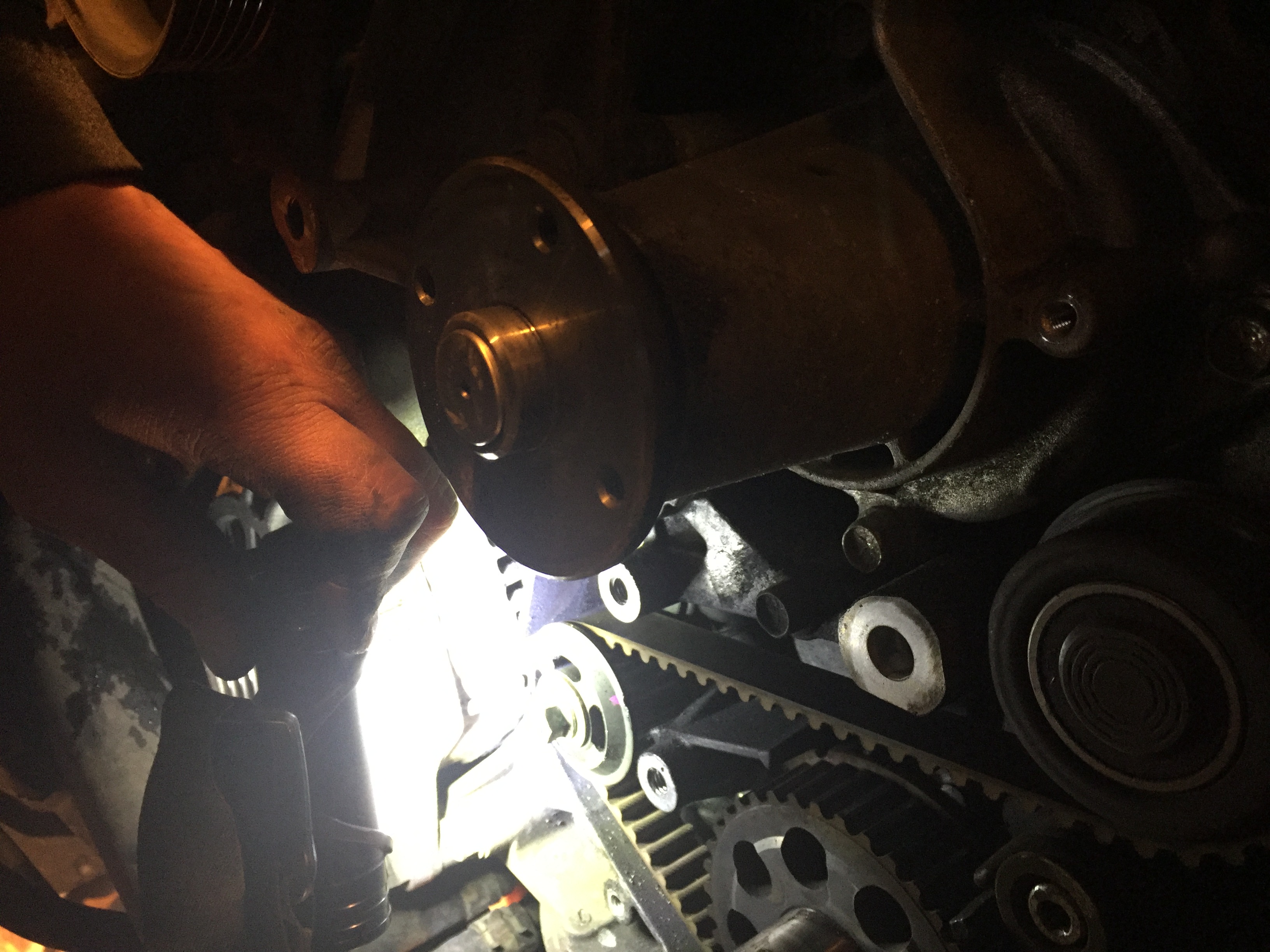 И, вот тут началось. Машинка же куплена у официального дилера, обслуживалась только там, им же перед продажей проверена. Однако одной резинки под радиатором не было. Но разбираем дальше. Откручиваем шкив коленвала.