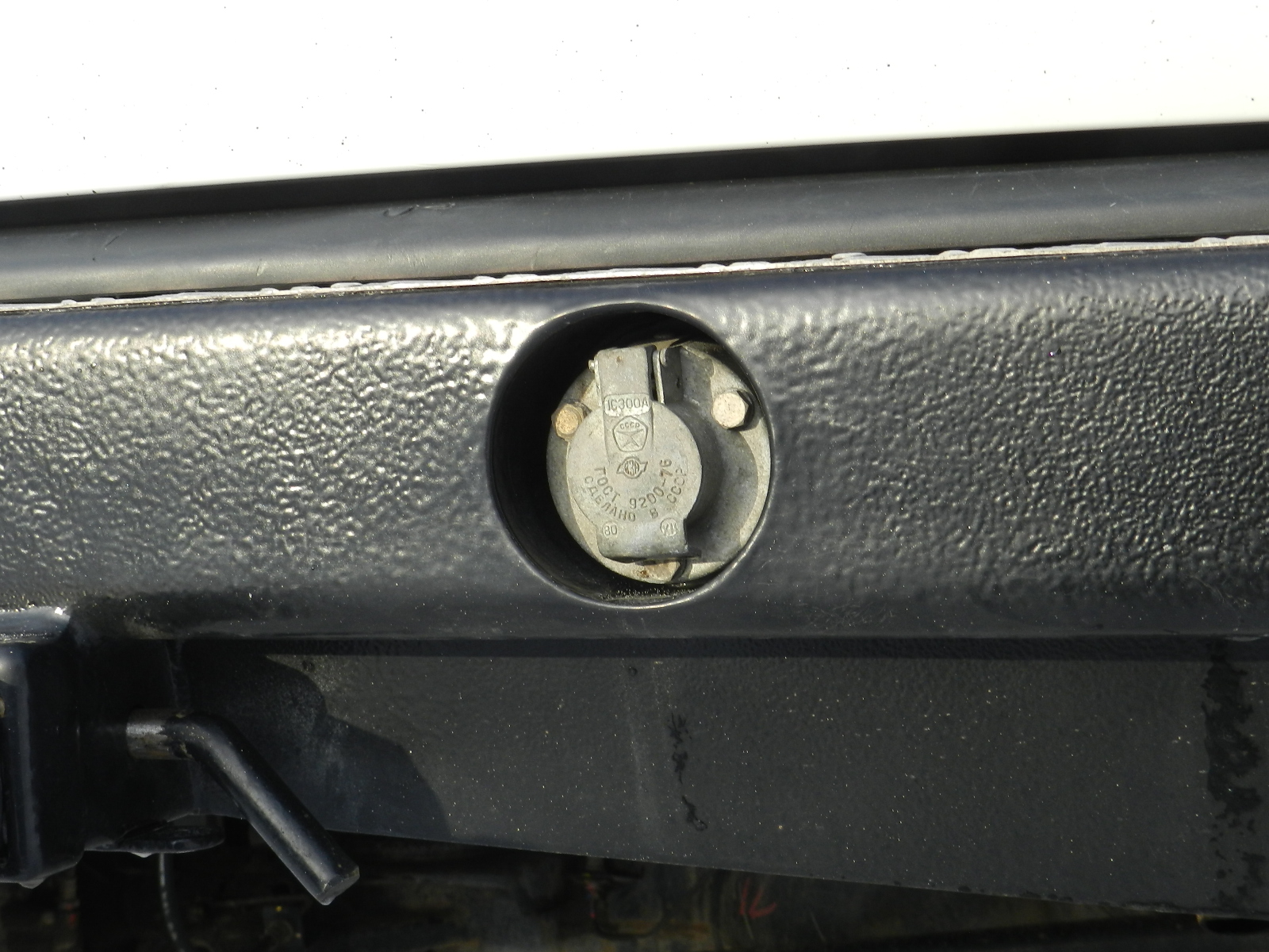 Розетка прицепа. Здесь все просто. Разъем штатный в салоне выше домкрата. Минус на фишке отсутствует. искать его надо где то впереди. Не заморачивался, взял его рядом с разъемом.