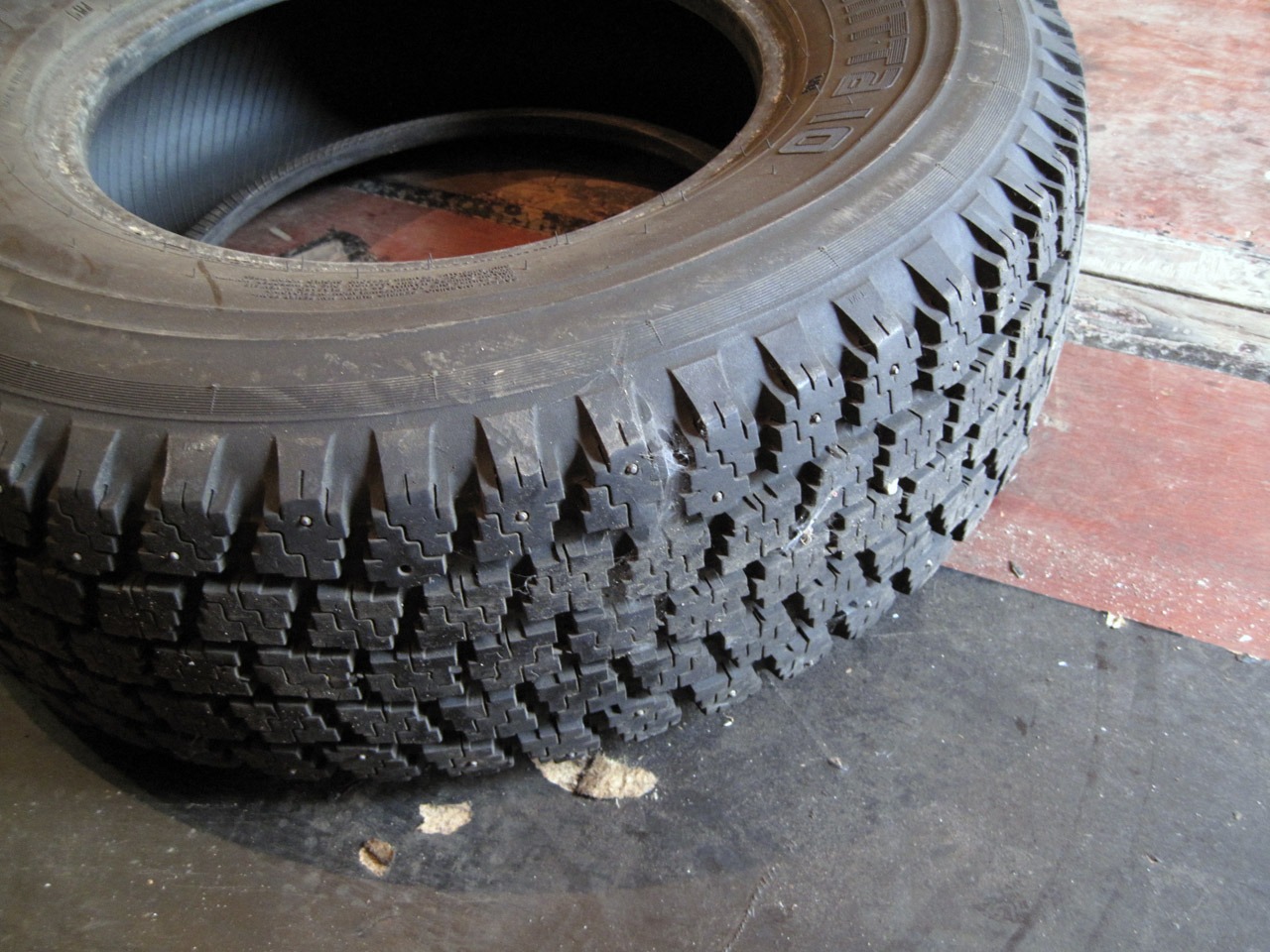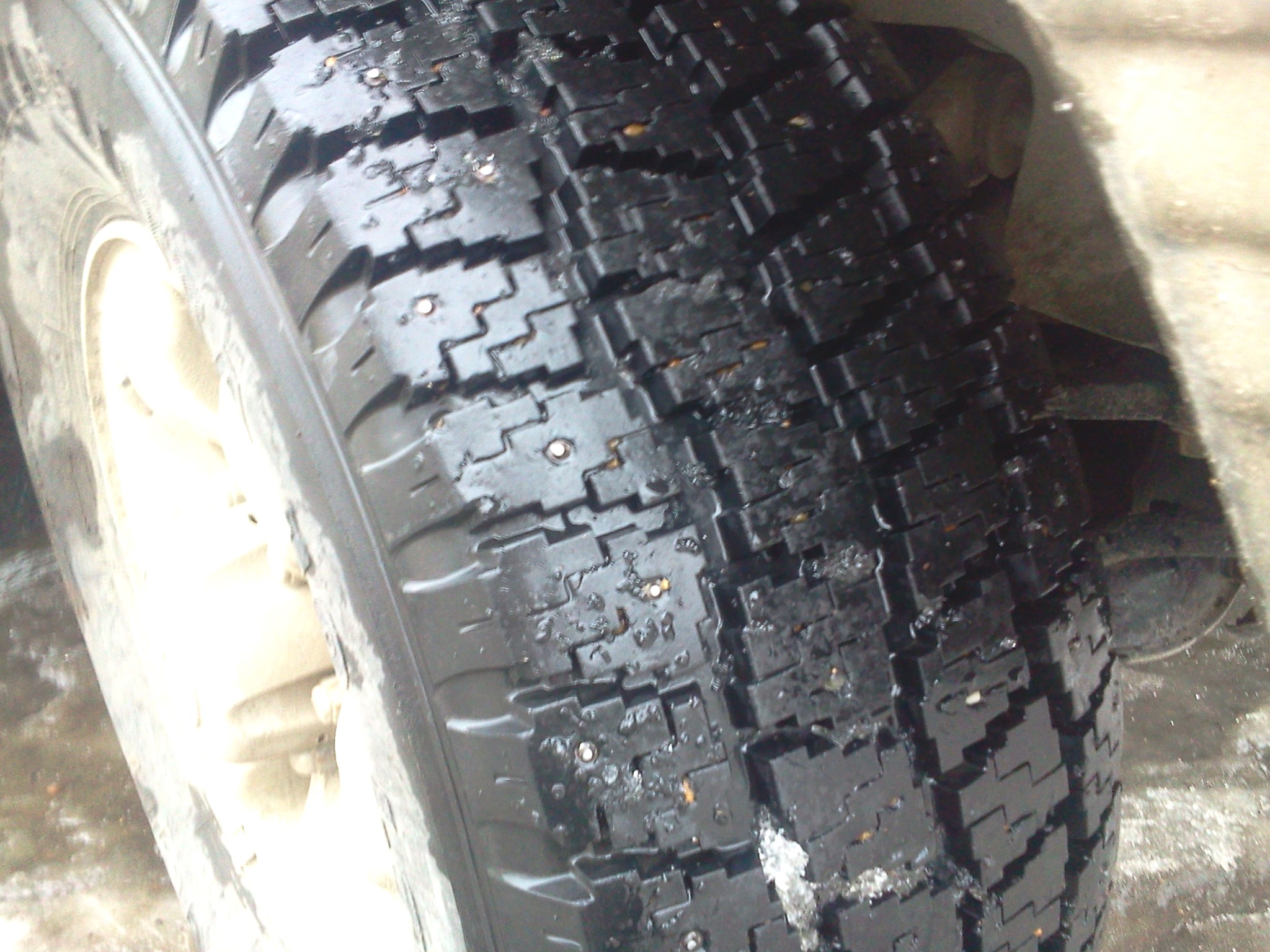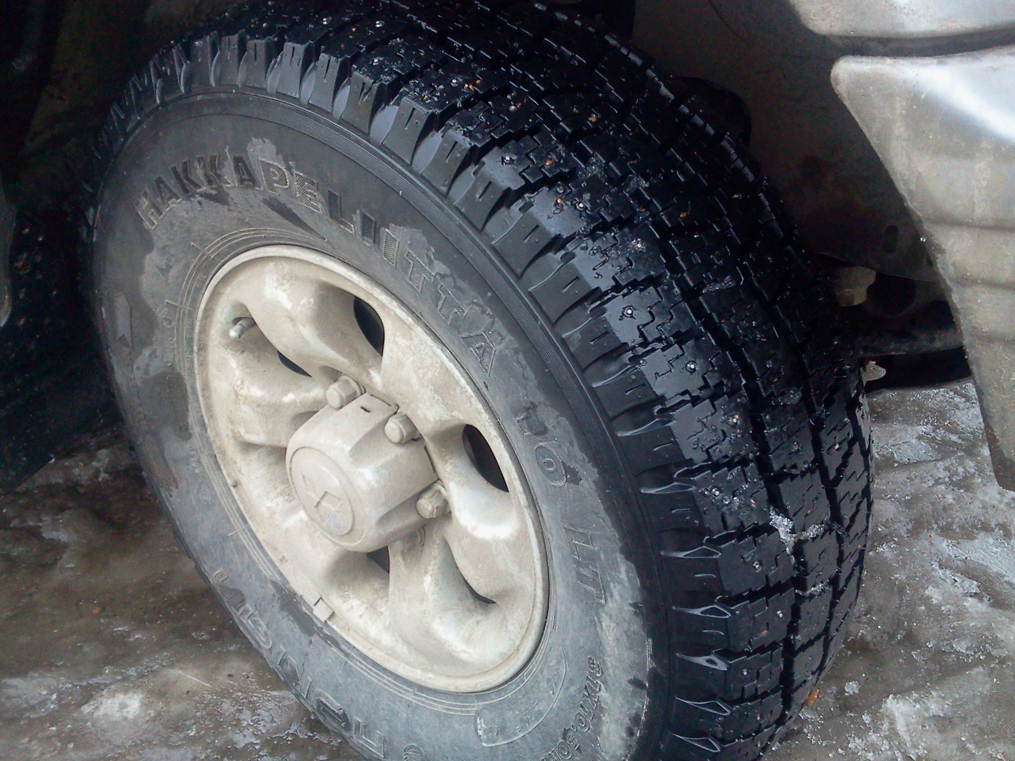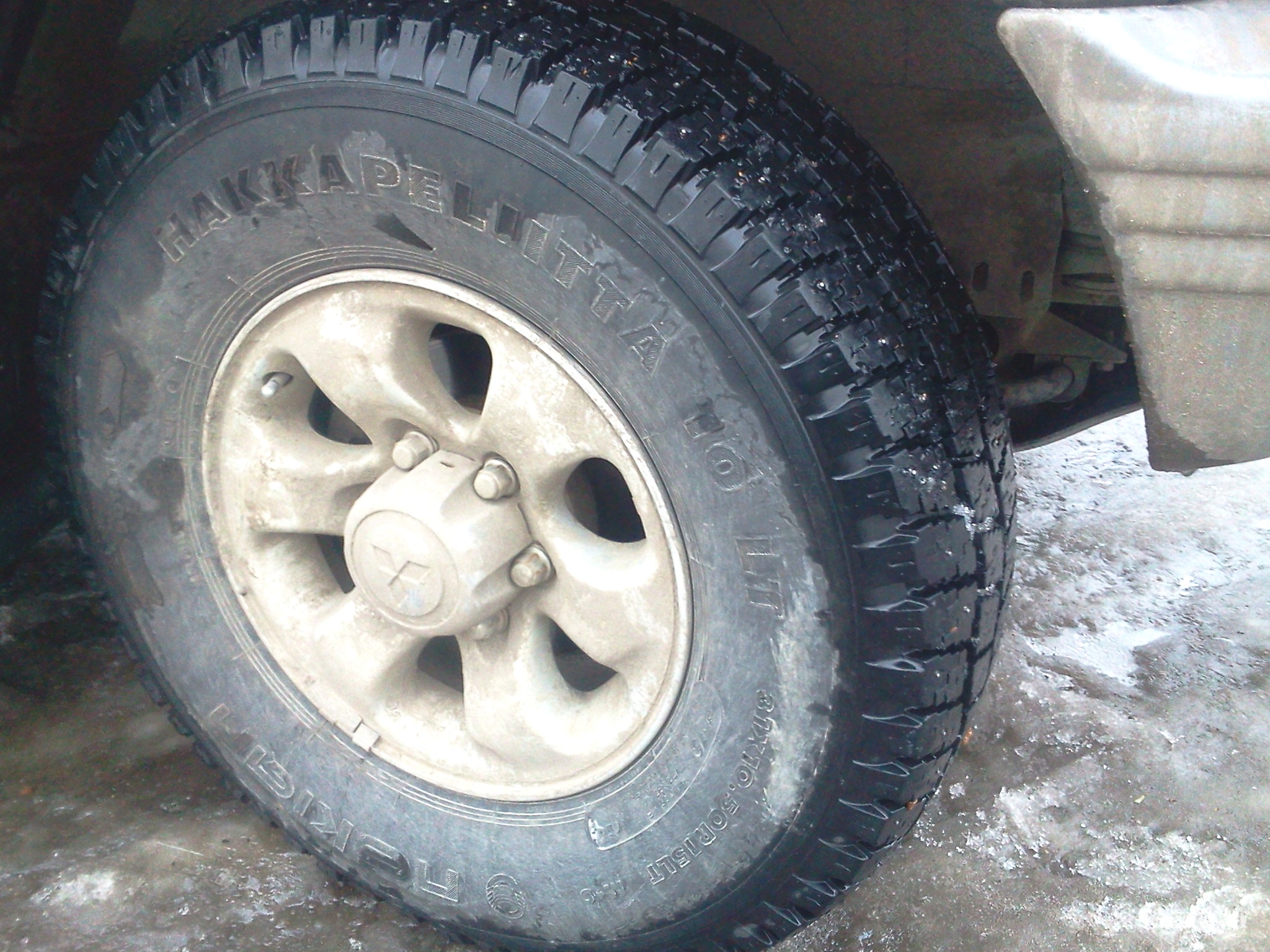Заменил зимнюю резину, поставил все 4 колеса б/у Nokian Hakkapeliitta 10 LT 31 х 10,5 R15, Made in USA (фото не мои, с инета). Практически все шипы на месте, протектор имеет незначительный и равномерный износ.