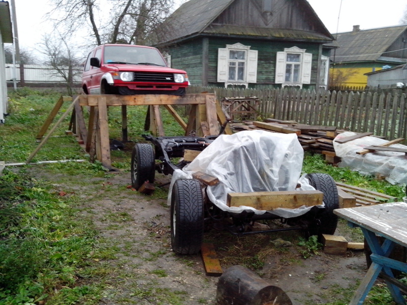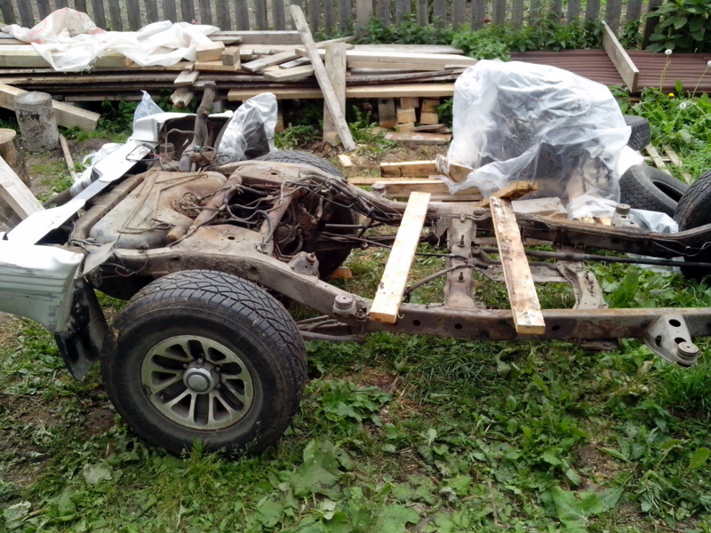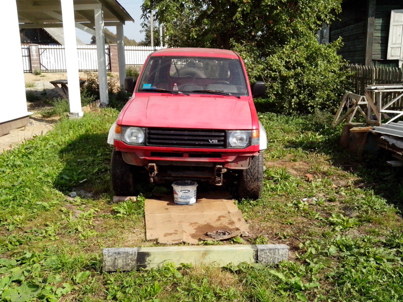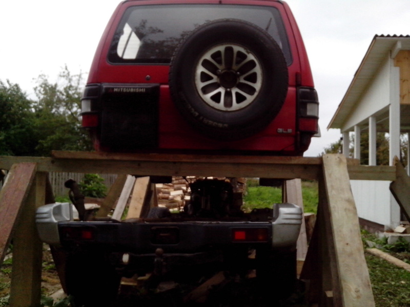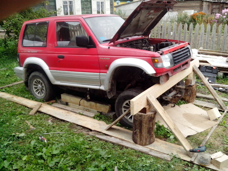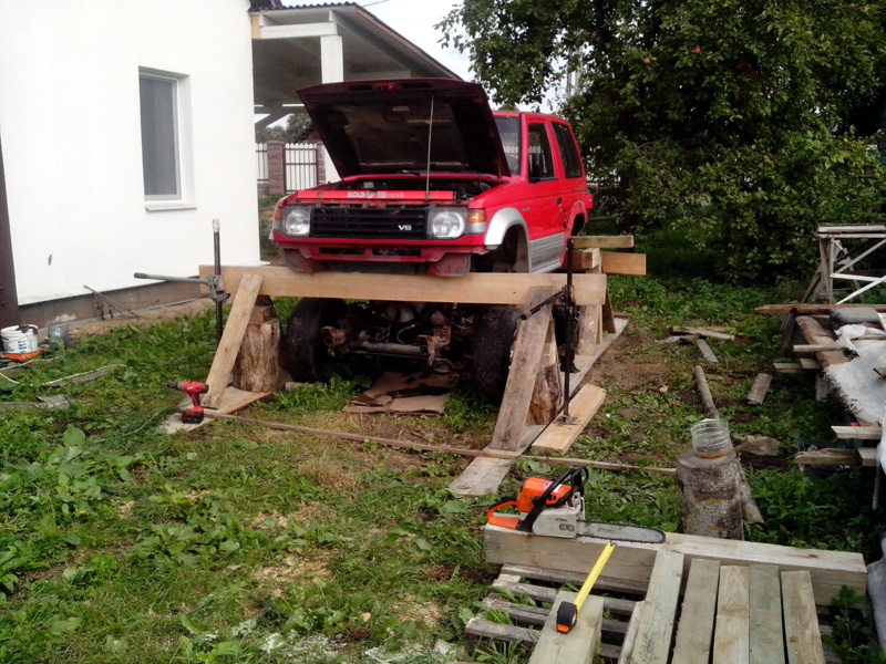 Началось с того, что понадобилась машина с полным приводом, что бы доехать из точки "А" в точку "В", между которыми частично есть дорога. А так как в точке "В" я собираюсь жить - это мой дом, находящийся на этапе постройки, то 4х4 - нужен и чем быстрее, тем лучше. Кто строил дом, тот знает, что денег постоянный дефицит, мало того что пришлось купить микроавтобус для этого дела, который не всегда может заехать, а тут ещё и джип нужен. Поэтому начал поиски не сильно дорогой машинки. Рассматривал все варианты, начиная с Нивы и заканчивая Мерседесом. Вариантов не много в мой бюджет. А тут случайно проходя по офису, вспоминаю, что на фирме есть владелец нескольких внедорожников, один из них паджеро давно уже стоит в гараже без дела. Но это всего лишь слухи. Вот я и решил их развеять: случайно проходил, случайно зашёл, случайно спросил. Оказалось, правда, но стоит он уже около 6 лет (кроме него в конюшне присутствуют ещё 3 машинки), эту готов продать в хорошие руки. Тут и понеслось: осмотр, тест-драйв. Делема: либо покупать машину без рамы и кузова, но на ходу, либо с живой рамой и кузовом, но на слабом ходу. Трудно было определить правда состояние, по этому я просто взял её, что бы доделать и поставить на ход.