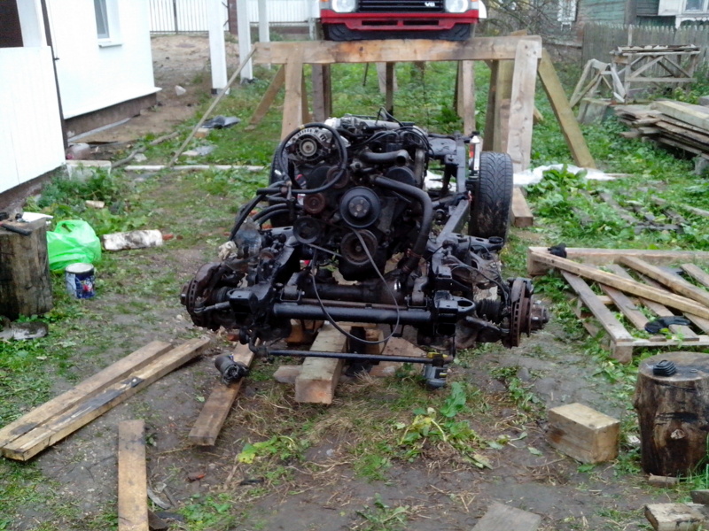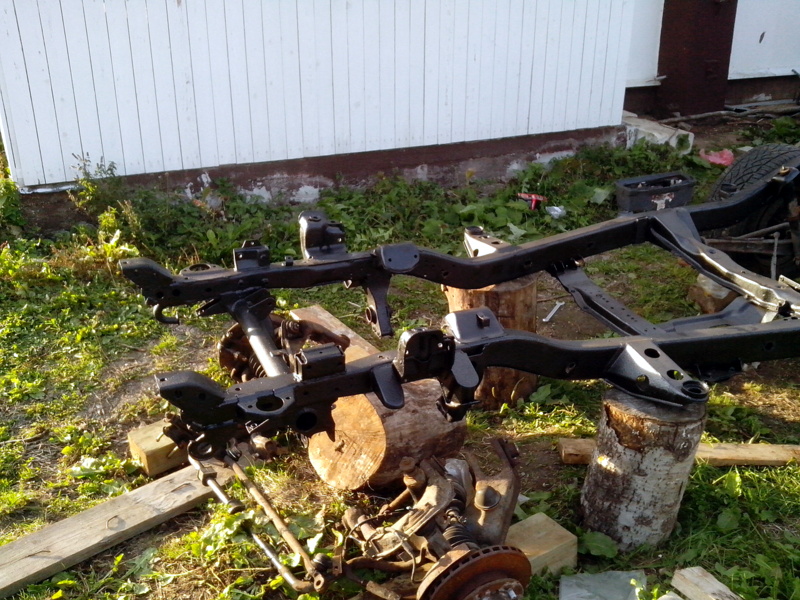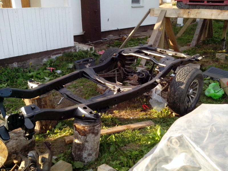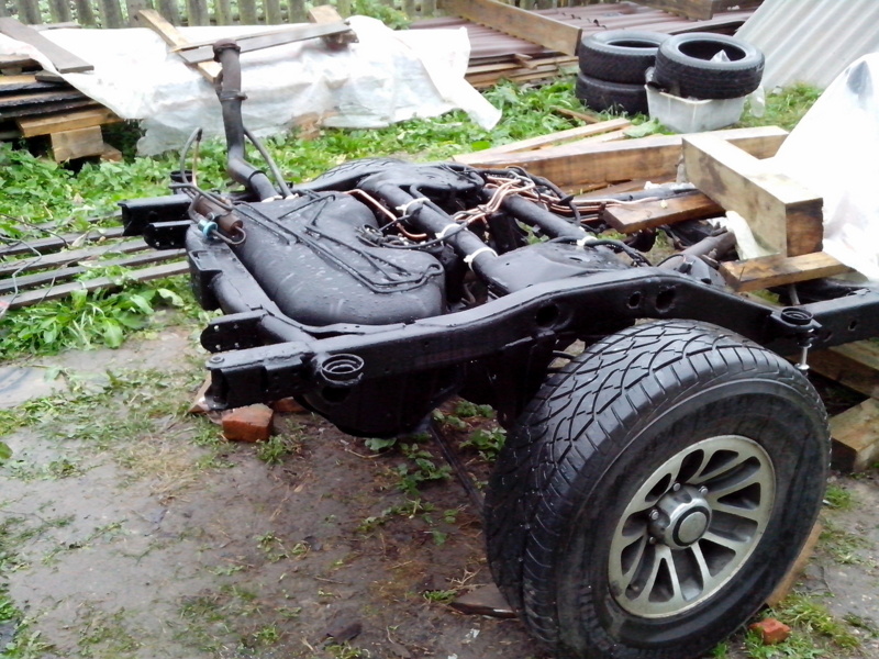 А параллельно думаю, как опустить кузов на раму (завишу от погоды). Но всё решаемо: с помощь двух друзей и помощи всевышнего ставим кузов на место. Фото опускания кузова не успел сделать, все делали очень быстро и чётко (моросил дождик и смеркалось) - времени не было.