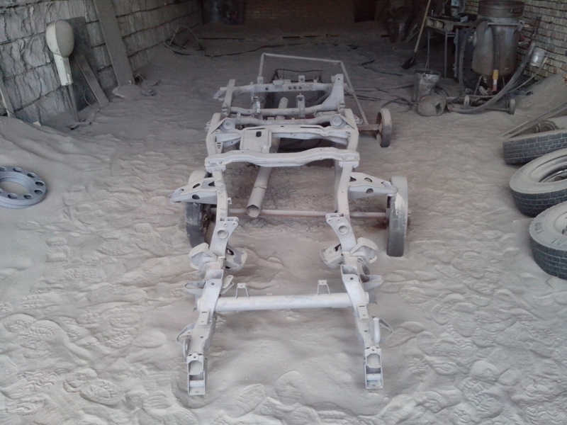 Вперёд на пескоструйку, было отпескоструено, покрыто грунтом, затем покрашено 10 деталей, но показалось мало. По пути к месту сборки покрыл раму ещё "Body" - битумно-каучуковой мастикой.