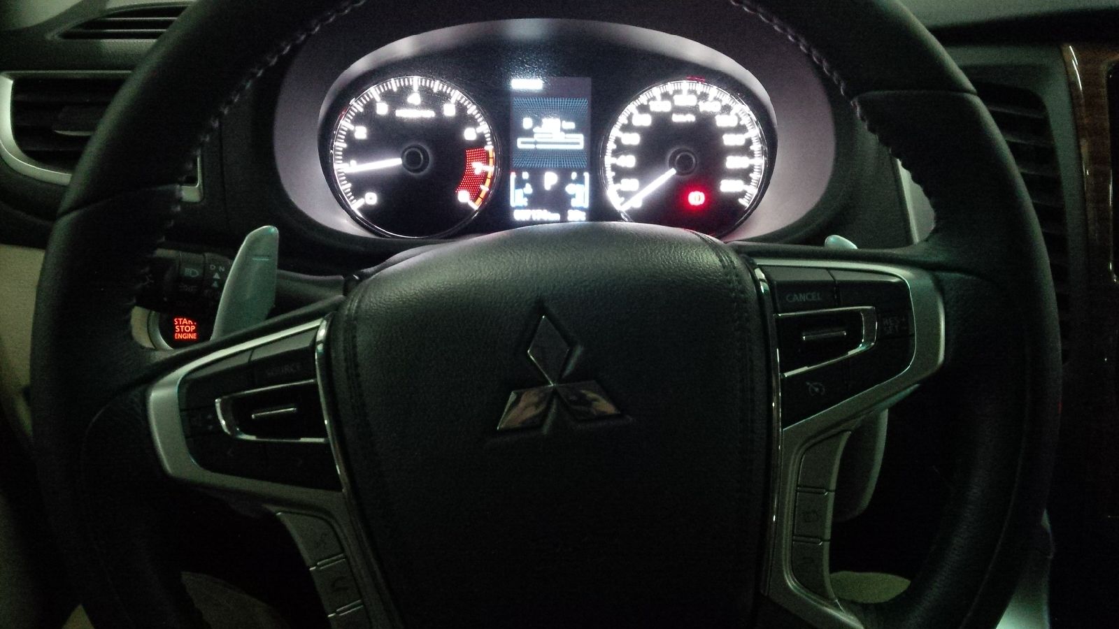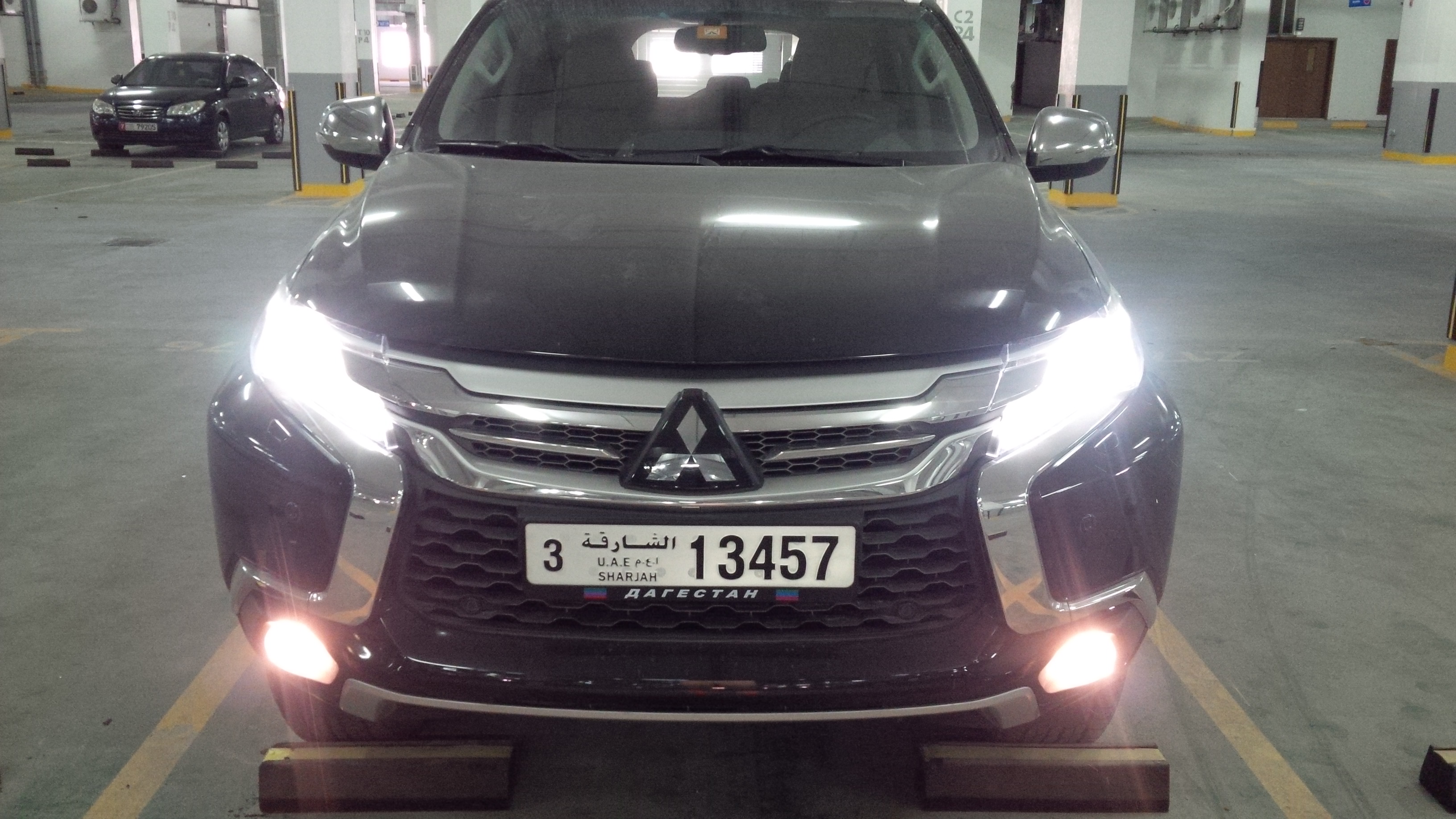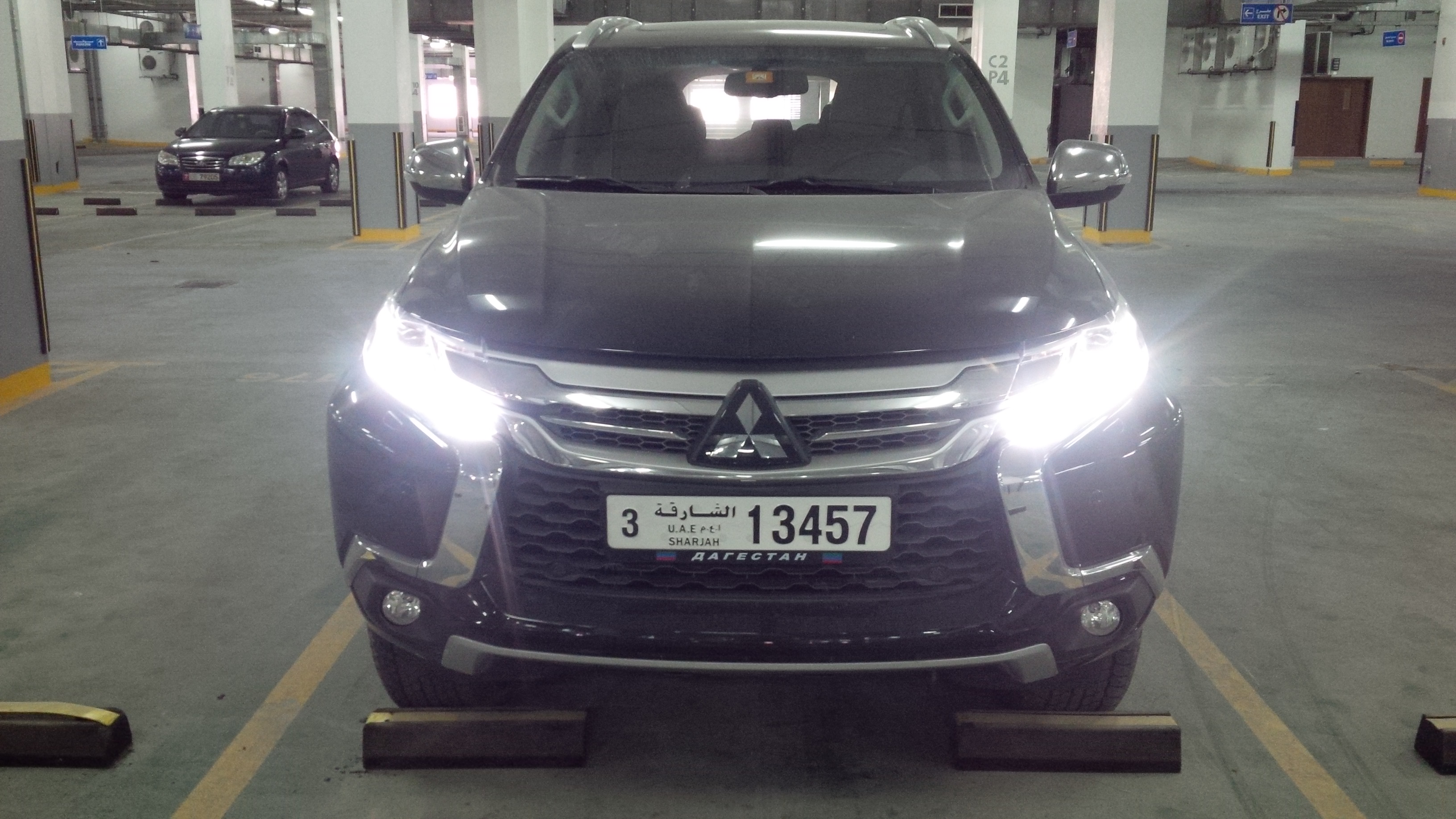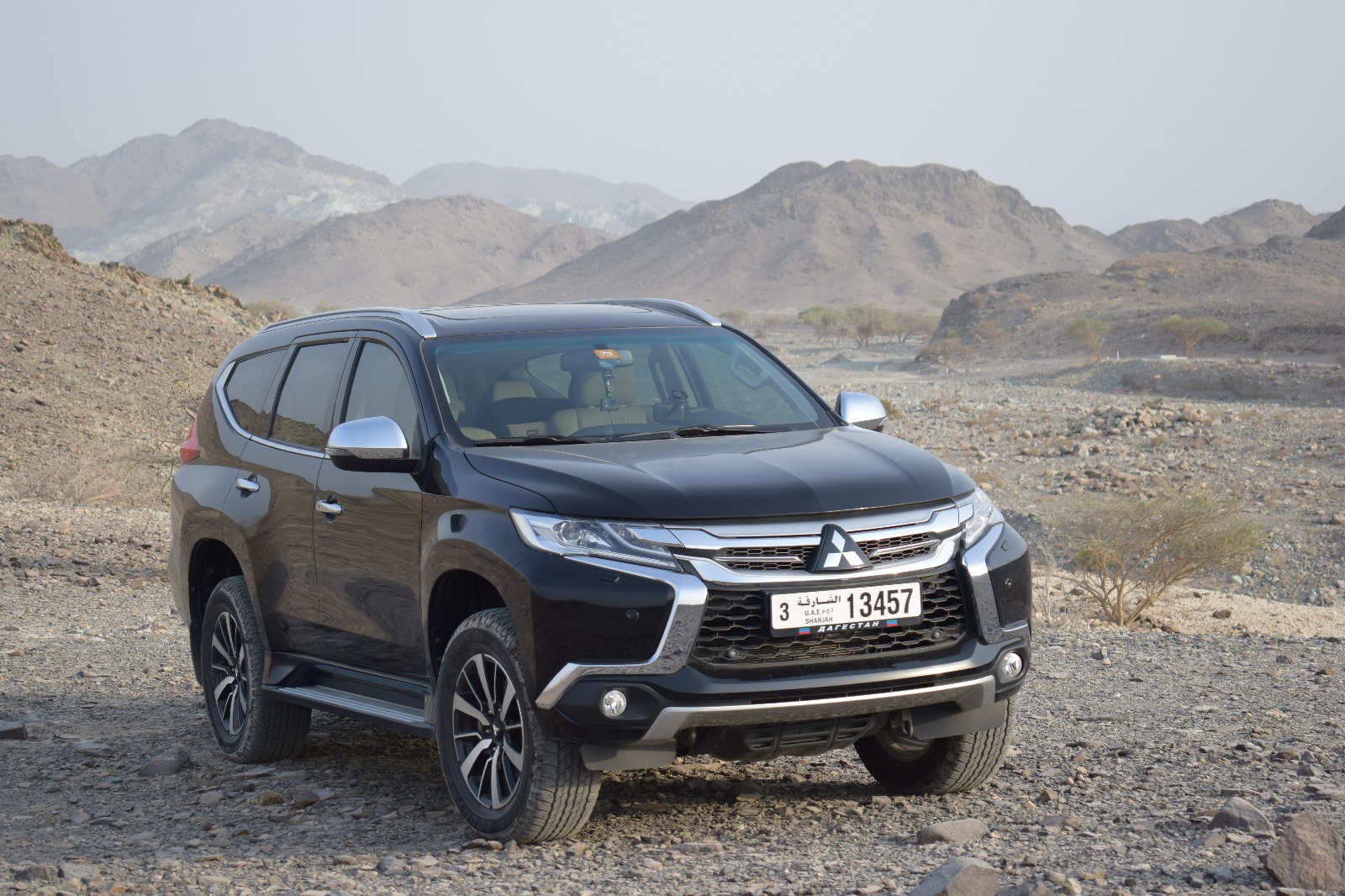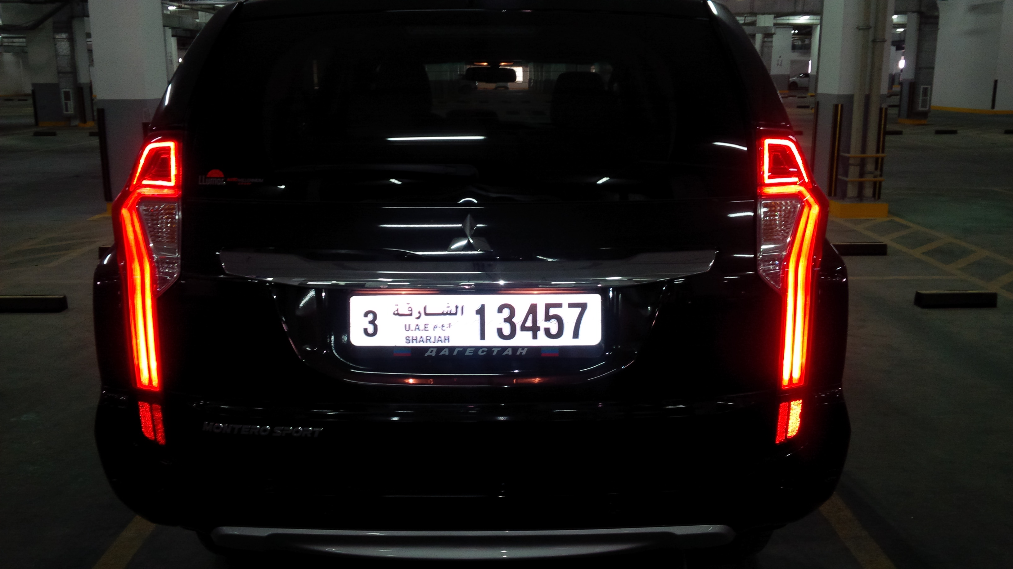 Цель была купить внедорожник с 7 местами, т.к. в седан семья уже не влезала. Смотрел Тахо, Форд Экспедишен, Прадо, Тойота Форченер. Почему остановился на Монтеро Спорт? Решающим стали цена и комплектация, ну и рама тоже. За деньги, за которую продают макс комплектацию я бы смог купить только Форченер в базе. В ОАЭ макс комплектация 107,000 дирхам, что на рубли 1,900,000. По салону нареканий нет. Кожа, второй и третий ряд сидений раскладываются легко и образуют ровный пол, где могут лечь 2 взрослых. Спинки сидений второго и третьего ряда регулируются по наклону. Сидеть удобно везде, у второго ряда свое управление кондиционером, подлокотник и подстаканники + розетка в багажнике (прикуриватель). В багажнике в полу много разных отсеков для мелких вещей, там разместились фонари, всякие бутылки, инструмент и т.п. Есть крепления для вещей, чтобы не болтались по салону. Панель из твердого пластика, но он качественный, не как в Дискавери (кто имел, тот поймет)
