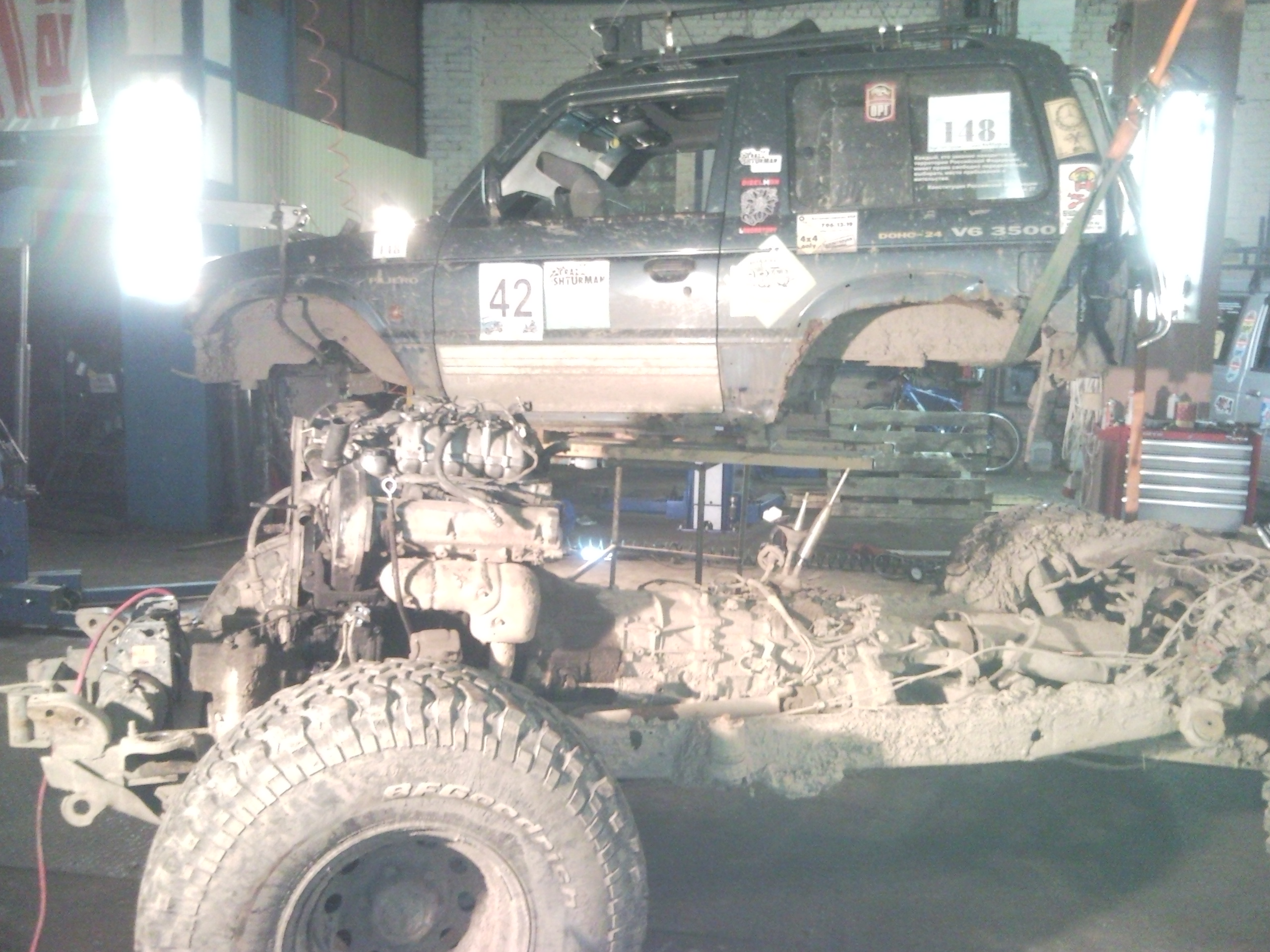 П2:1995 г.,LT285*75*16, 6G72 12V, МКПП, Принудительная блокировка сзади, 4 см, силовые бампера, CоmeUР9500, 3 дв, Араб, счасливый обладатель АСЛ 1985 года выпуска заточена как бритва! Вопрос: Джип должен быть вровень с грязью или выпирать??!!