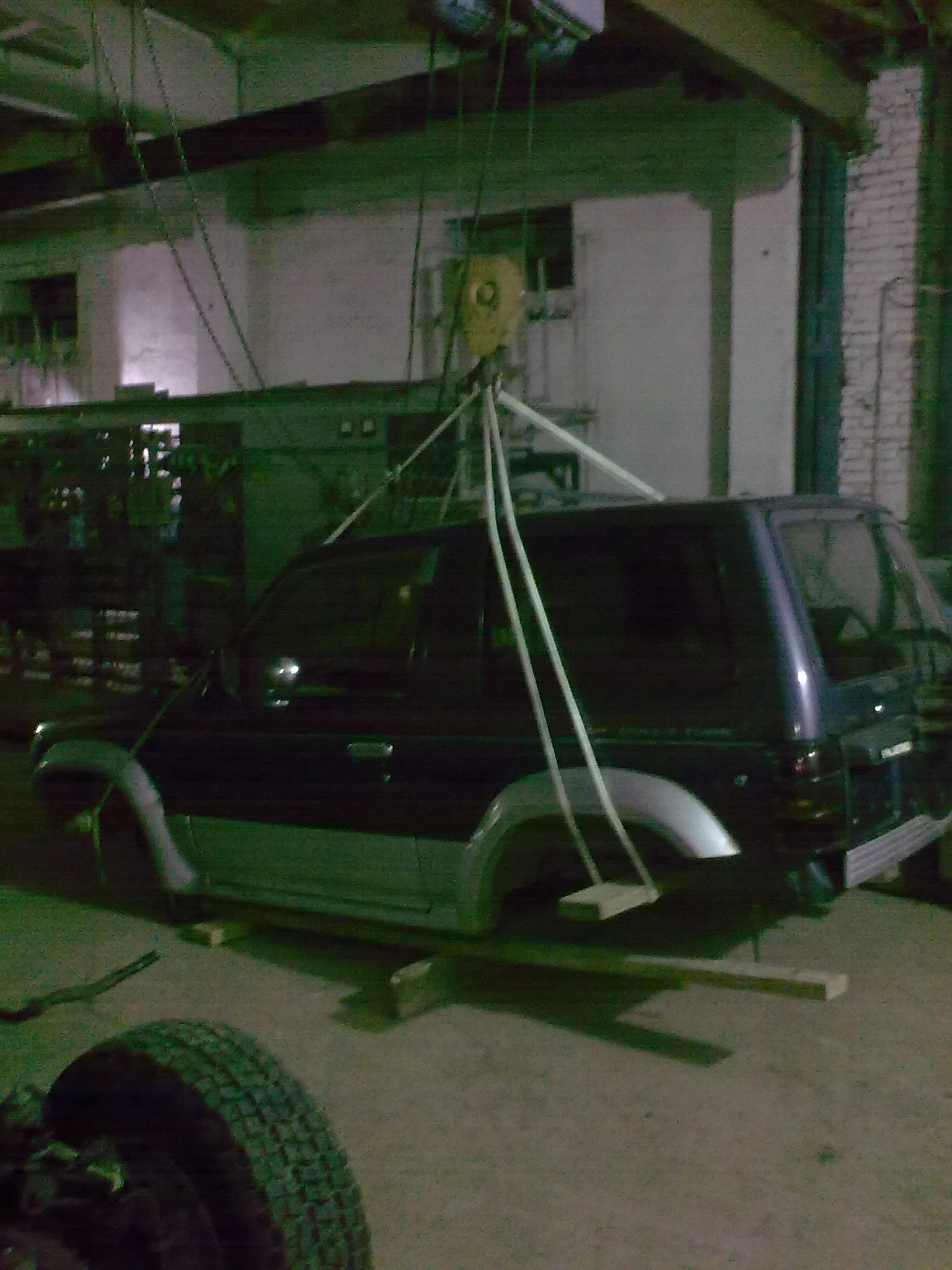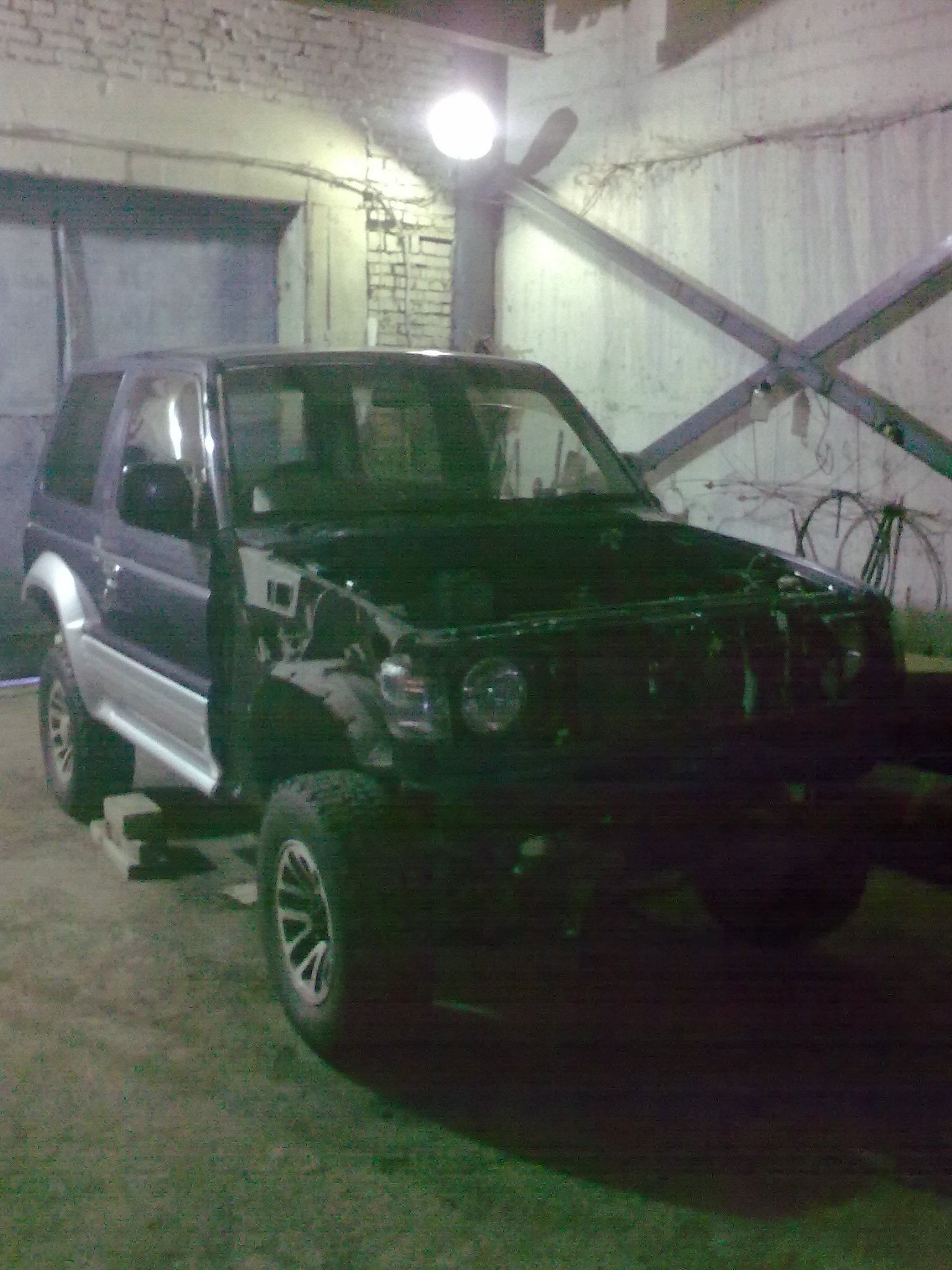 Доехали...Вот он,стоит в маленьком тесном гаражике,рядом с висящими тушами хрюшек-хозян оказался по роду деятельности мясником и бырыжил мясом на рынке.Но на тот момент меня это не смутило и увидев Паджерика,в родной краске,не битого и не мятого,после мойки...эмоции переполняли меня а разум вообще отключился