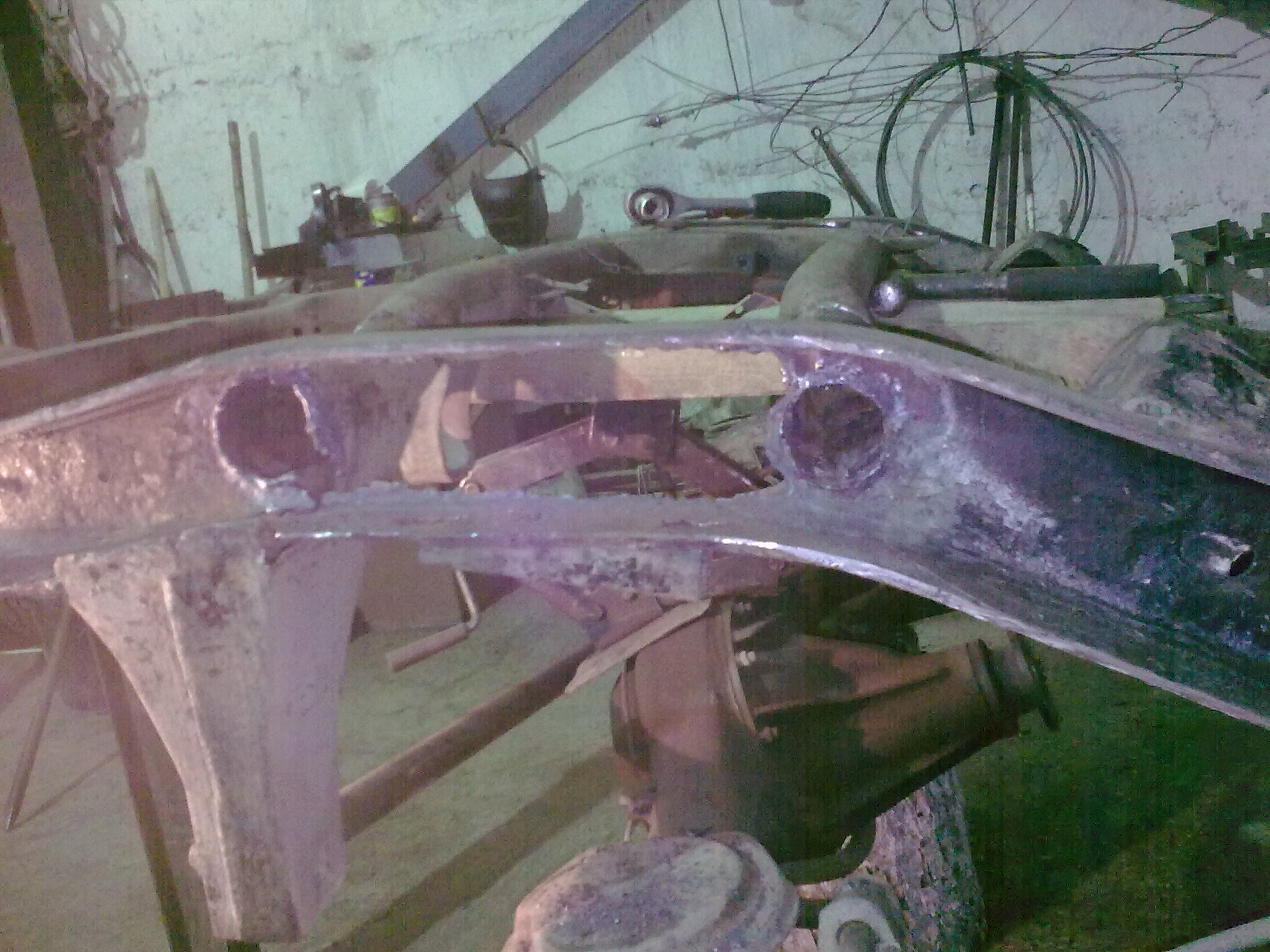 За два часа один с одним домкратом я поднял кузов на 70мм по кругу.Только сейчас,залазия под заднюю арку колеса я увидел в каком состоянии задняя часть рамы