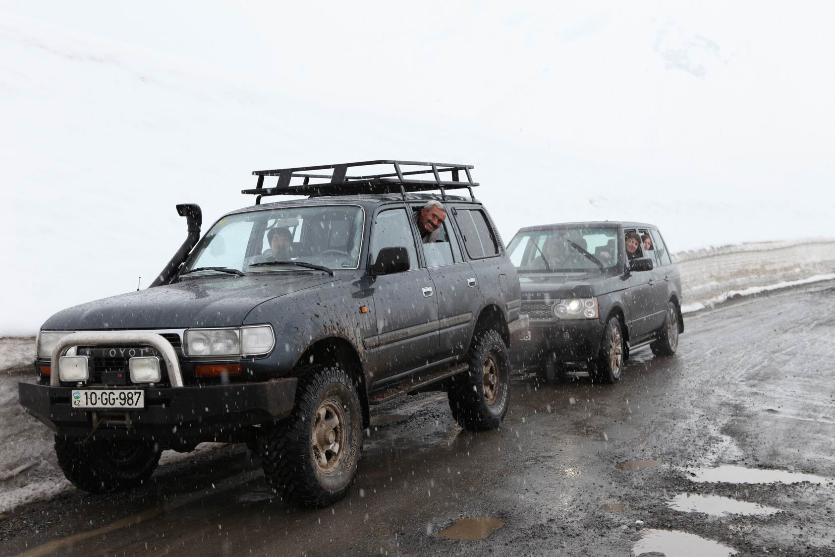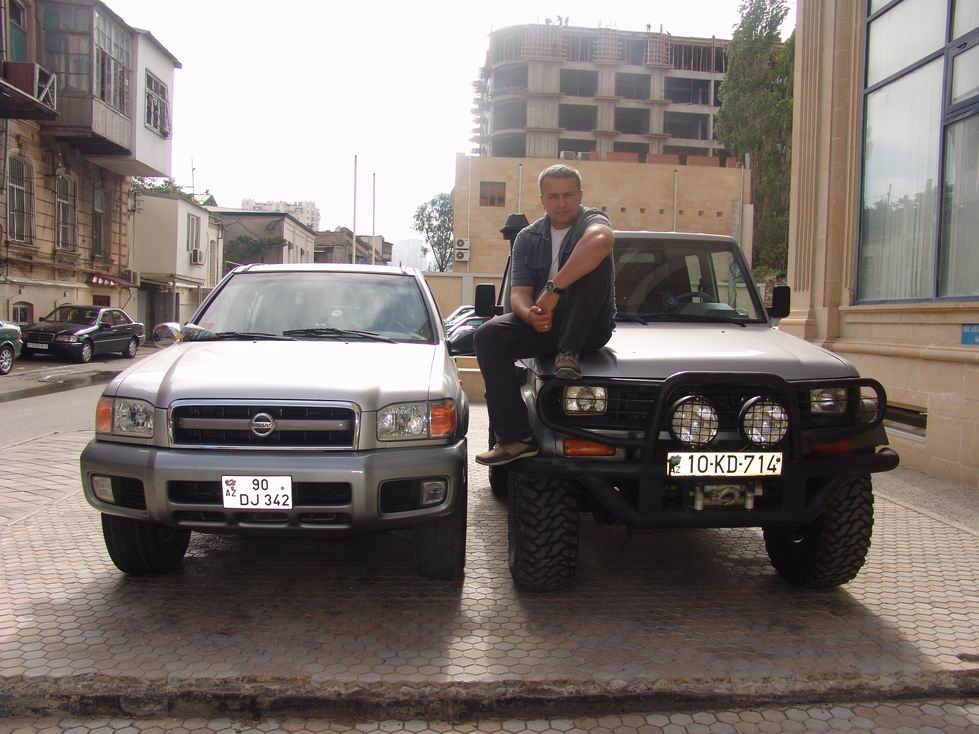 1. Нива - мой первый внедорожник. Резина Кама Флейм, карбюратор, установлен газовый баллон, дополнительный свет. 2. Нива. Резина Кама Флейм, инжектор, установлен газовый баллон. 3. Chevrolett Niva. Машина сток, ничего не ставил - ездил и радовался салону и мучался с воем карданов. 4. Mitsubishi Pajero II (до рейсталлинга) R\D Lock, шины Lassa 4x4 Competus 29" 5. Mitsubishi Pajero IO (до рейсталлинга). МОй первый автомат. Машину покупал сам на аукционе в Японии, дальше с помощью компании Maersk машинка доплыла до Поти, дальше своим ходом до Тбилиси, где и был перекинут руль в течении 3 днех. Дальше своим же ходом доехала до Баку, где была расстамажена и используется по сей день (правда уже не мною). Крепкая, надежная машина с дорогими запчастями. Проблем с перекидкой не возникло. Единственный на мой взгяд его минус — это слабый мотор. После покупки были поставлены колеса большего диаметра Bridgestone Dueller A/T, заменена штатная магнитола, установлены крепления для велосипеда и ветровики. 6. Nissan Pathfinder R50 3.5LE. Шины Yokohama Geolandar HT-S 275/70R16. Пожалуй самая резвый и комфортный внедорожник из всех, что у меня было. 245 лошадей под такой вес — это больше чем надо. На этой машине я проехал за раз не останавливаясь больше 800 км (Баку-Бакуриани) и великолепно себя чувствовал — никакой усталости. После покупки немного довел ее до ума, дабы можно было и на дальние расстояния ездить, и в городе покататься ну и на покатушках лицом в грязь не ударять. 7. Toyota Land Cruiser 72, 2.8 Diesel. Мой первый серьезный внедорожник. Радовался как ребенок тому, что эту машину как минимум "не жалко". Мне досталась версия без блокировок и со слабым движком в 2.8 л без турбины в 86 лошадок, механиха и без кондиционера. Был сделан бодилифт, установлены силовые бампера и подножки из труб, установлена лебедка (китай 10.000 flb). Машину обули в 35-ые катки от Cooper-a. 8. Toyota Land Cruiser 80 1HDT 4.2 Turbo Diesel. ЛУЧШАЯ МАШИНА!!