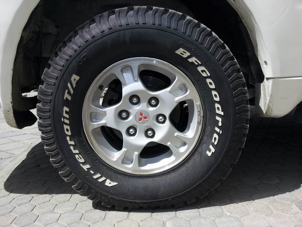 — установил купленные с рук б/у колеса BF Goodrich TA KM2 33" с родными от Nissan Patrol дисками.