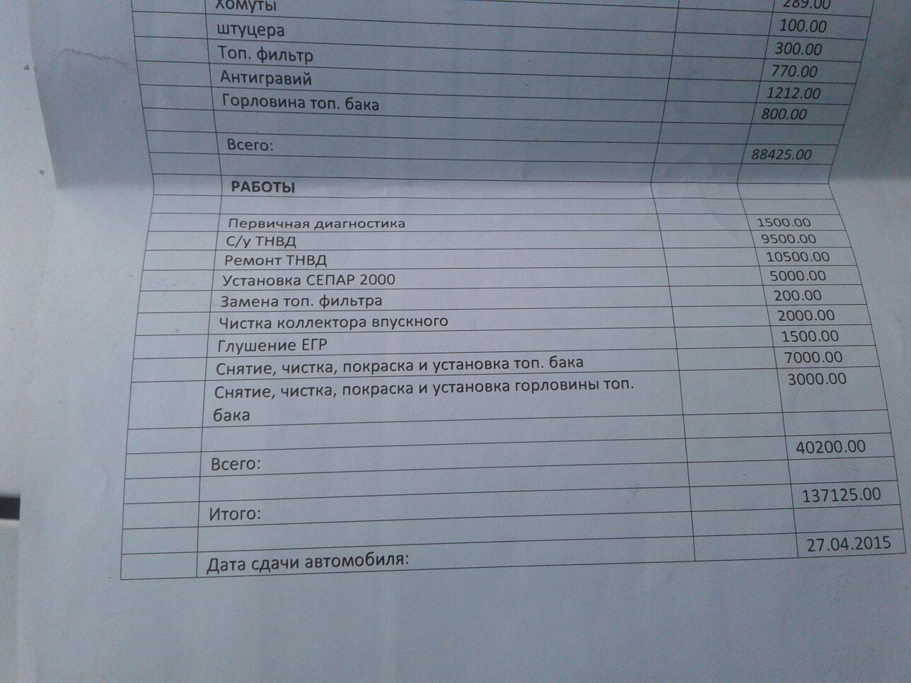 Топливная система: Год назад ремонтировал ТНВД у дизельмана. Ремонт с заменой плунжерной пары на восстановленную чугуевскую. Замена горловины бака, обработка бака от ржавчины, установка дополнительного топливного фильтра SEPAR 2000/5. Заводится идеально, на холодную и горячую. Обороты не плавают, не глохнет.