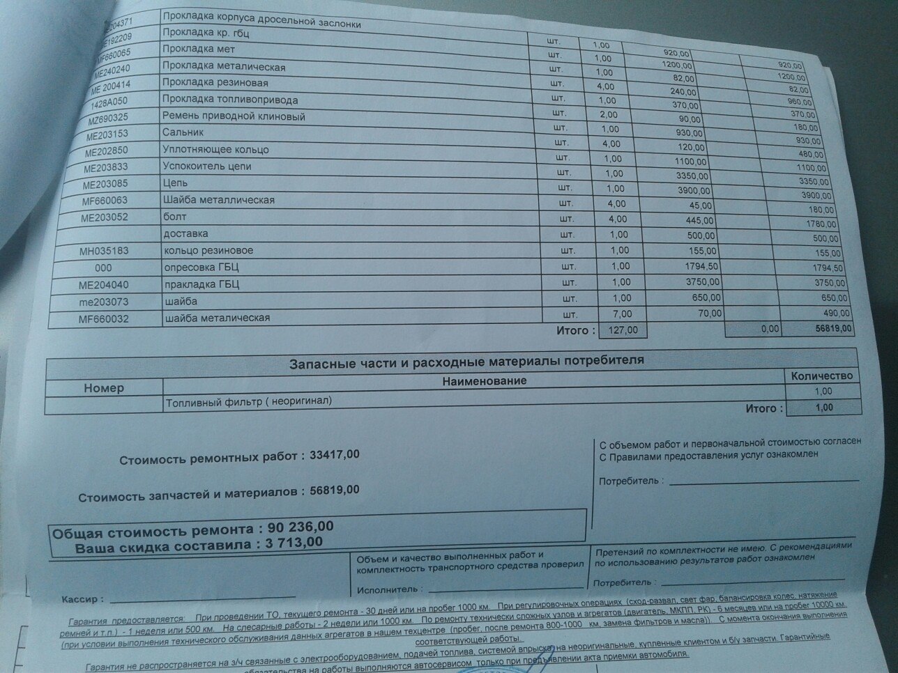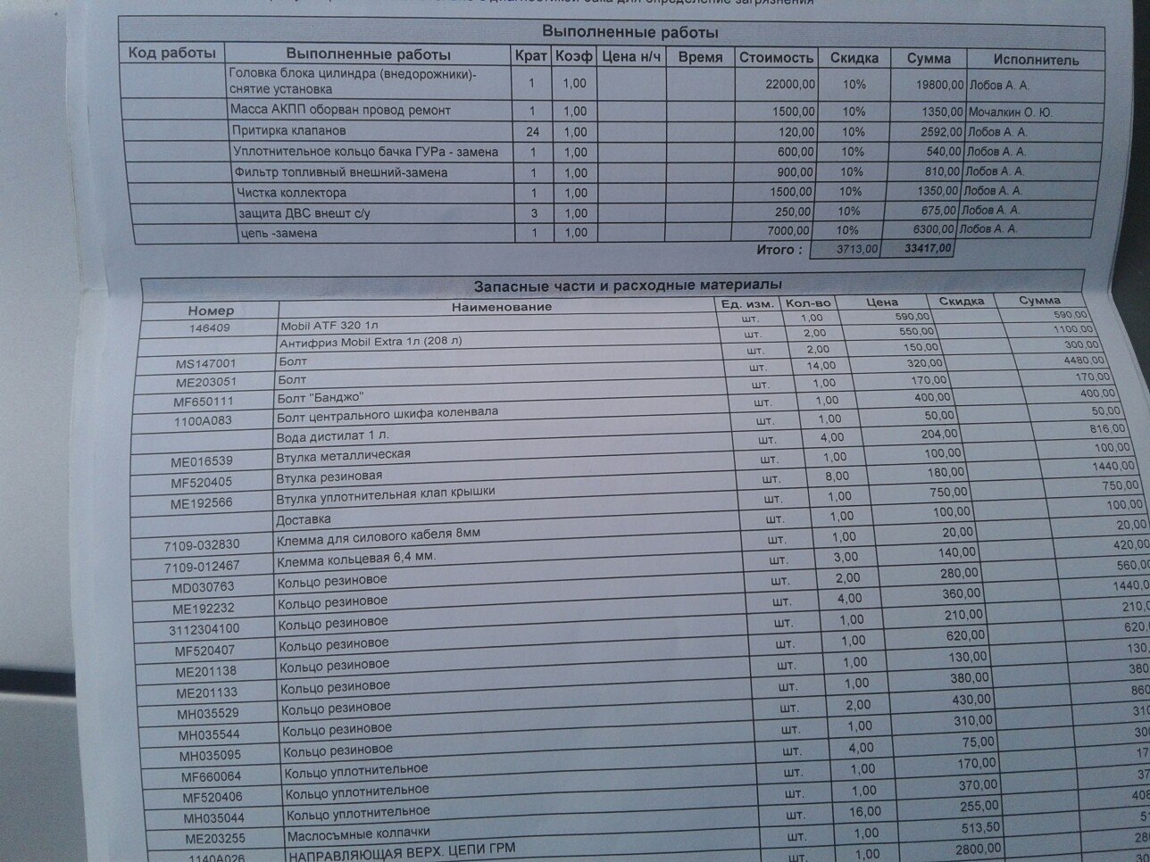 Замена цепи в апреле. Делал в Тех-автофоре. Снимали ГБЦ поменяли все прокладки и кучу всего по мелочи. Имеется накладная, чеки.