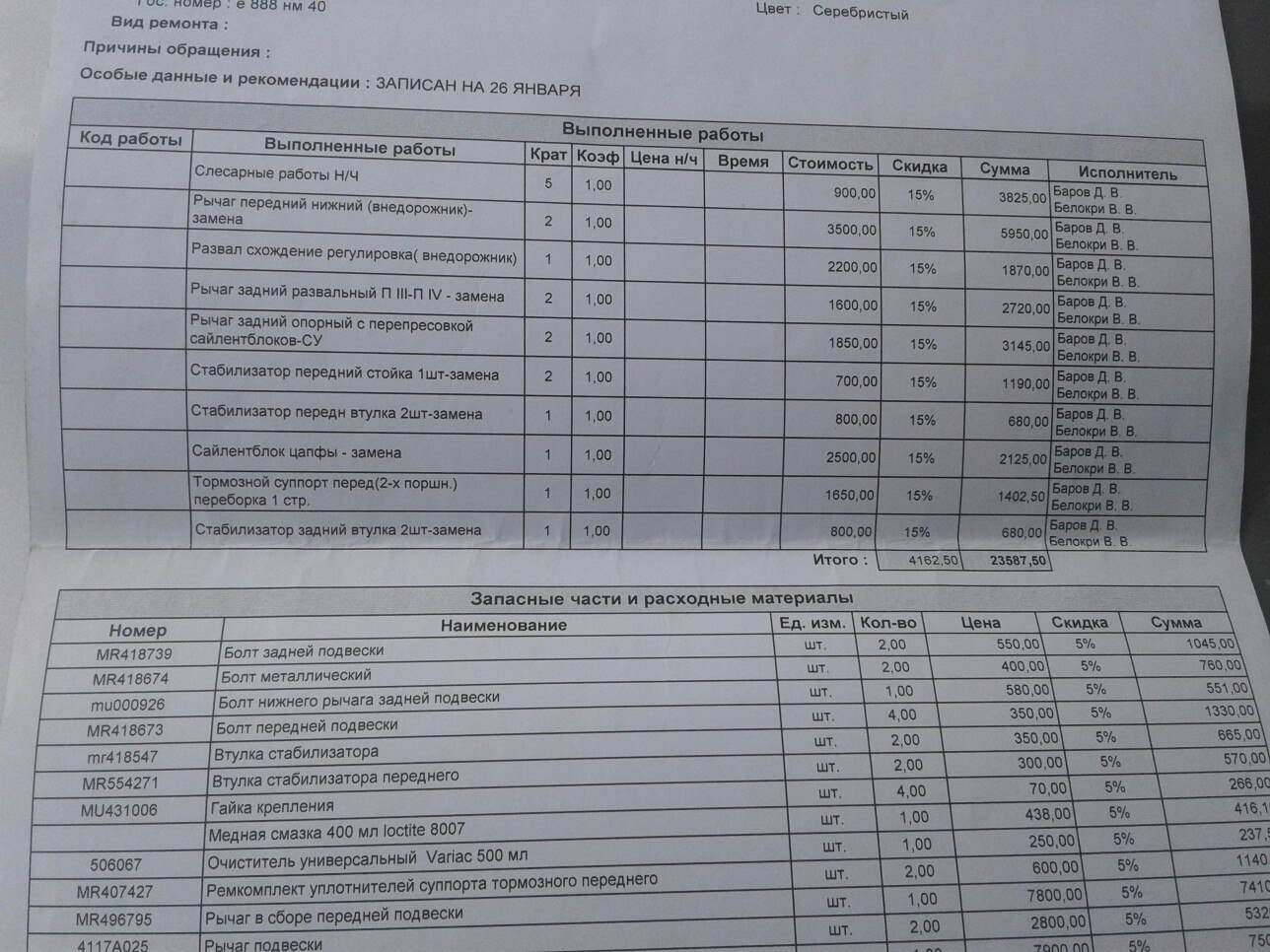 Подвеска живая (менял два года назад все рычаги на оригинал, делал в Тех-Автофоре), болты крутятся, сход-развал в норме.