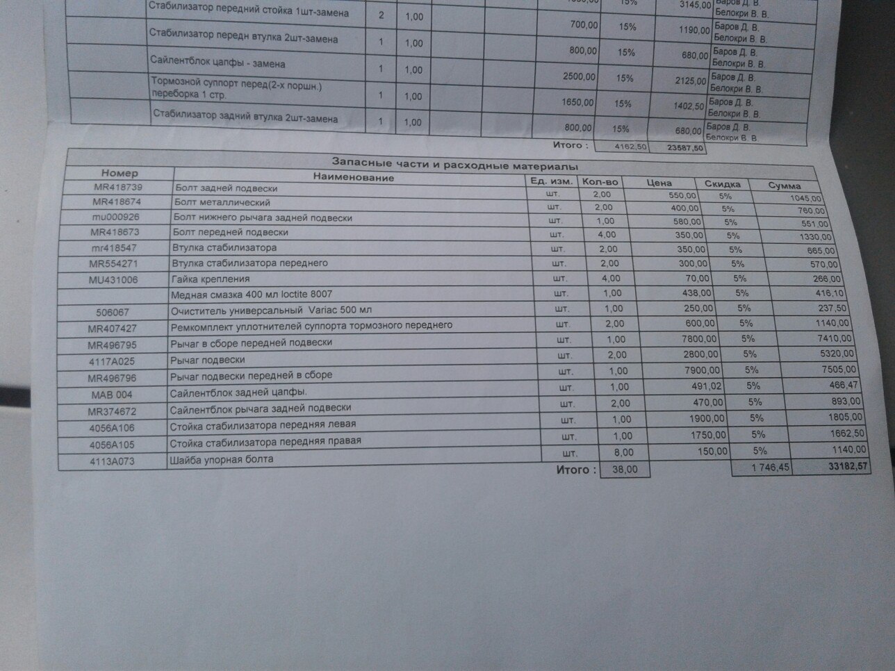 Подвеска: Два года назад, перебрал подвеску полностью из-за закисших болтов сход-развала. Замена всех рычагов сзади (в том числе и продольных) и шаровых, нижние рычаги и шаровые спереди.Ставил все оригинал.с тех пор пробежала тысяч 50. Весной поменял задние пружины и аммортизаторы. На данный момент все болты крутятся (полностью выкручиваются и смазываются два раза в год), сход-развал в норме, рваных пыльников и сайлентблоков, просевших пружин, потекших аммортизаторов нет. Тяги и наконечники менял по необходимости на оригинал. Заменены задние ступицы с подшипниками, тоже оригинал.