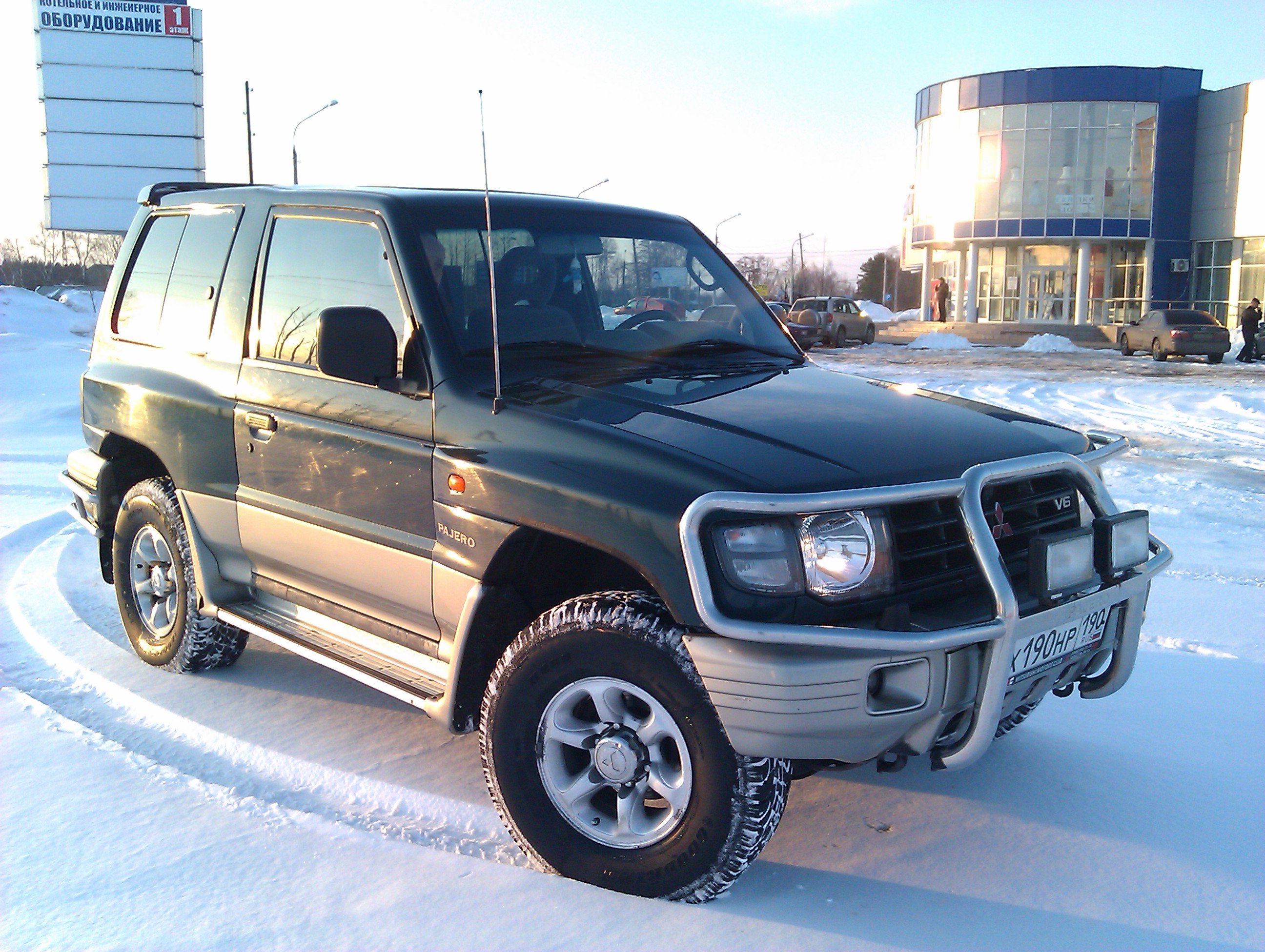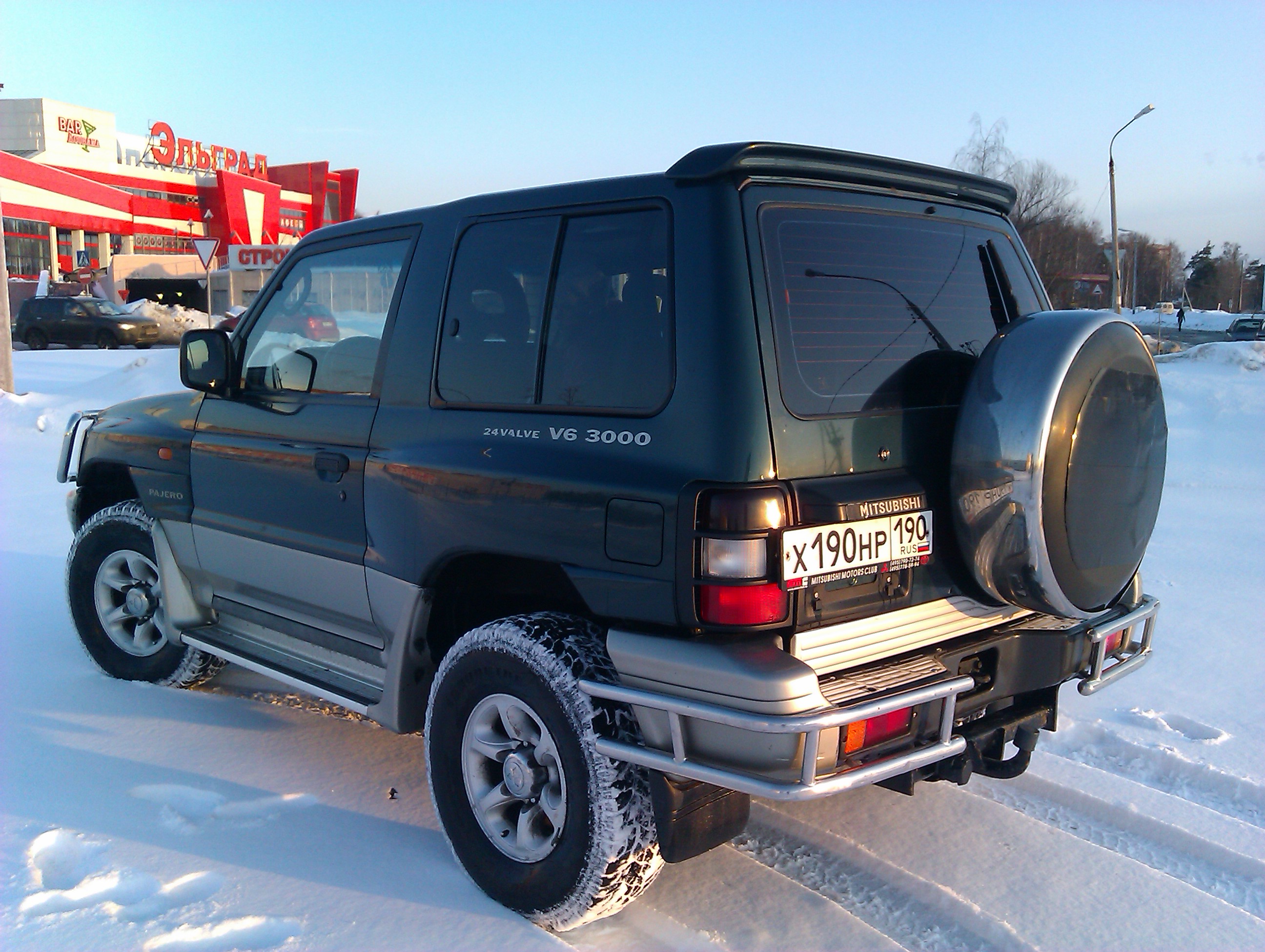 Митсубиси Паджеро 3 двери (Рестайлинг), ноябрь 1998 г, пробег 232000 км., темно-зеленый металлик, 3.0 177 л.с., АКПП, ГУР, кондиционер, магнитола MP3, эл. стекла, зеркала, люк, блокировка заднего моста, кенгурятник спереди и сзади, фаркоп, новая резина (31х10,5хR15 AT), мультилок на КПП.