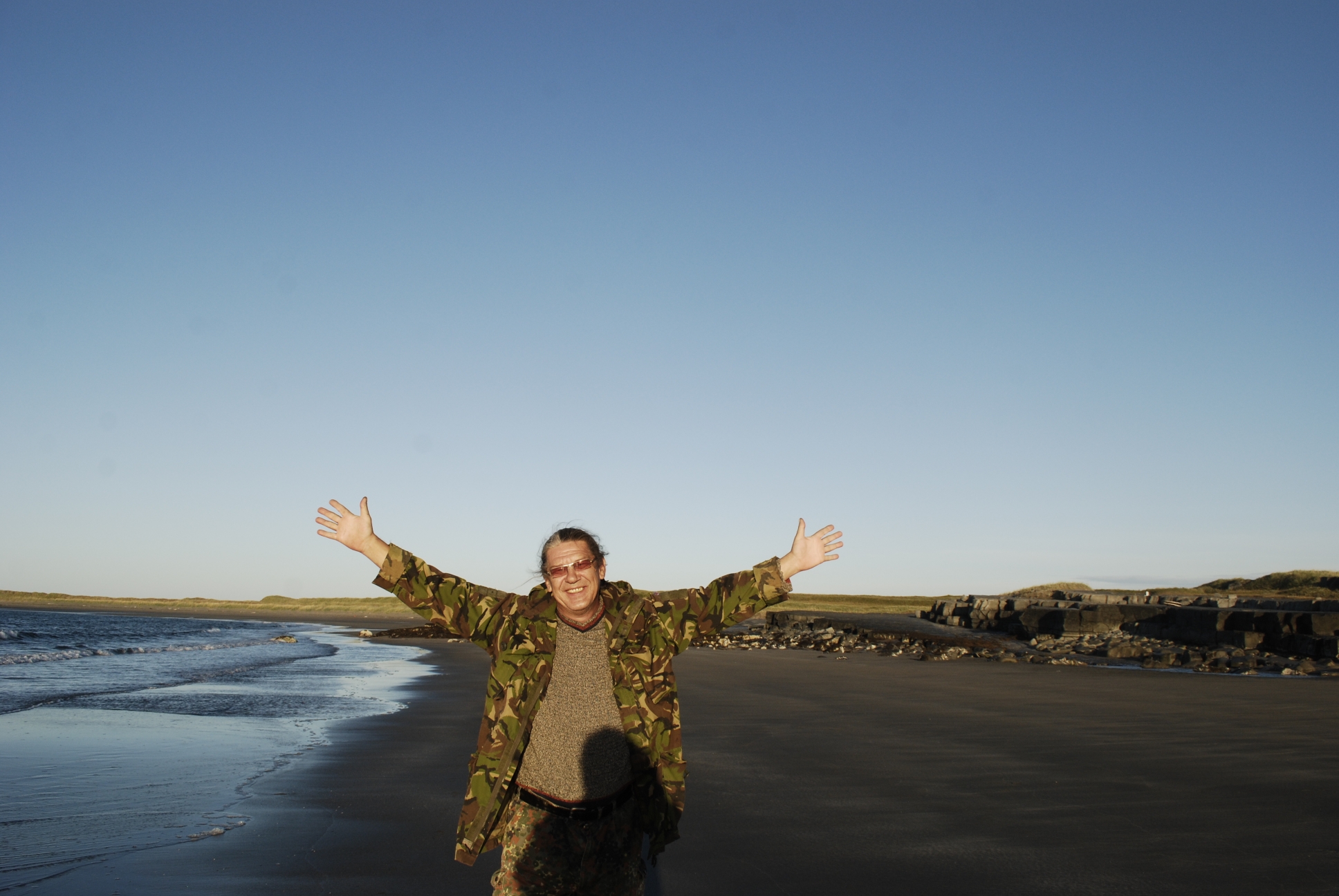 65. Леха пытается купаться, но получилось не очень=) Долго бежал вперед, а все мелко. Быстро стало очень холодно и бегом обратно к машине=)