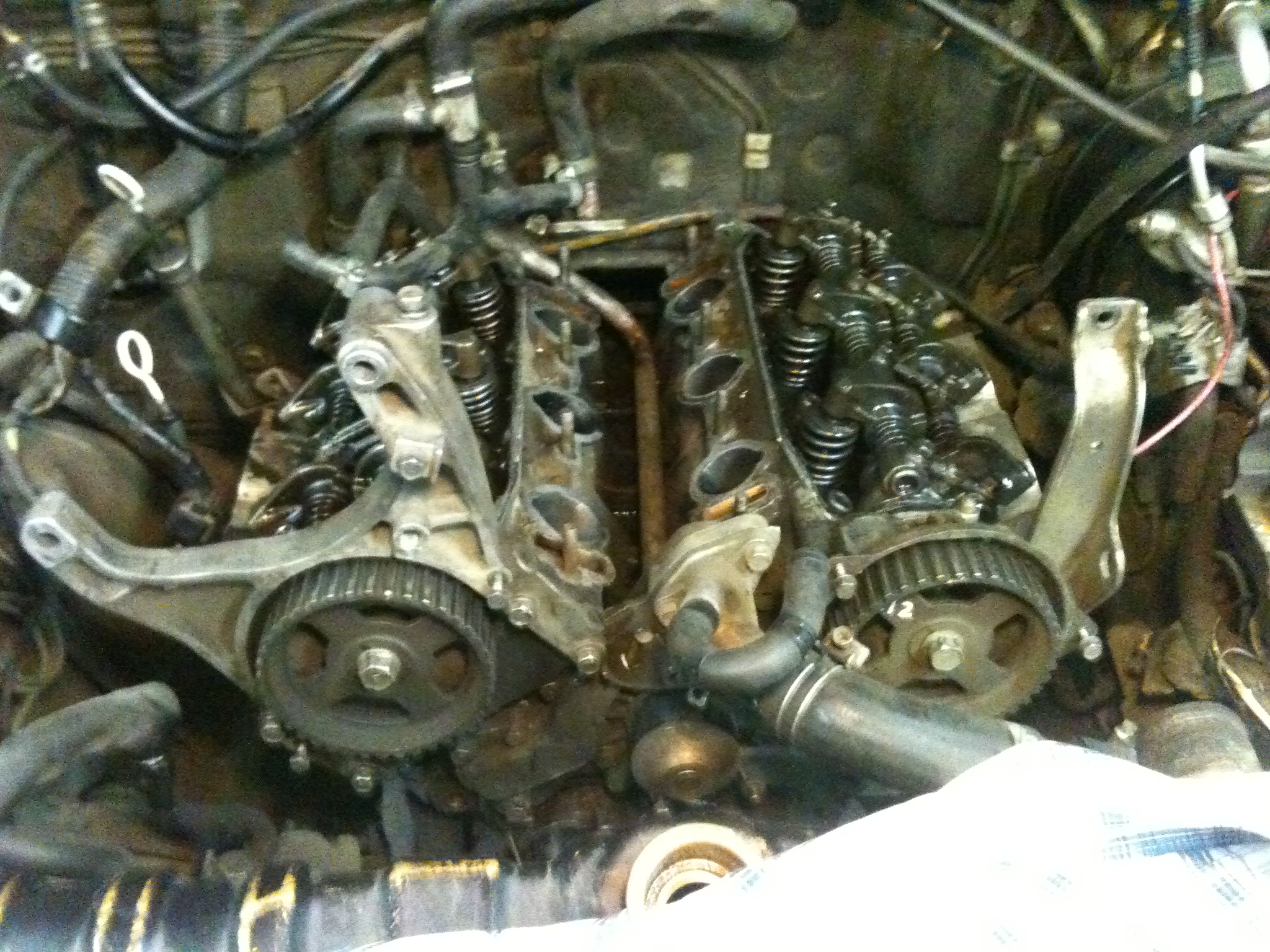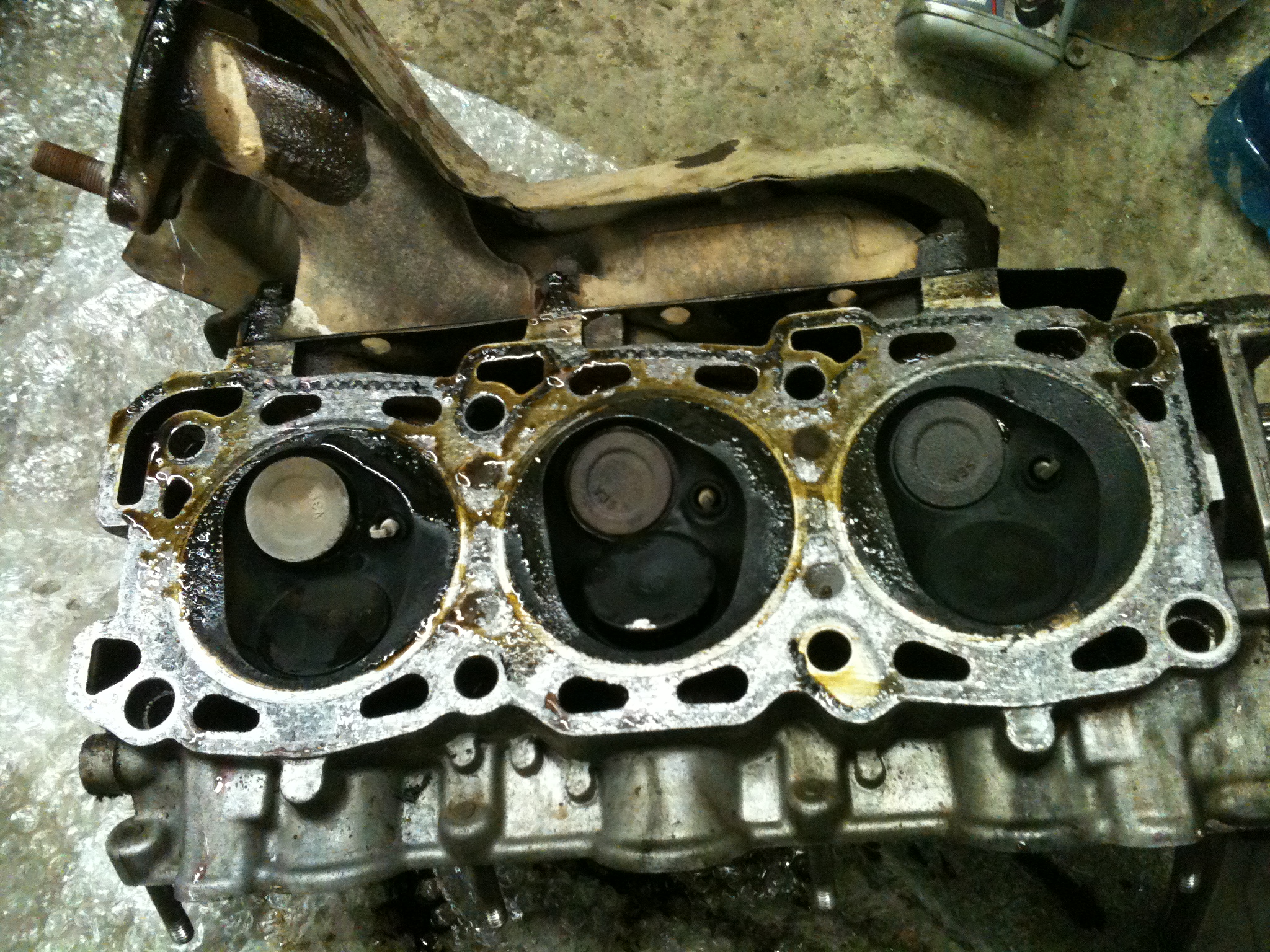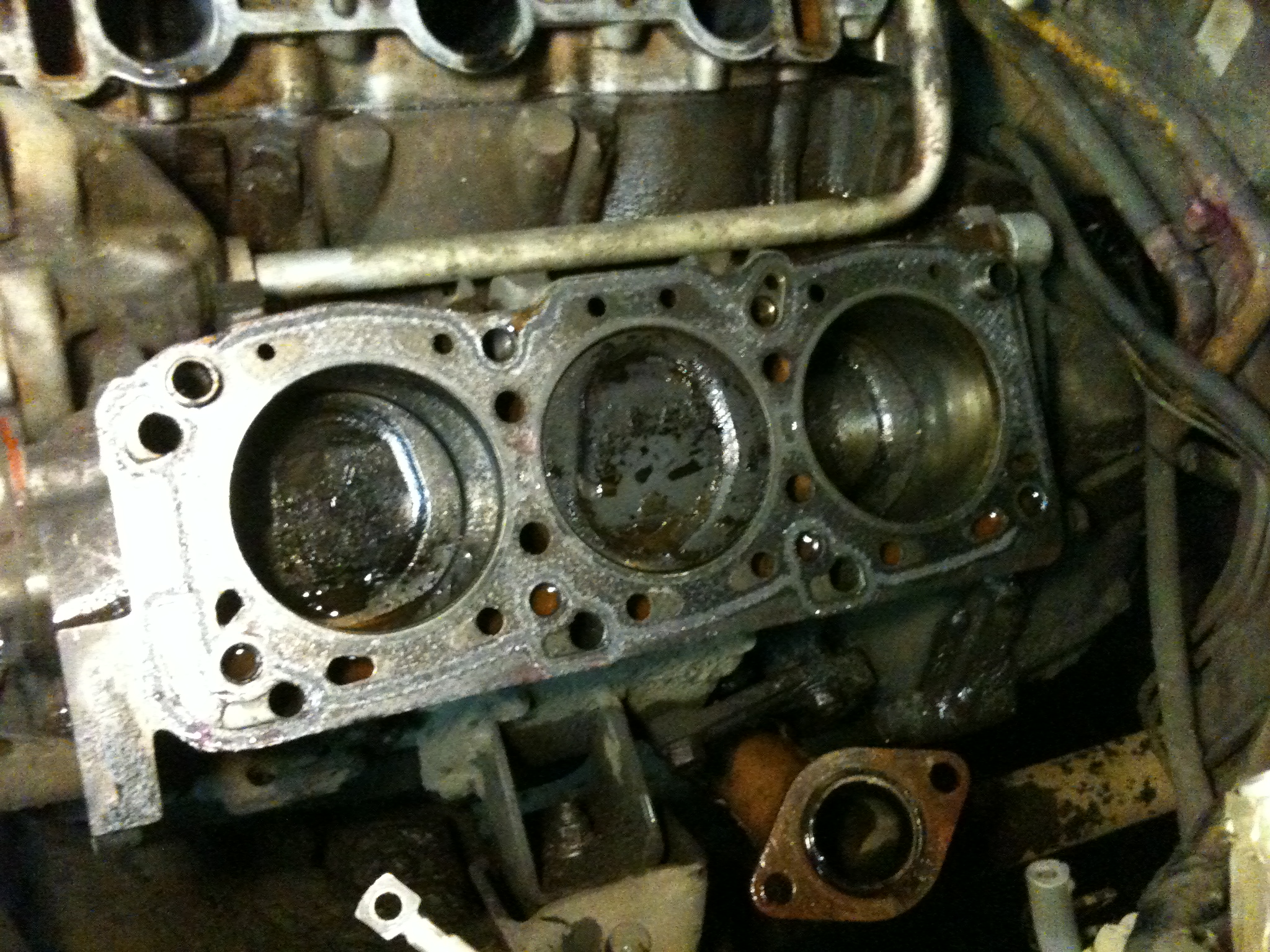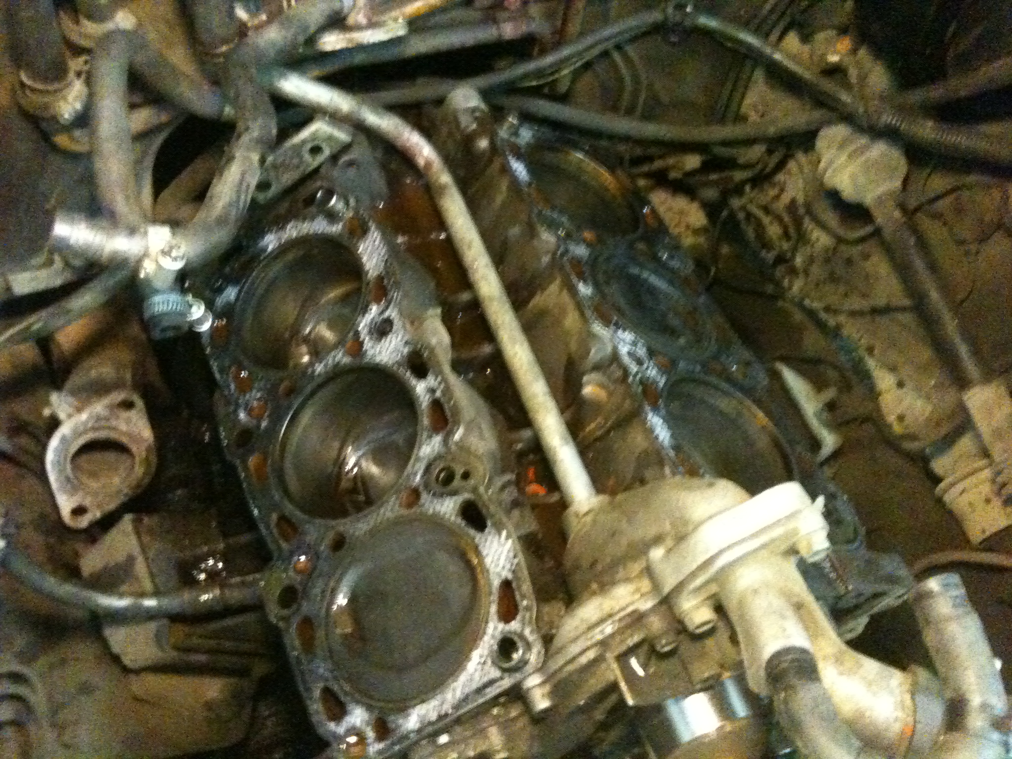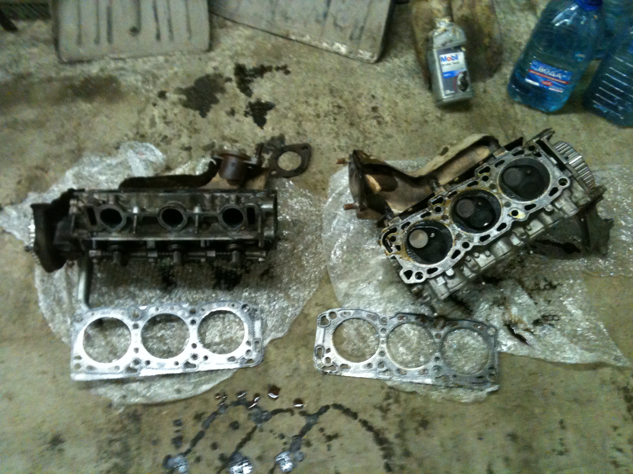 Действия: 07.03.2013 забрав из местного офиса Exist'а прокладки, необходимые при замене ГБЦ, с восстановленными головами в багажнике двинулся в знакомый сервис, где договорился собственноручно произвести замену обеих ГБЦ. Приехал, отчистился от снега, заехал в тепный бокс на яму и в 22:00 начал разбирать ДВС.