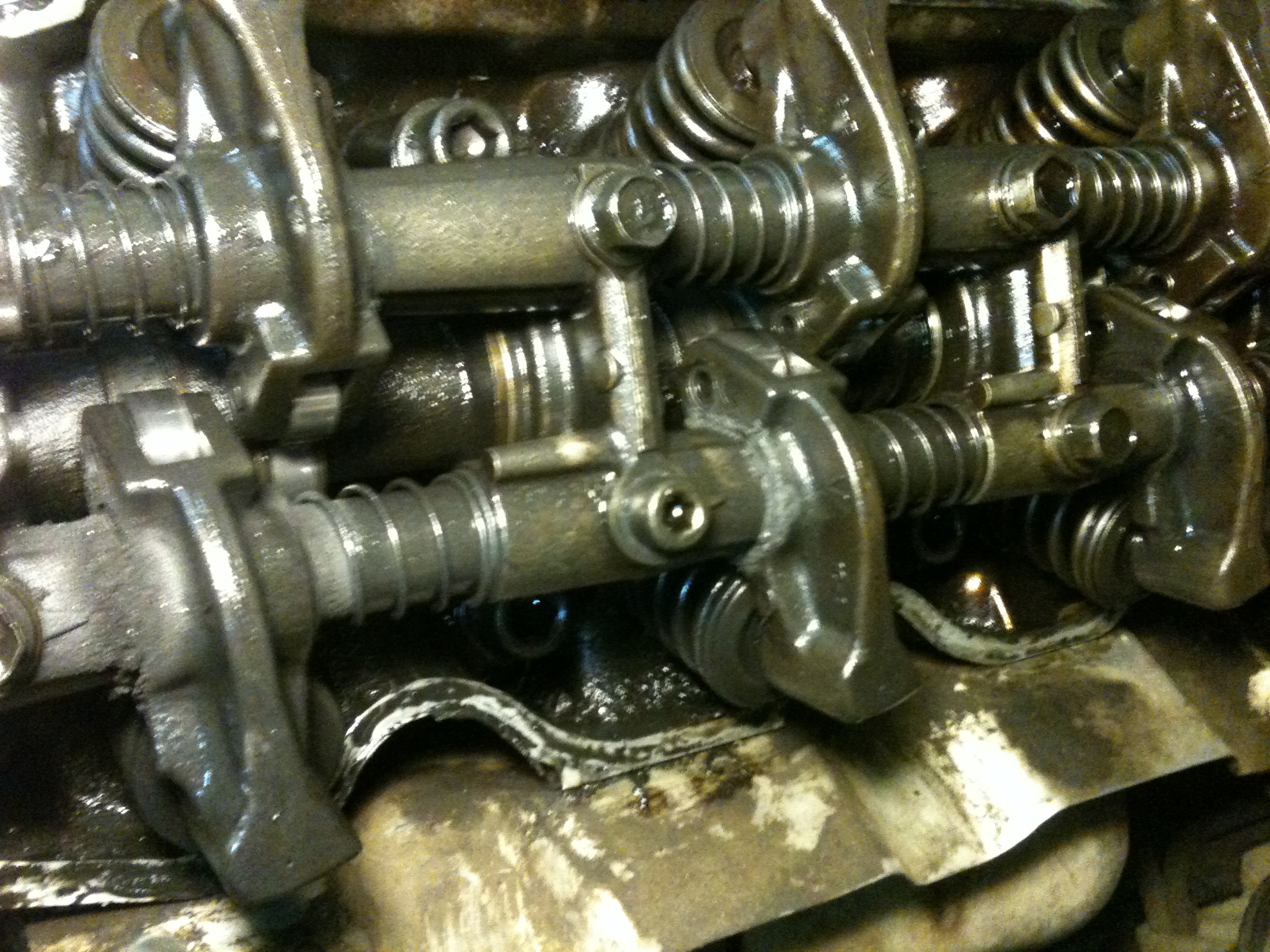 Вот так я снял головы в первый раз. Обнаружил трещину между клапанами на одной голове, купил б/у, поставил, и ездил полгода без особых проблем (только печка не грела, но там сам радиатор печки был внутри забит наглухо, да гидрики стучали).