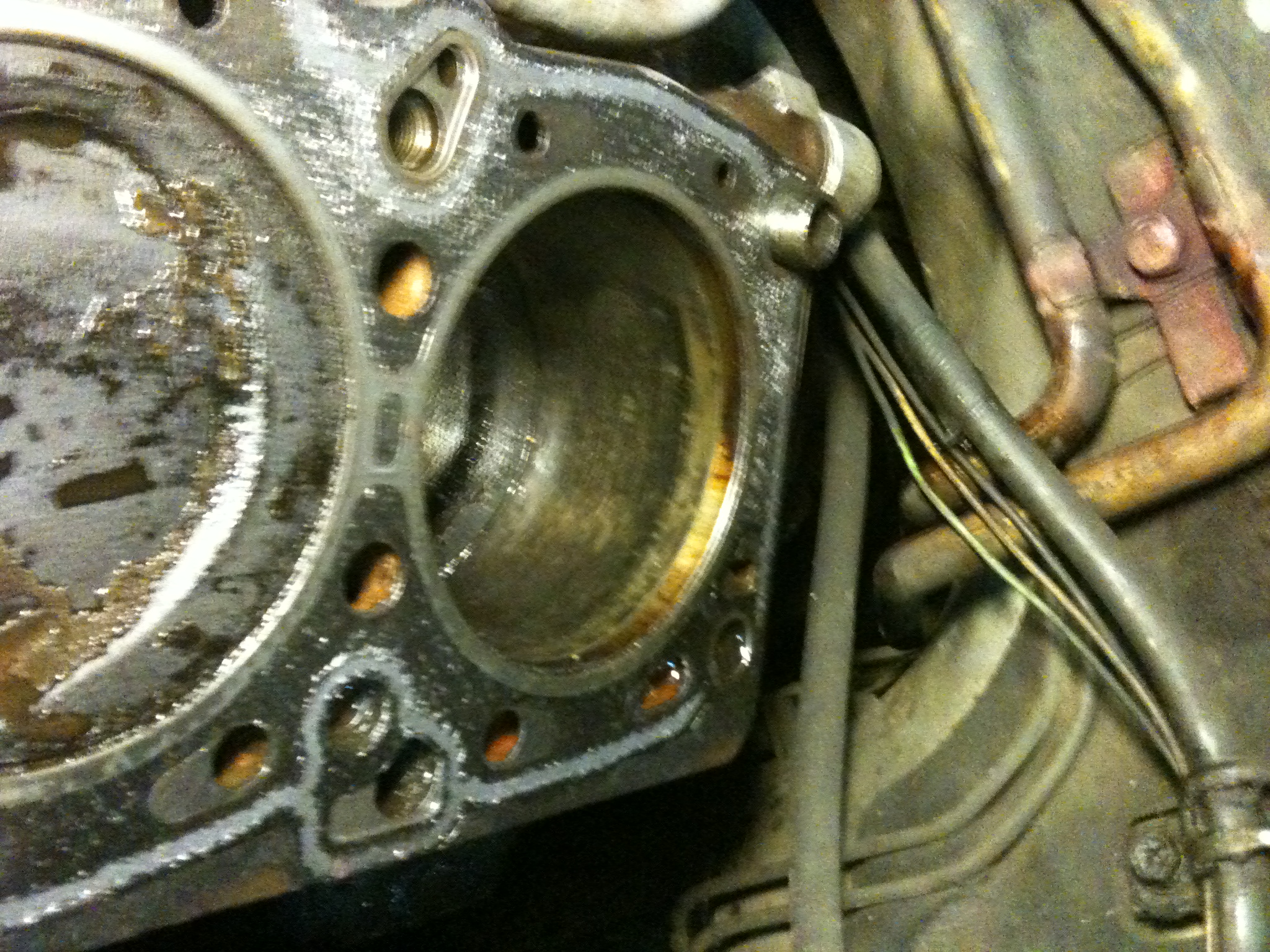 В 02:40 отсоединены приемные трубы глушителя и внимательно изучено состояние левой ГБЦ, выкурена не одна сигарета в процессе обдумывания, прикидывания и т.д. Теперь ГБЦ точно готовы к снятию, с этого момента решено значительно уменьшить скорость и проверять всё и вся в т.ч. и при разборе, чтобы исключить смерть новых ГБЦ.