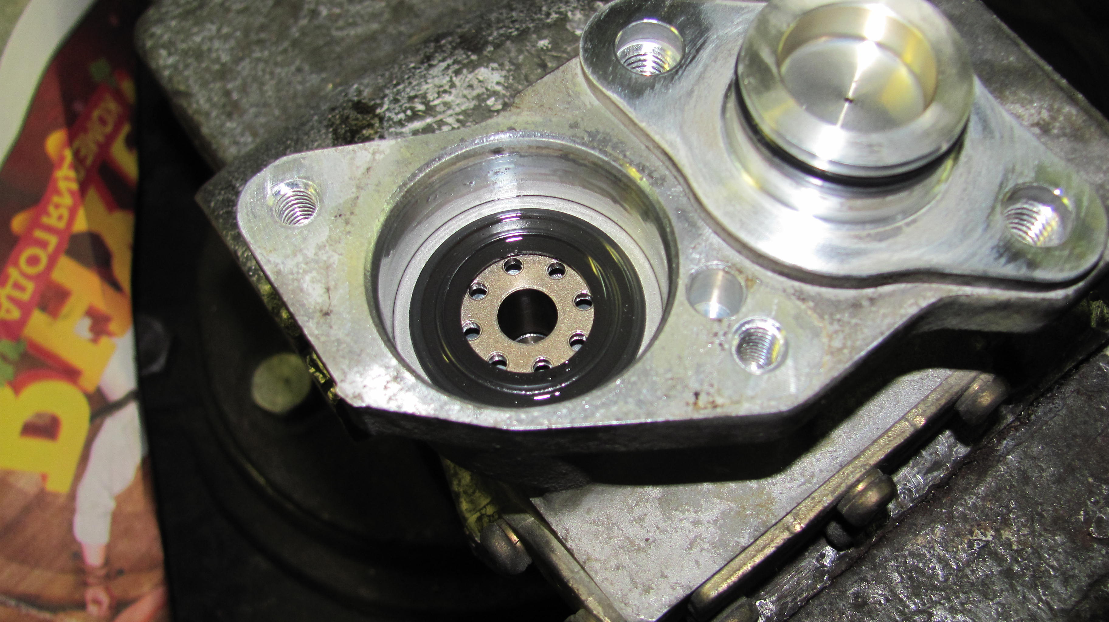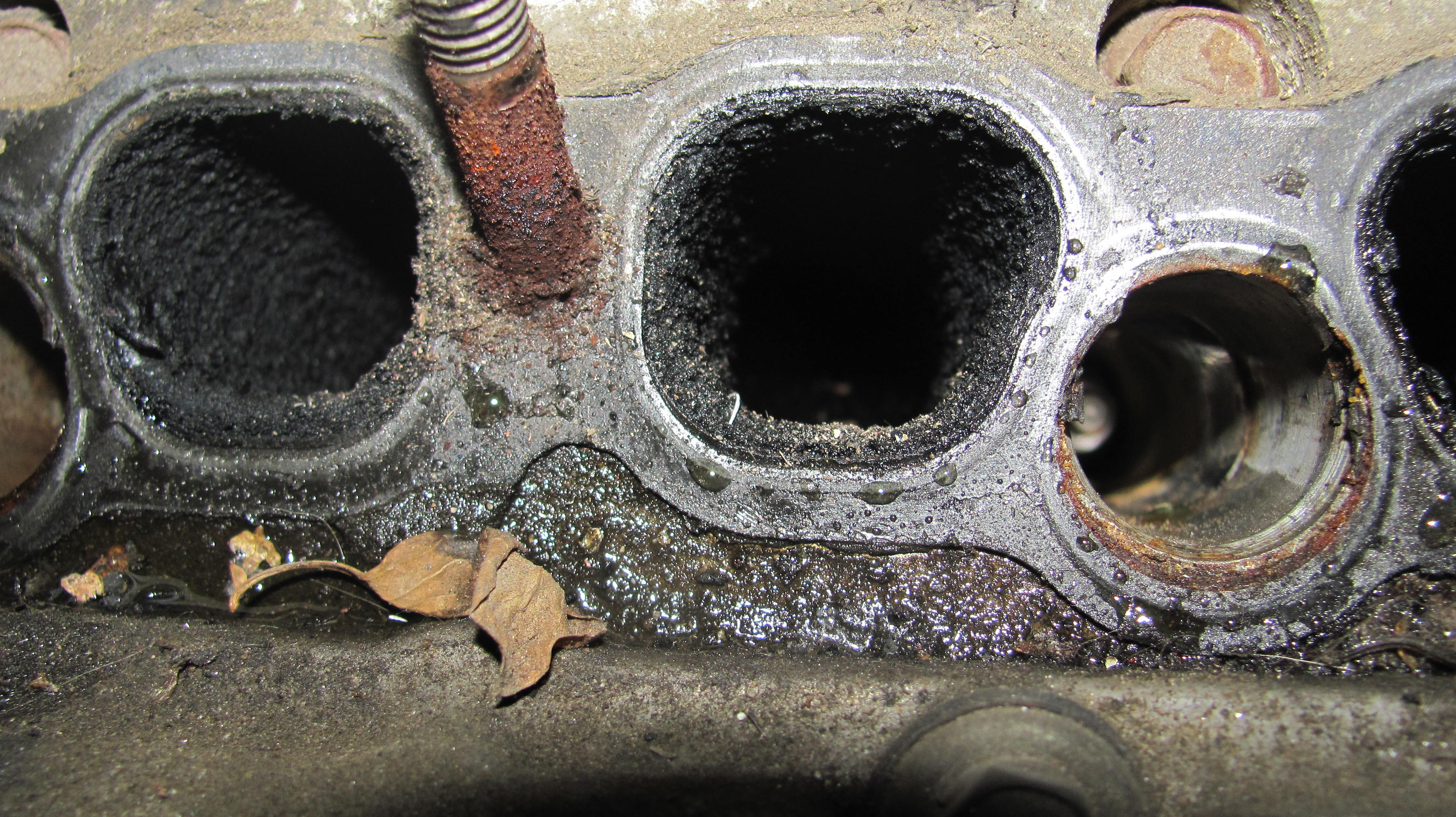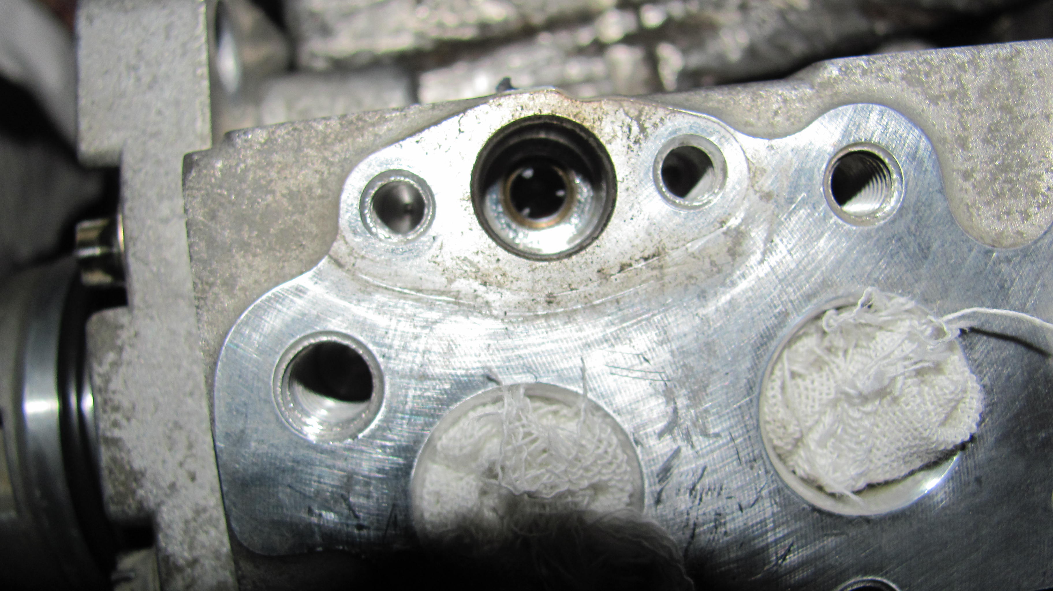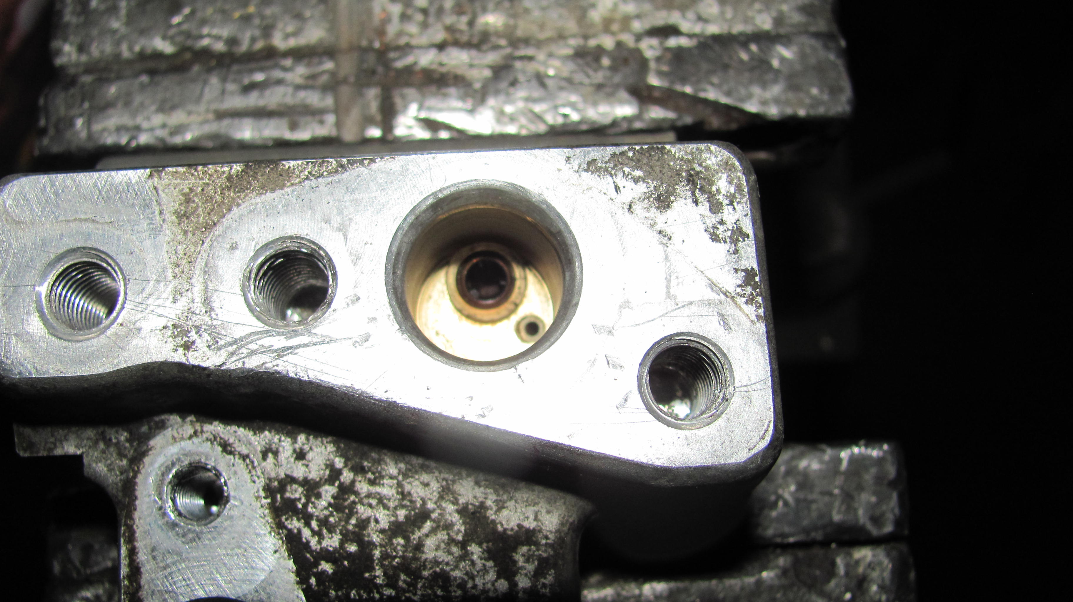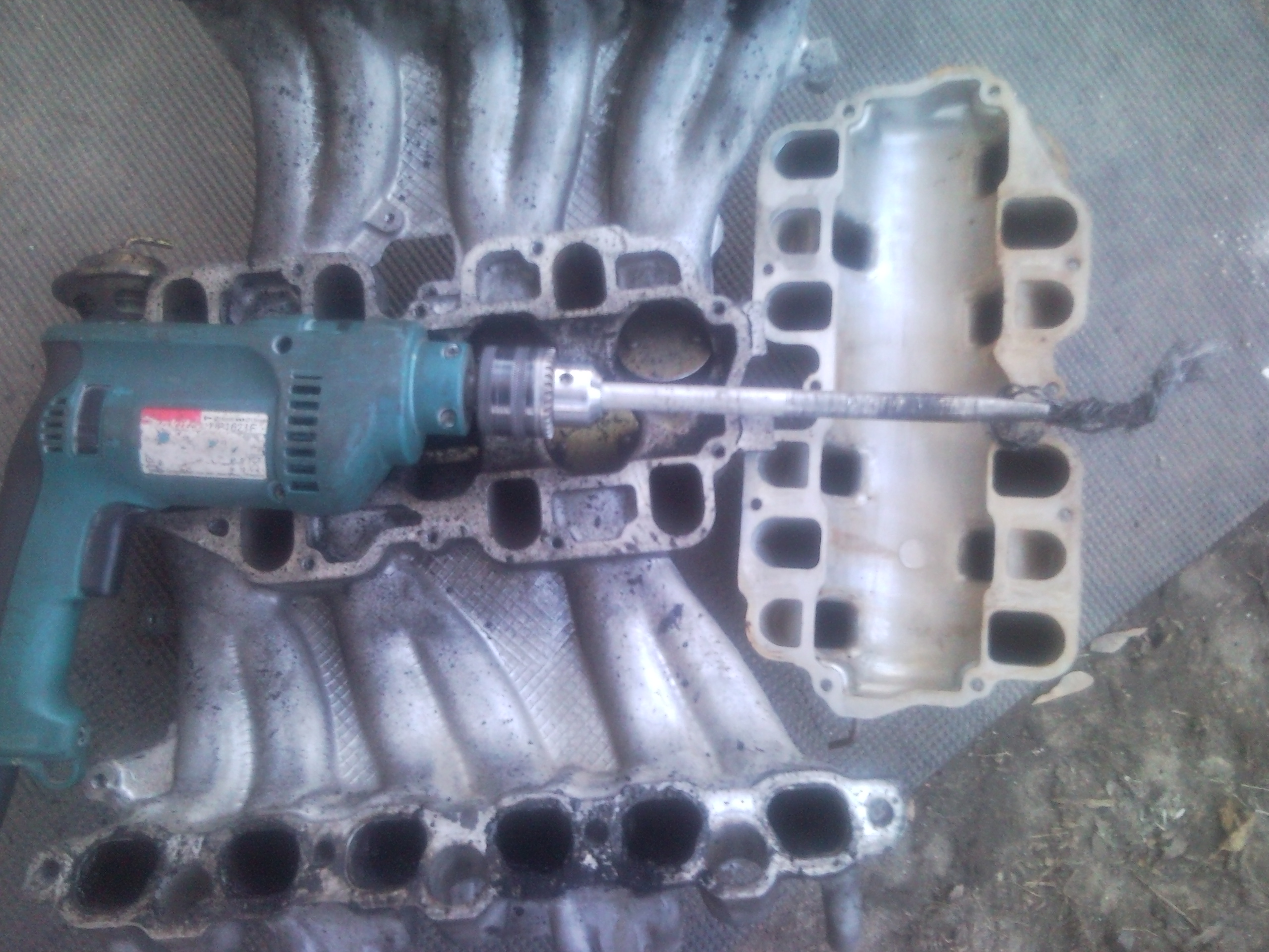 10)хочу открутить и извлечь свечи,но ключ-трубка на 16 отказалась залазить в колодцы.Диаметр наружний составил 24.5мм,обточил на нождаке до 23мм-в правые колодцы влетела как домой,а в левые (что под заслонкой-засранкой)отказалась,войдя на глубину коллектора,глянув в колодец обнаружил несоосность между головой и коллектором.Бросаю эту затею,откручиваю 8 болтов,что держат коллектор,снимаю его-