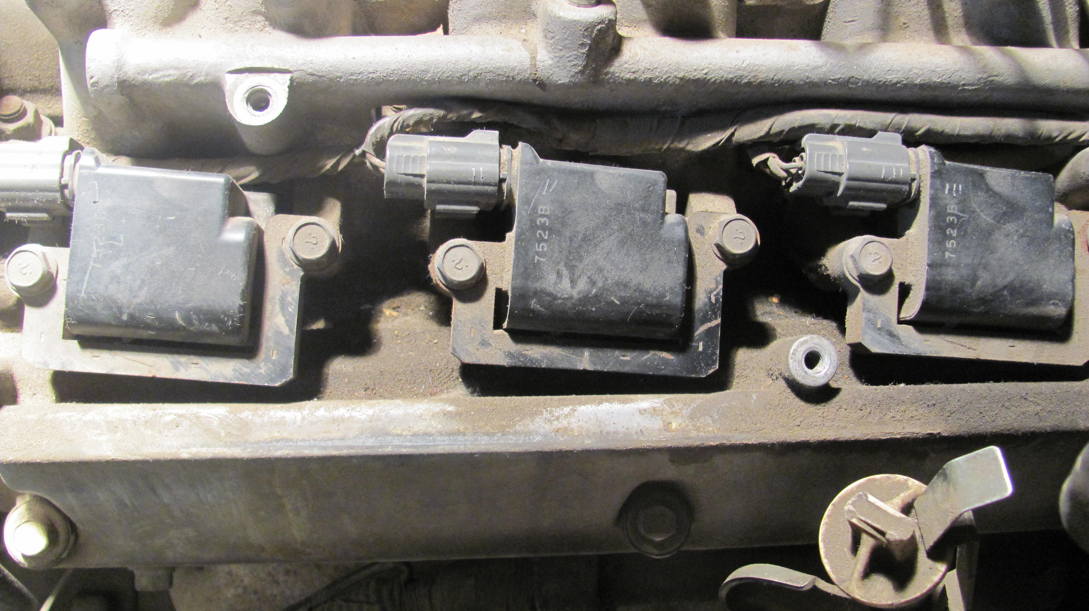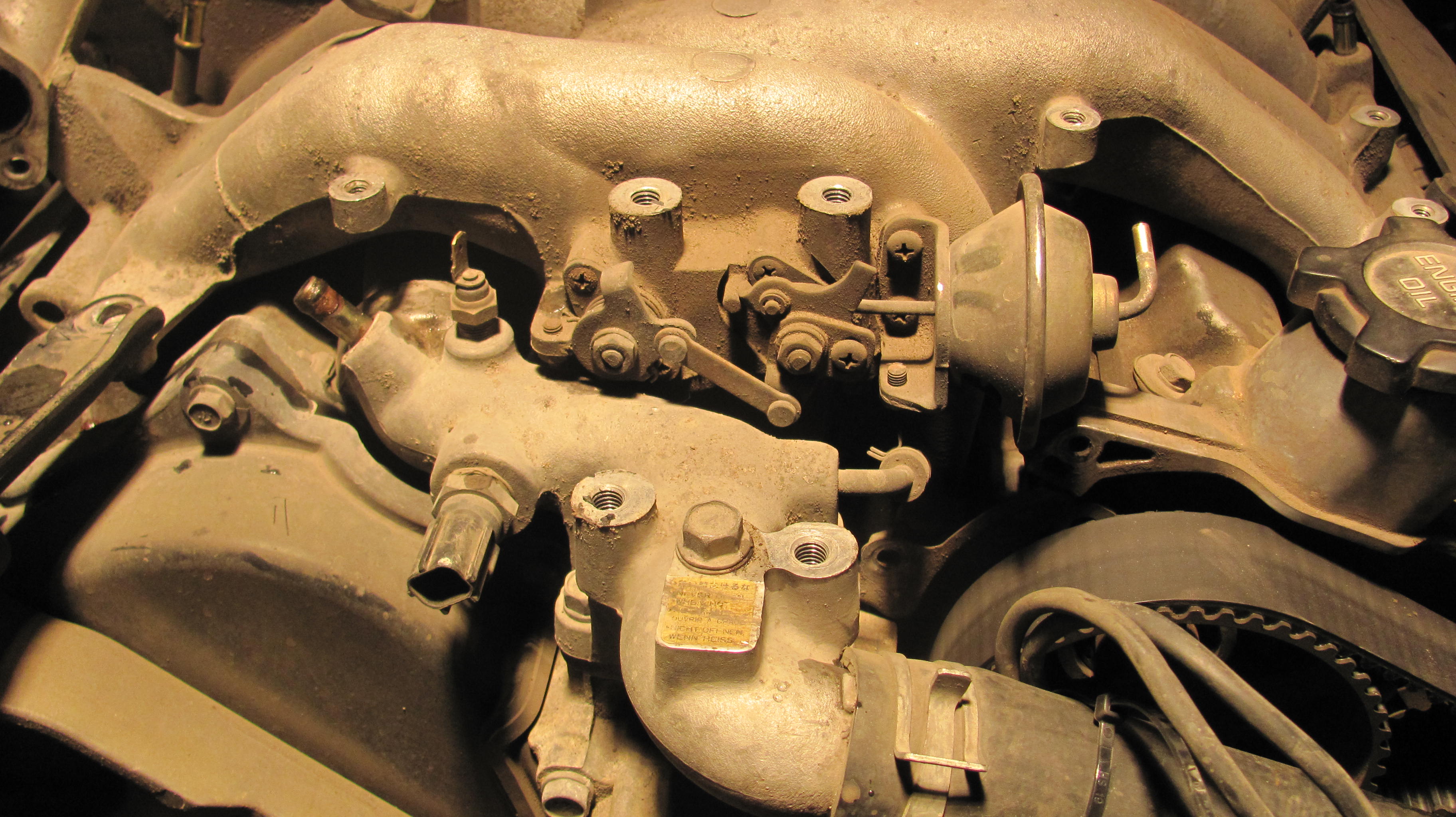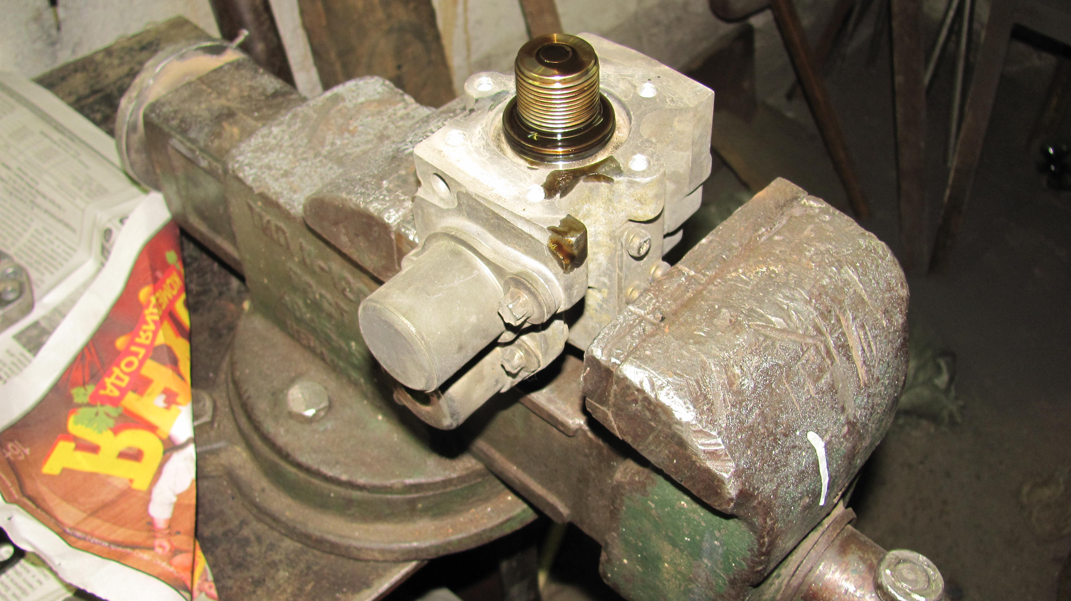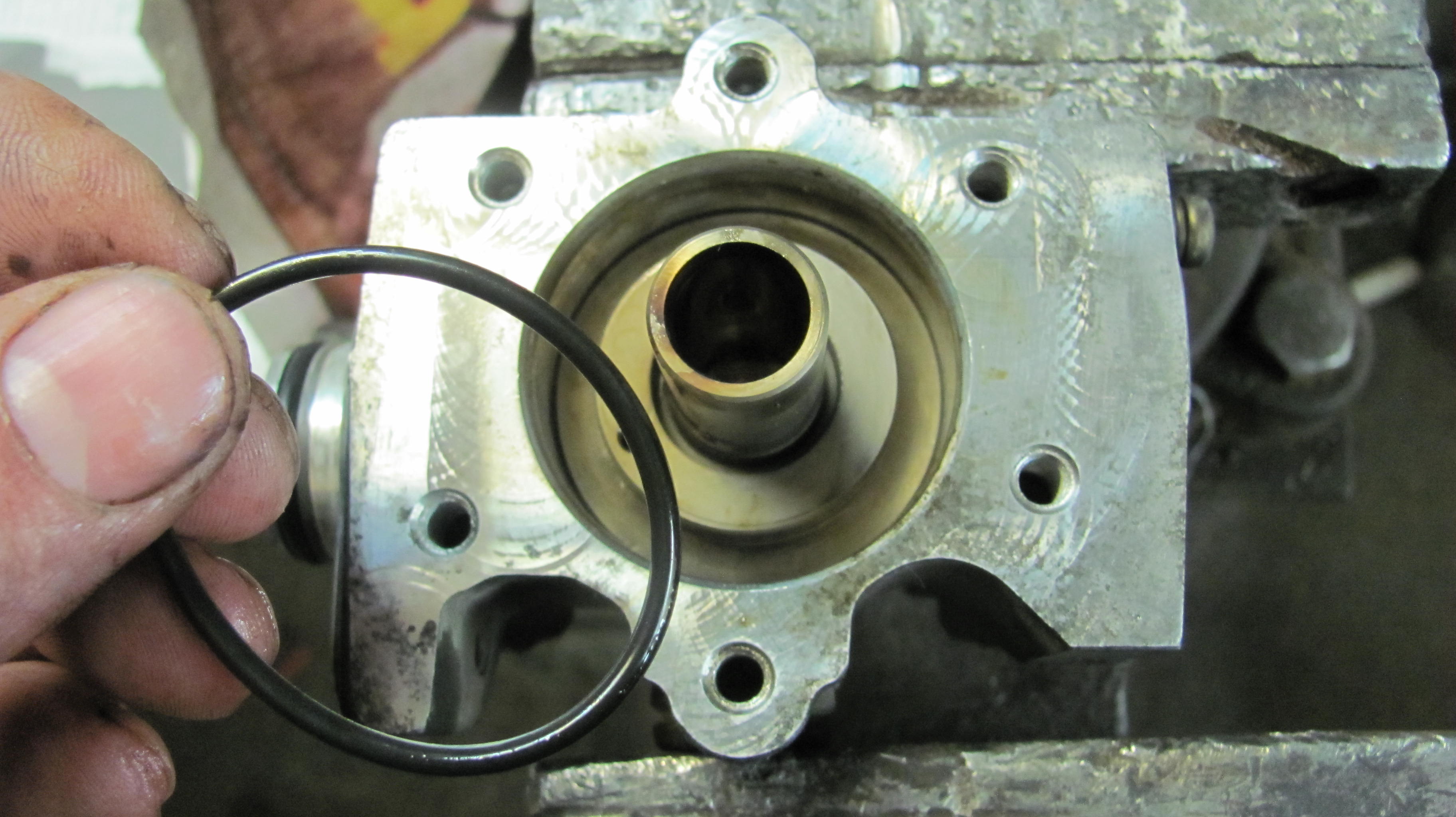 10)хочу открутить и извлечь свечи,но ключ-трубка на 16 отказалась залазить в колодцы.Диаметр наружний составил 24.5мм,обточил на нождаке до 23мм-в правые колодцы влетела как домой,а в левые (что под заслонкой-засранкой)отказалась,войдя на глубину коллектора,глянув в колодец обнаружил несоосность между головой и коллектором.Бросаю эту затею,откручиваю 8 болтов,что держат коллектор,снимаю его-