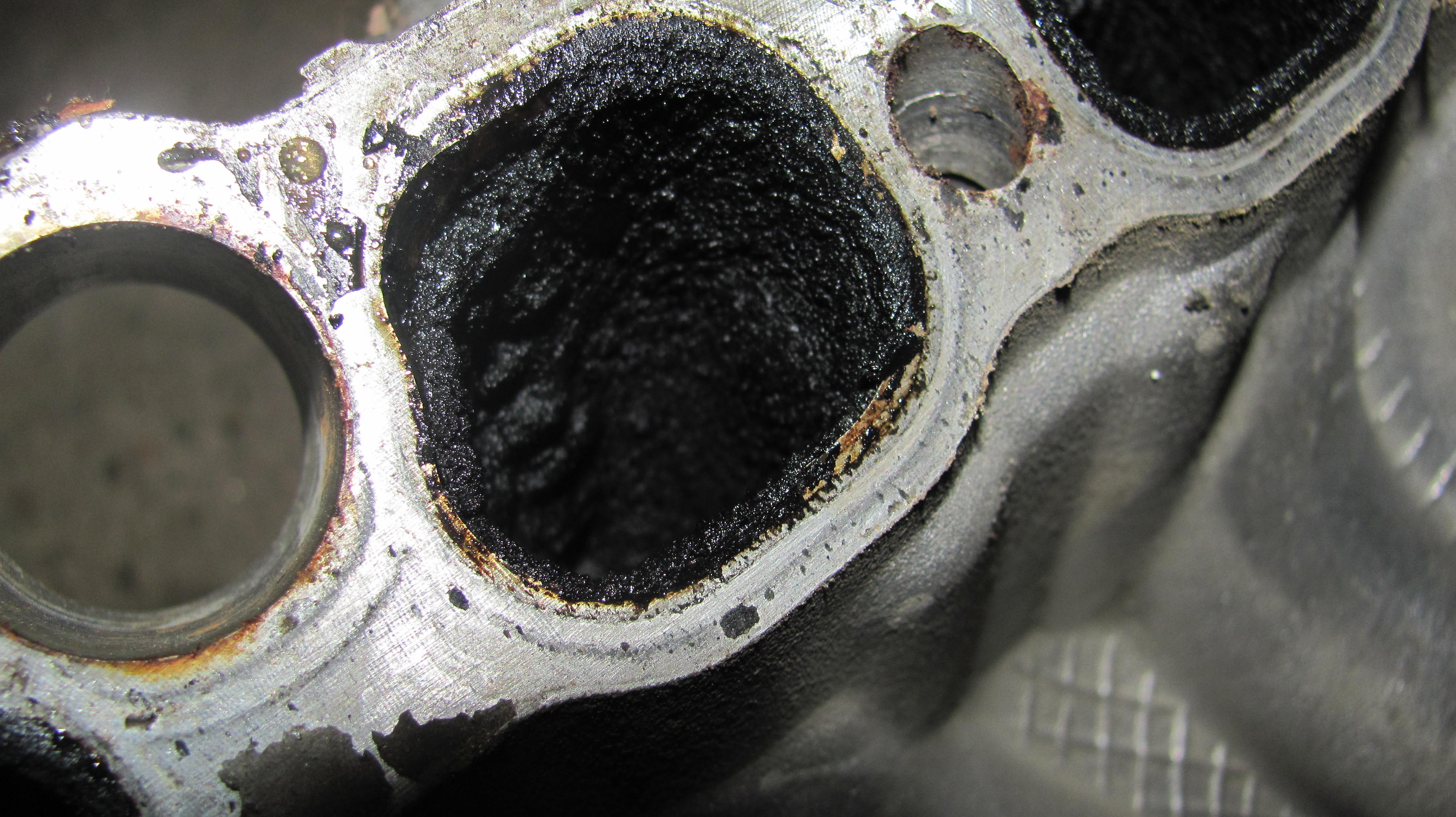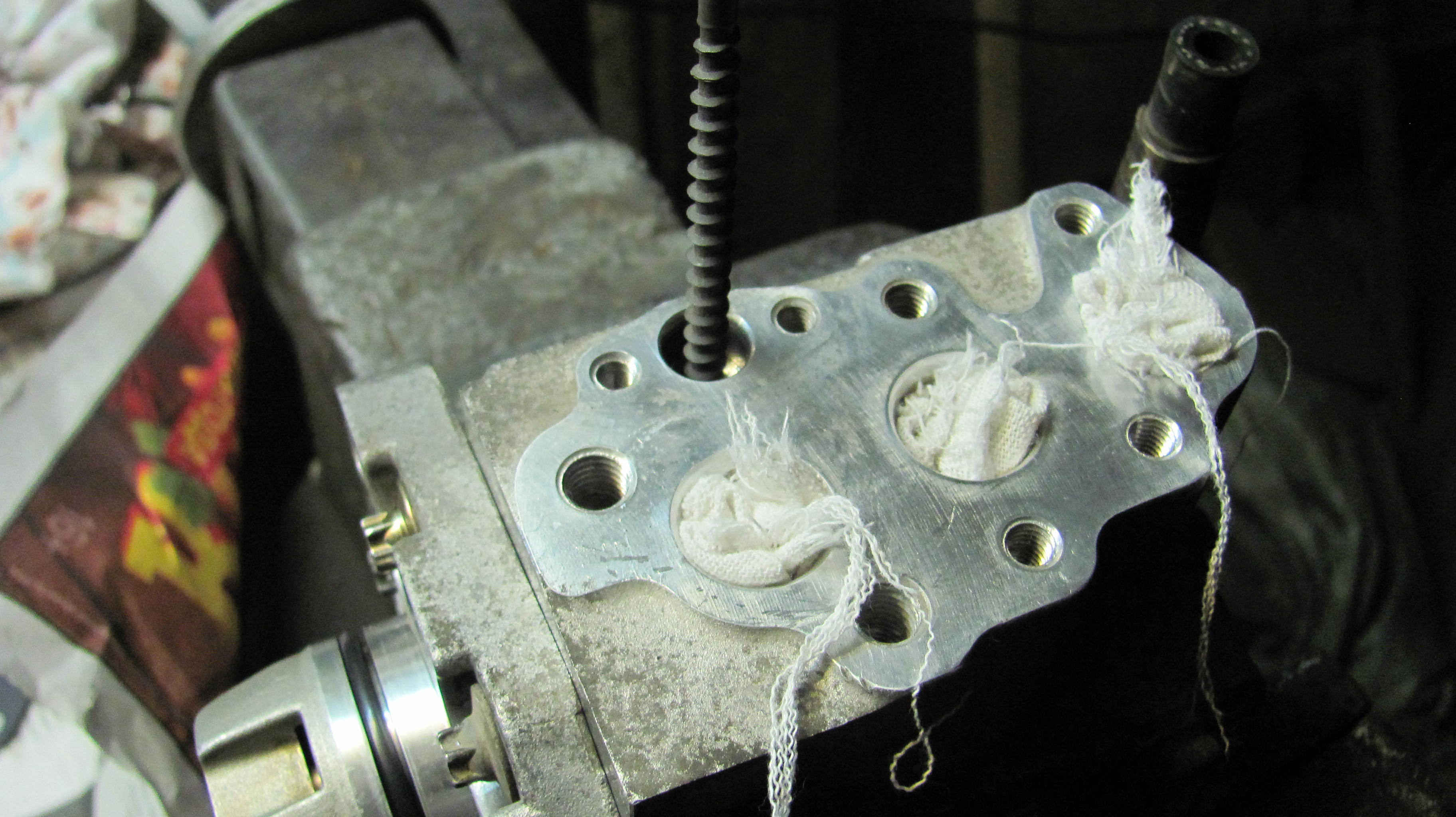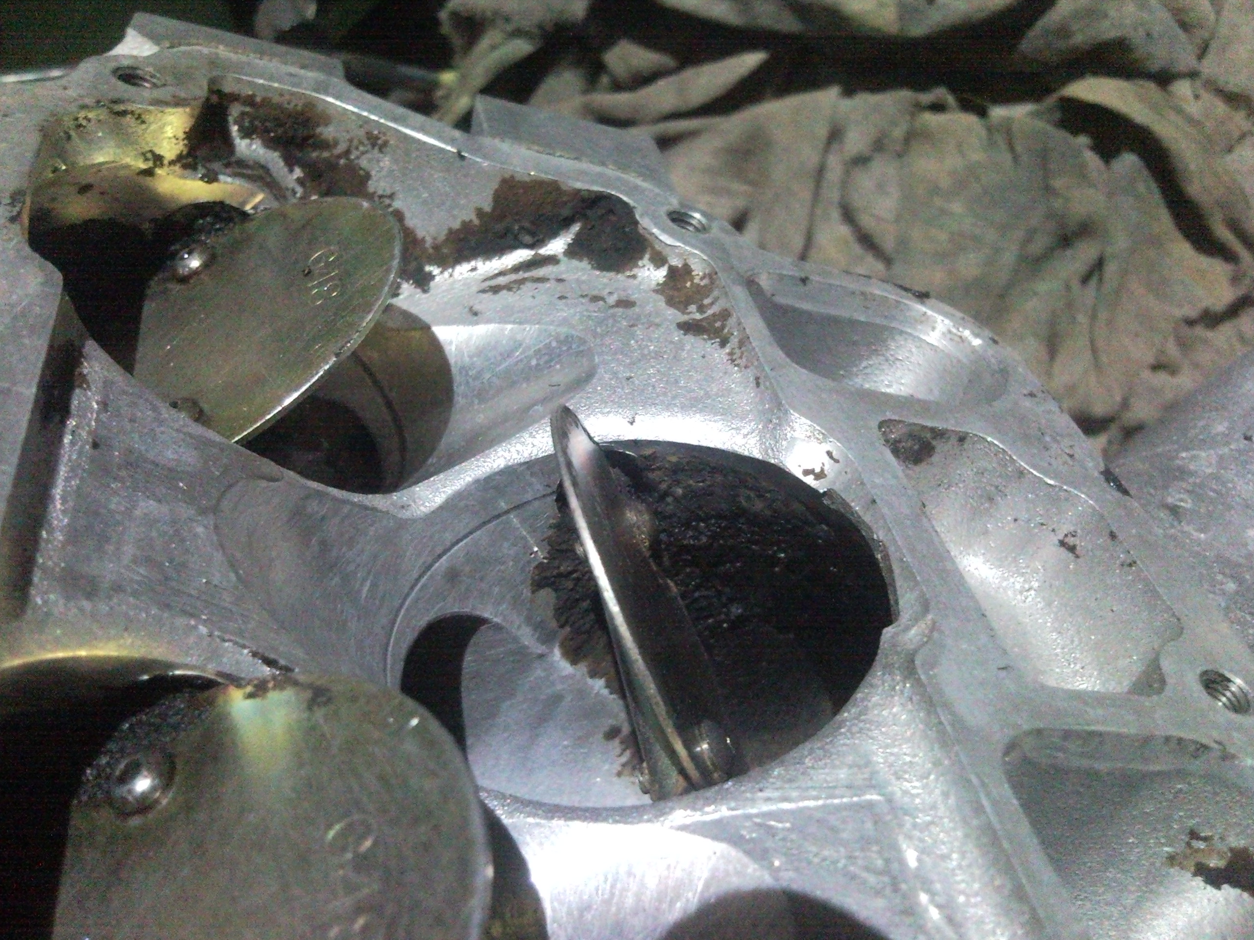 11)дальше интересней-открутив крышку заслонок увидел нагар ростом 15мм и заслонки которые расшевелил,лишь убрав часть махрового нагара