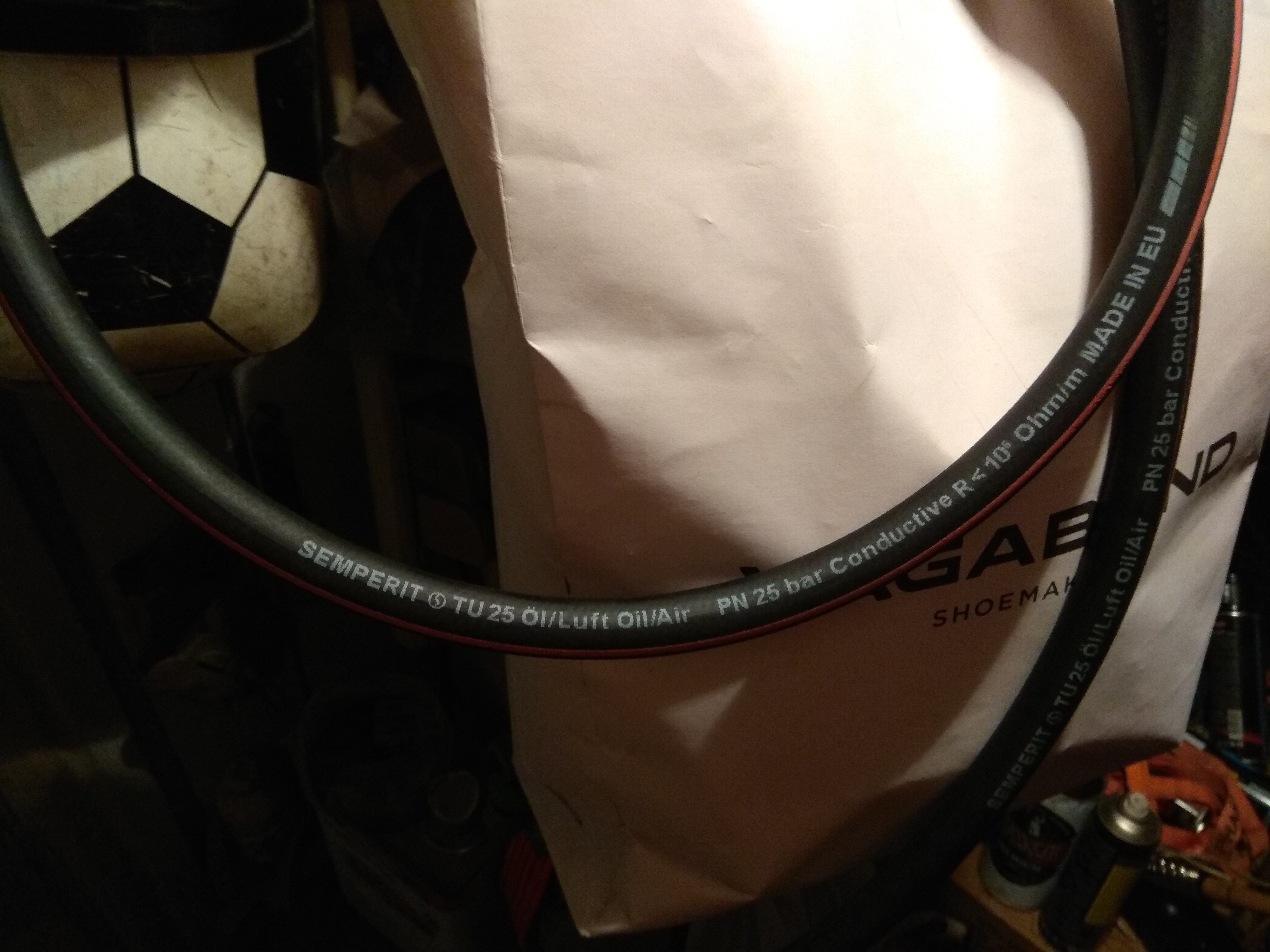 Поэтому я поехал в магазин "Планета Железяка" на МКАДе в Москве и купил метр бензо-маслостойкого шланга с максимальным давлением в 25 bar.