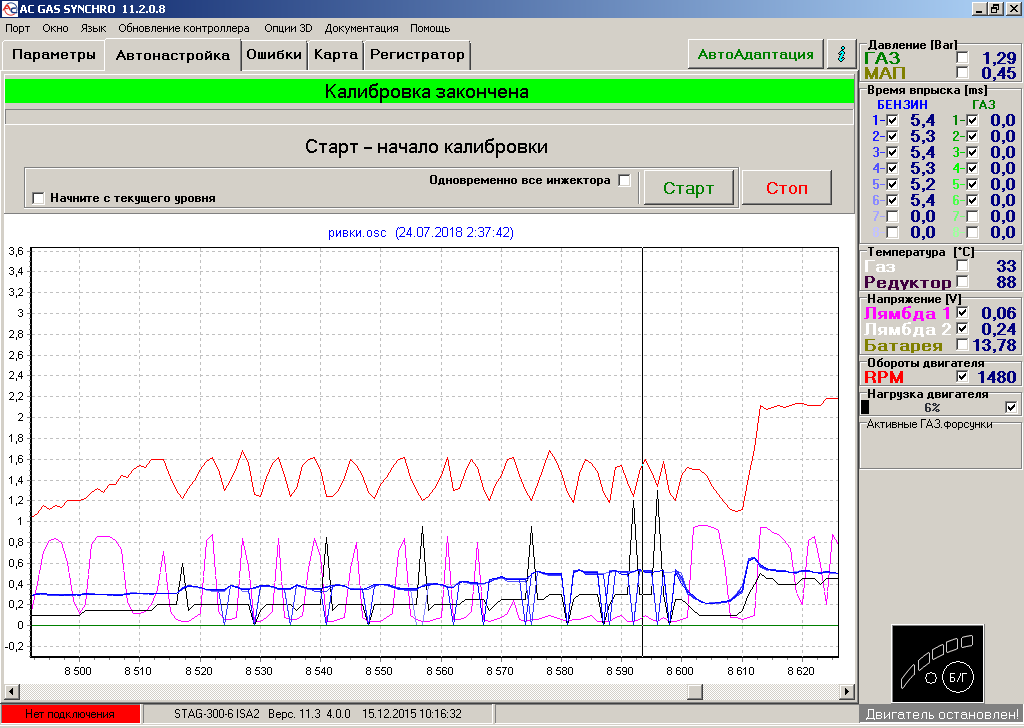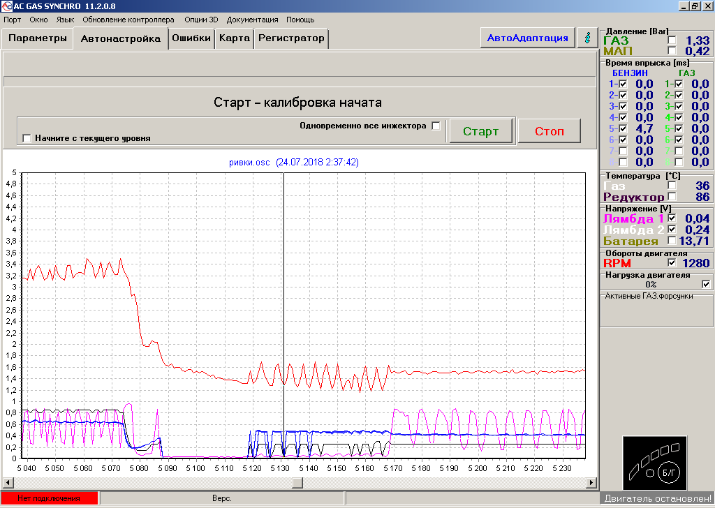 Получилось снять график при помощи утилиты для настройки ГБО.