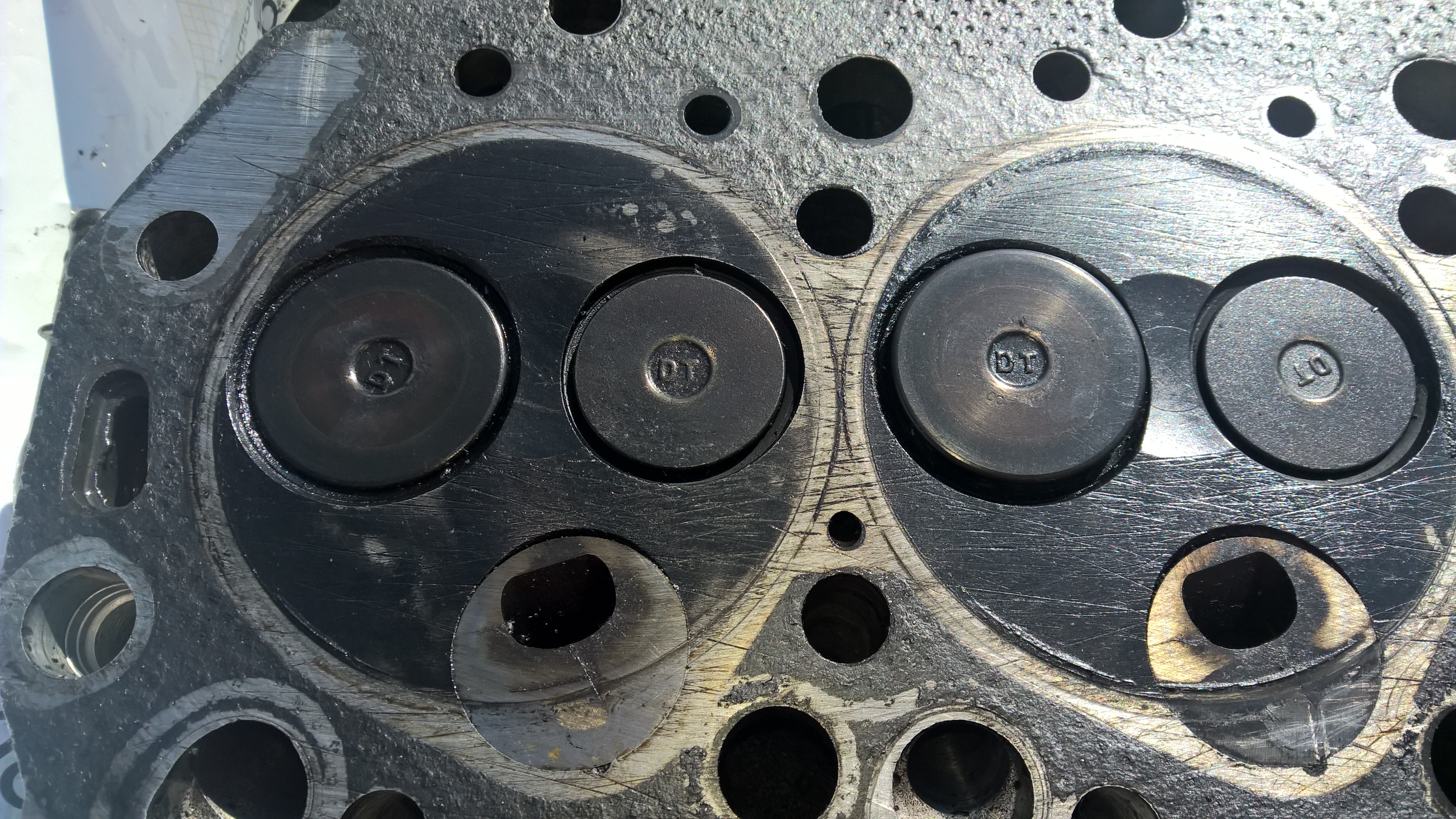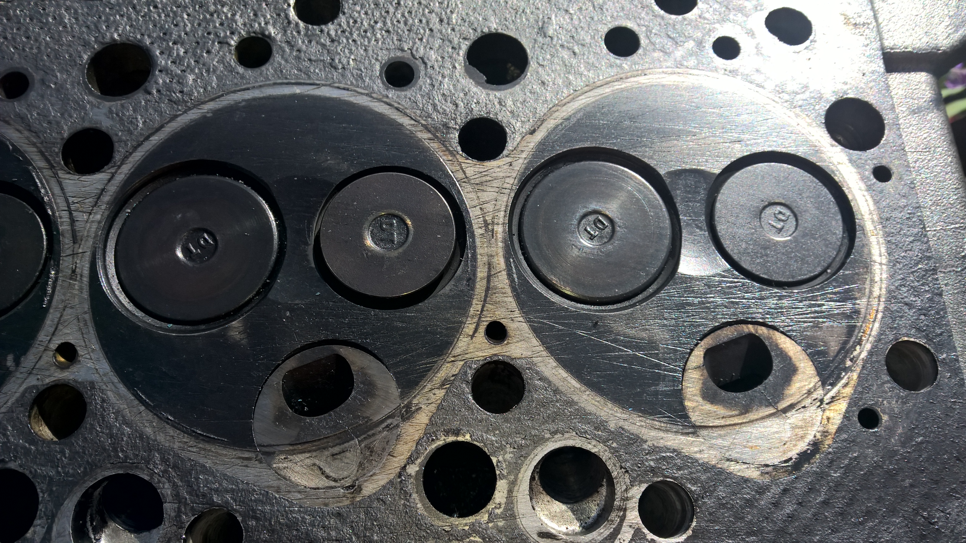 Они мне изначально коллектор меняли с турбиной. Коллектор с разборки был. Как оказалось, внутри приржавел обломок металлический. Коллектор отмыли, а его не заметили. Он аккурат напротив 4го цилиндра был. Если клапан скрутить, то видно место, где он приржавел. Всё собрали, завели и на тебе, появился стучок. Вскрыли - пластинка 2-3 мм, на четвёртом поршне лежит. В итоге спланировали голову, заменили маслосъёмные. Остальное в порядке было. Так что я их под двигатель и не ориентировал. А вышло так, что они голову сняли. Так я с такой головой ездил с осени. Даже горы машины прошла.