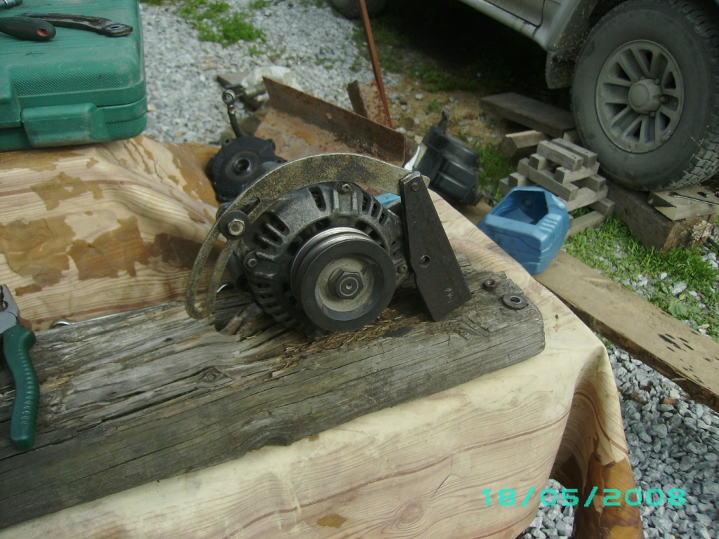 Да,сварной.К пластине из металла 4мм(но лучше делать мин из 8мм!!!) перпендикулярно приварена по всему периметру полка из обрезанного на половину(по профилю) двутавра(№10 или 12,не помню).На конце приварена втулка под генератор,усиленна пластиной к "дву"тавру.