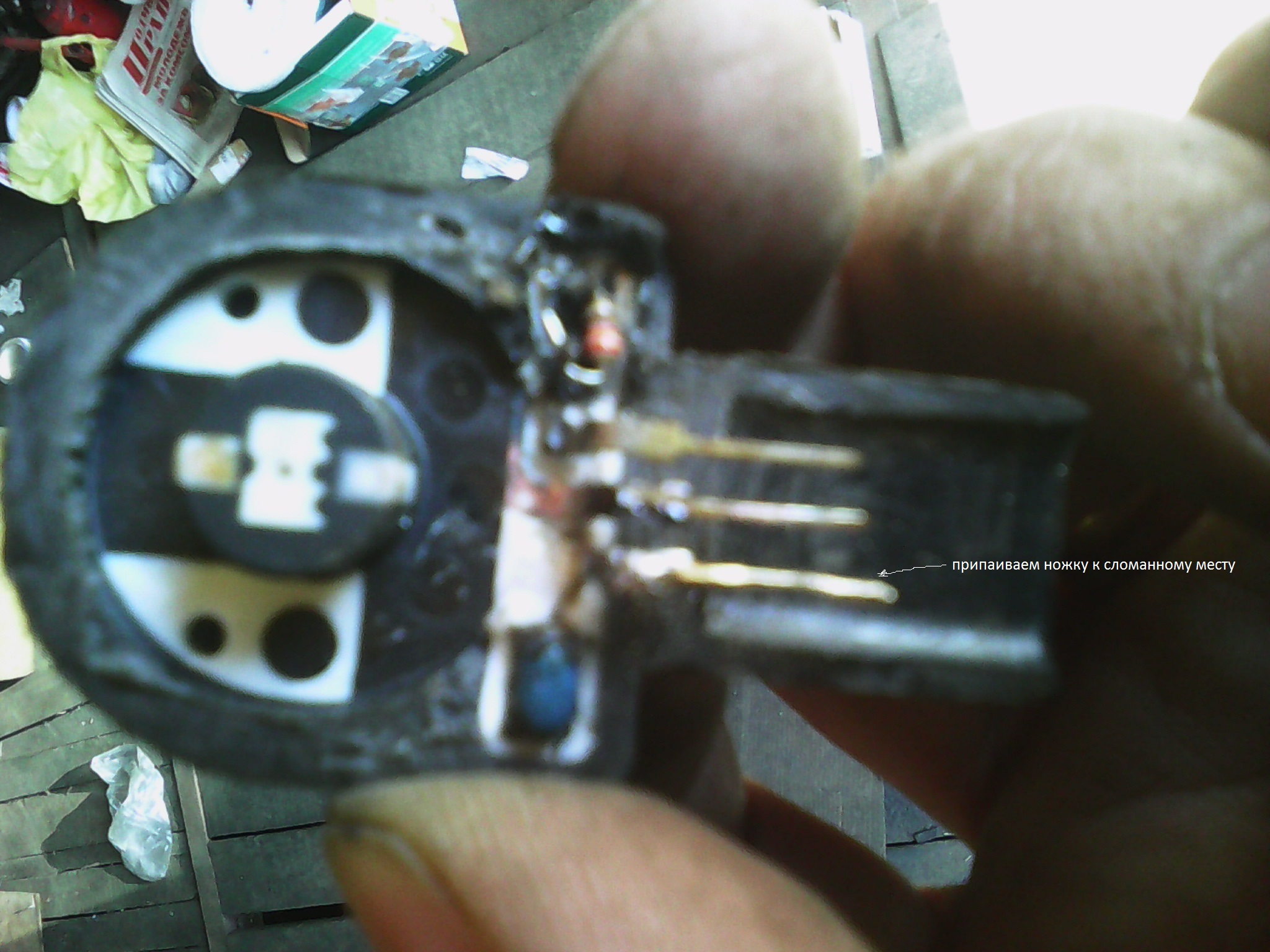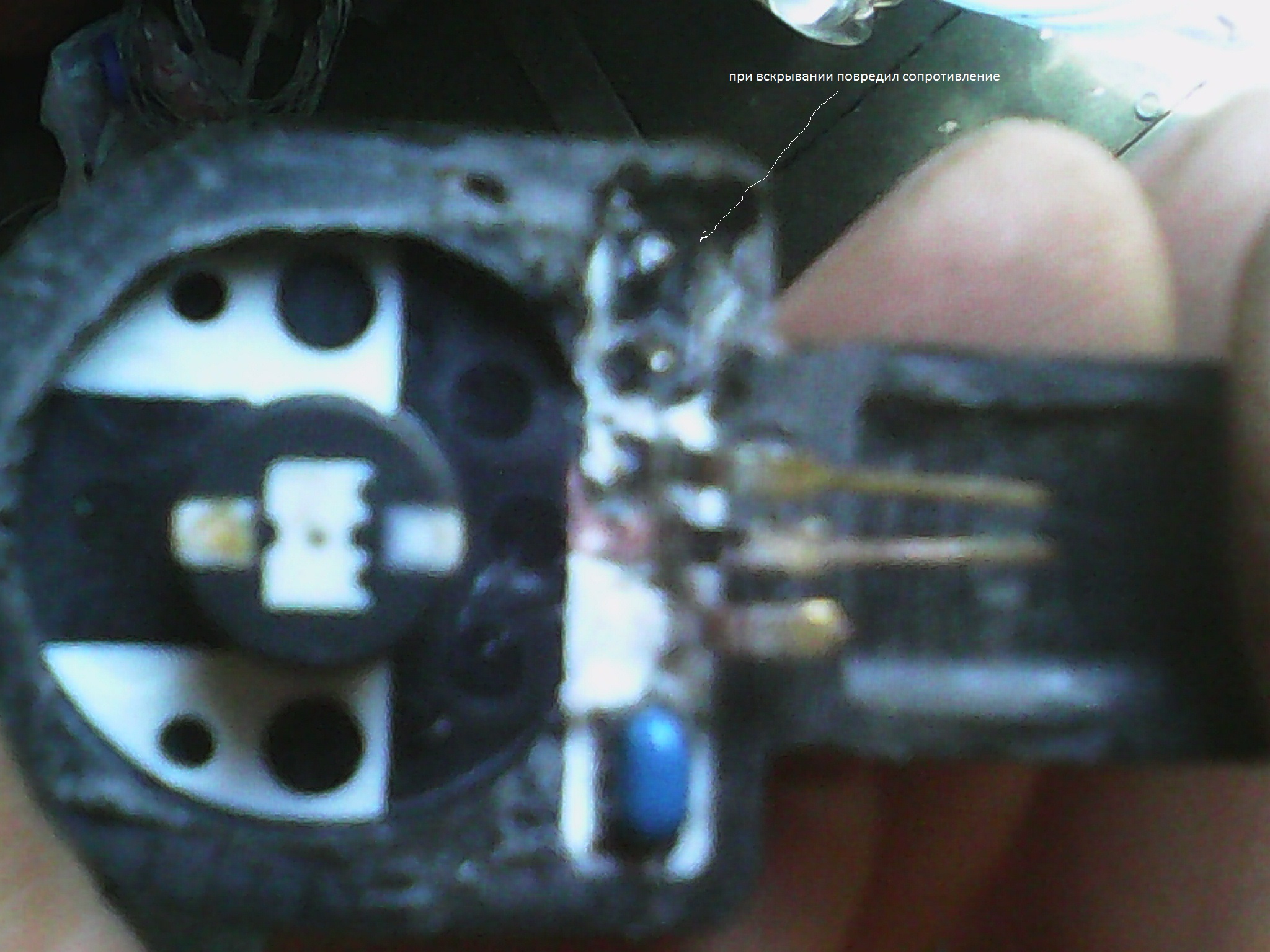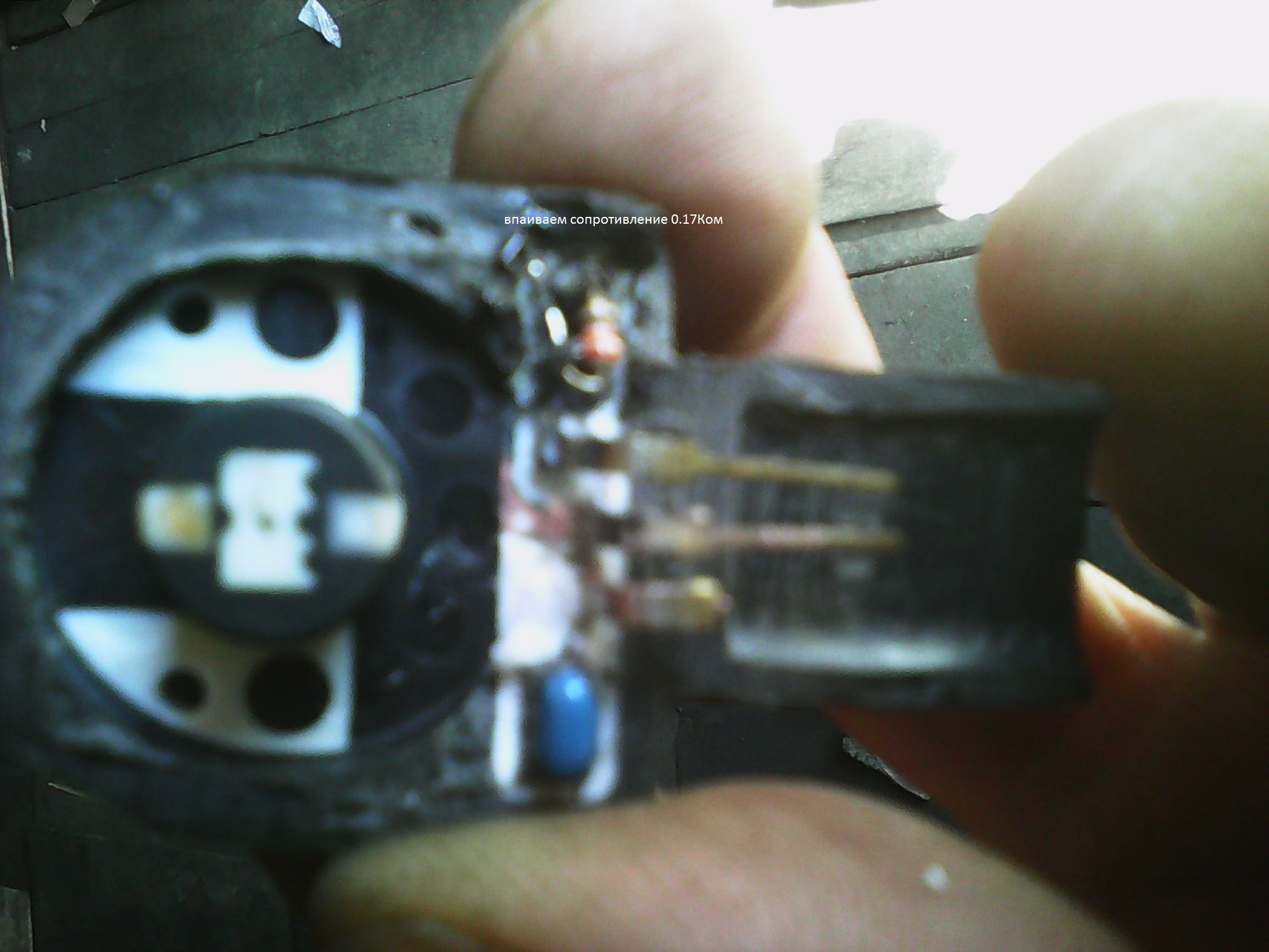 загорелась лампа корректора фар,начал искать неисправность.вобщем -неисправность обнаружилась в заднем датчике положения кузова.был сломан один контакт в датчике\сгнил\.залез на известные сайты запчастей-цены на датчик бешенные.решил попробывать сделать сам.взял датчик и распилил аккуратно его по кругу.после чего его располовинил\при этом сломал сопротивление\.замерил сопротивление между средним контактом и крайним \который целый\оно равняеться -0.17Ком.соответственно с другой стороны с которой сломал сопротивление я впаял сопротивление такогоже номинала.оно как раз уместилось в ямке от родного сопротивления.после чего восстановил отгнивший контакт.ну и конечно начал всё собирать обратно.соединив распилинные половинки между собой я распил запаял паяльником .собрав всё на место ошибка пропала сама.корректор работает исправно!!!фары вверх-вниз двигаються как и должны!!