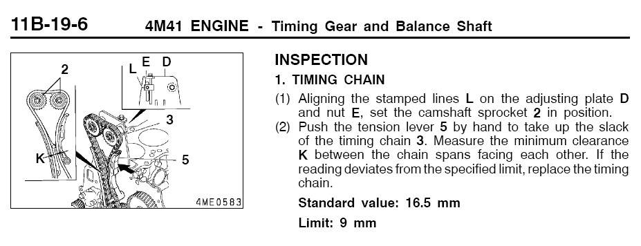 Вот тебе стандартная процедура замера степени растяжения цепи. Из мануала.