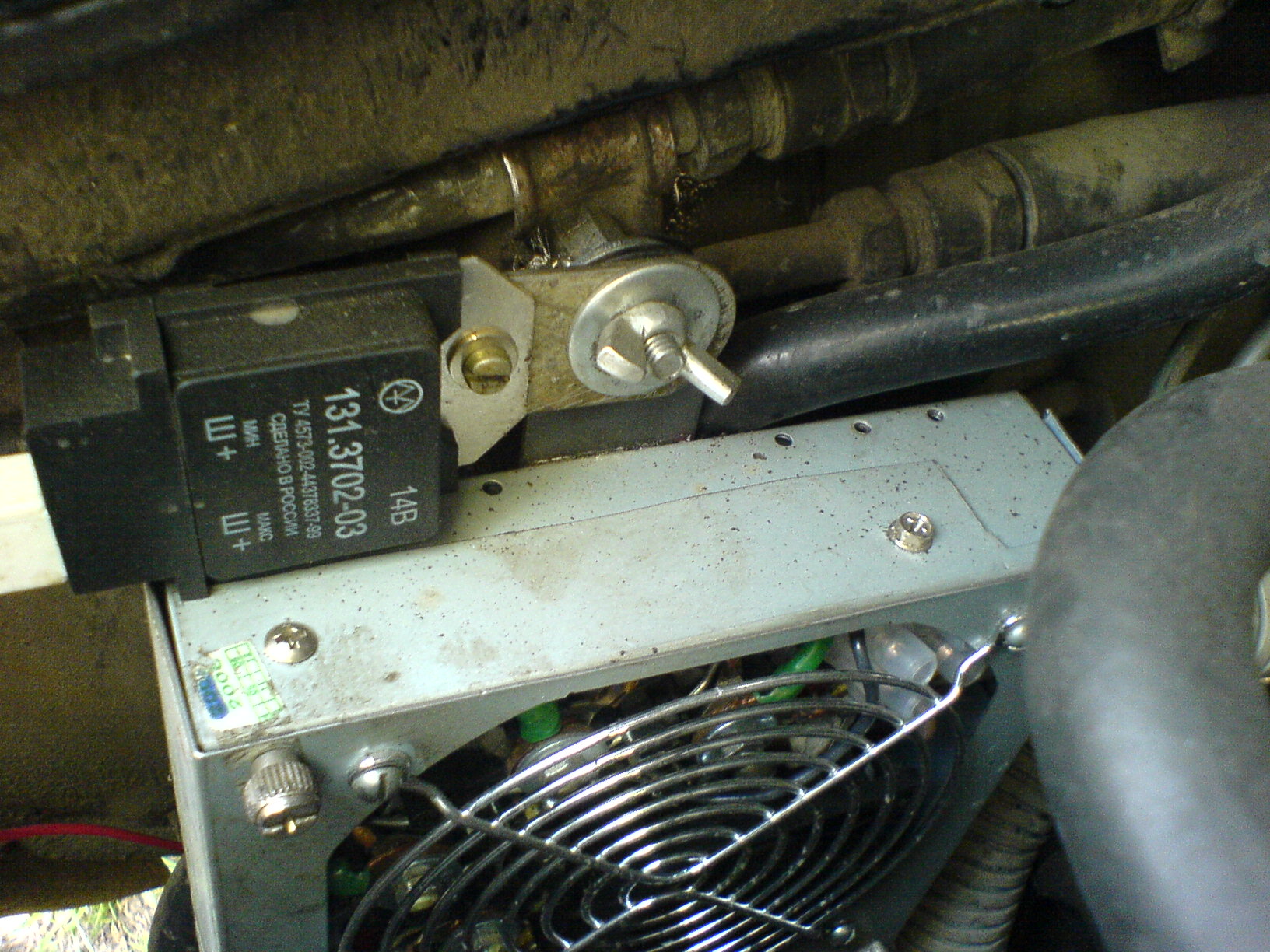 Фото с выносным реле-регулятором. Реле для удобства закреплено так-же через лапку висячего замка.