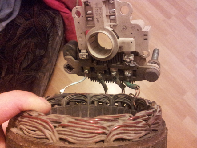 Это я уже понял,вопрос в том правильно ли припаял обмотки к мосту.Сомневаюсь ведь.Теперь уже непонятно как оно должно по местам садиться...