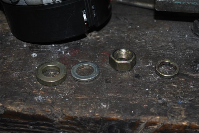 Тот что справа, это волговский от 406дв, а слева родной. оставалось самое сложное(как я тогда считал), нужно было его присабачить, причем так, что бы он еще и работал. для начала решил примерить его, подобрал длинный болт под нижнее крепление и воткнул гену зафиксировав его этим болтом(все оч. просто за исключением того что не удобно притягивать гайку нижнего крепления). после этих манипуляций стало ясно что шкив не совпадает по оси, т.е. выступает вперед на 5мм. решил эту маленькую проблему оч. просто. открутил шкив и убрал подложенную на заводе проставочную шайбу, она как раз 5мм толщиной. затем собрал все в обратном порядке установив все по очереди: шкив, проставочная шайба, обычная шайба, гравер, гайка. примерил так же как и в прошлый раз, все четко. оставалось придумать как закрепить верхние уши. прижал гену до упора и замерил расстояние между отверстиями в креплениях. взял две металлические пластины, обточил их и просверлил отверстия под болты.