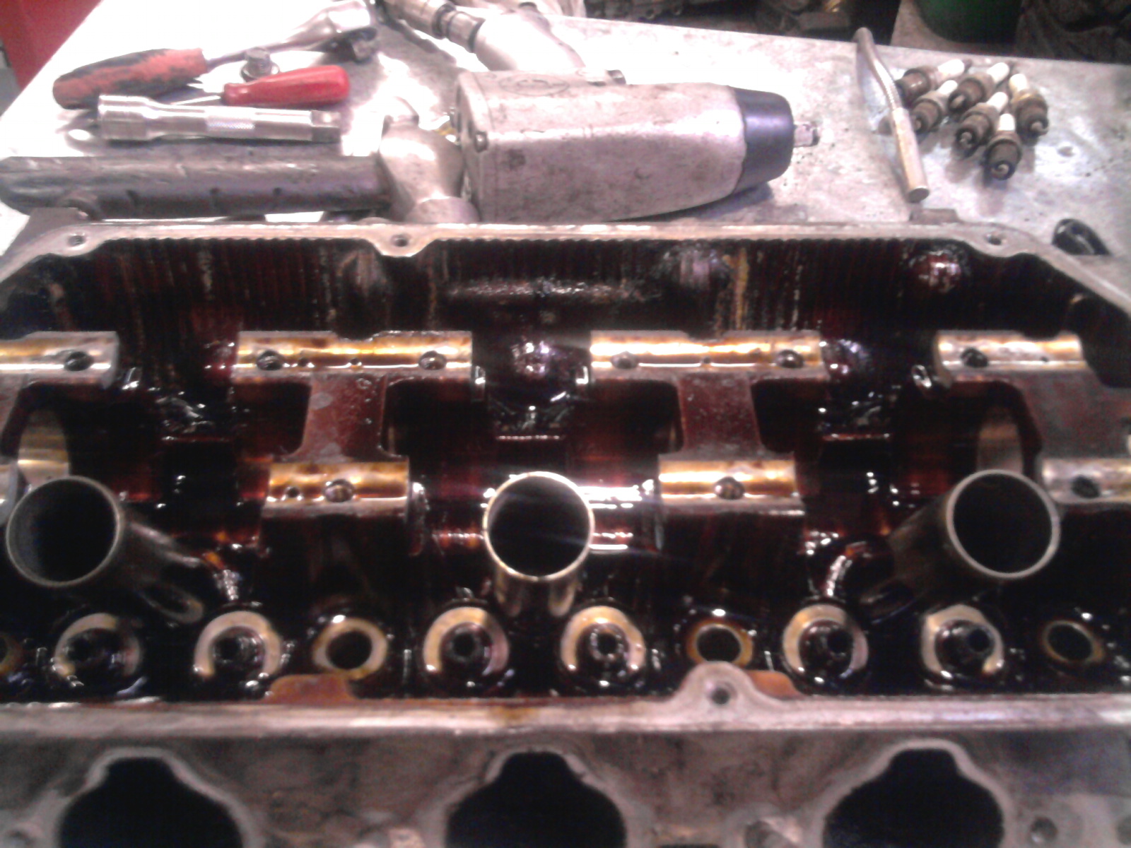 до большого ТО оставалось тысяч сорок, я купил две двадцатилитровые банки масла (шелл 10-40, за какие-то копейки, по сравнению с розничной ценой) не торопясь доехал до ТО, выдрал мотор поменял кольца и т.д. (как говорят мотористы - помолодил мотор) и о чудо! масло есть перестало.... для меня все это вылилось в цену запчастей и мои трудозатраты, а был-бы поумнее чуть-чуть и не торопясь купил-бы полный набор всей этой хрени на мотор на ebay (сейчас уже не помню сумму, но вместе с доставкой и таможней получалось меньше штуки баксов, и это все-все-все, вместе с поршнями нужного р-ра,помпой, маслянным насосом, вкладышами, гидрокомпенсаторами, прокладками.... короче - ВСЕ!) - так и вообще-бы попал в областную книгу гиннеса, по затратам на такой