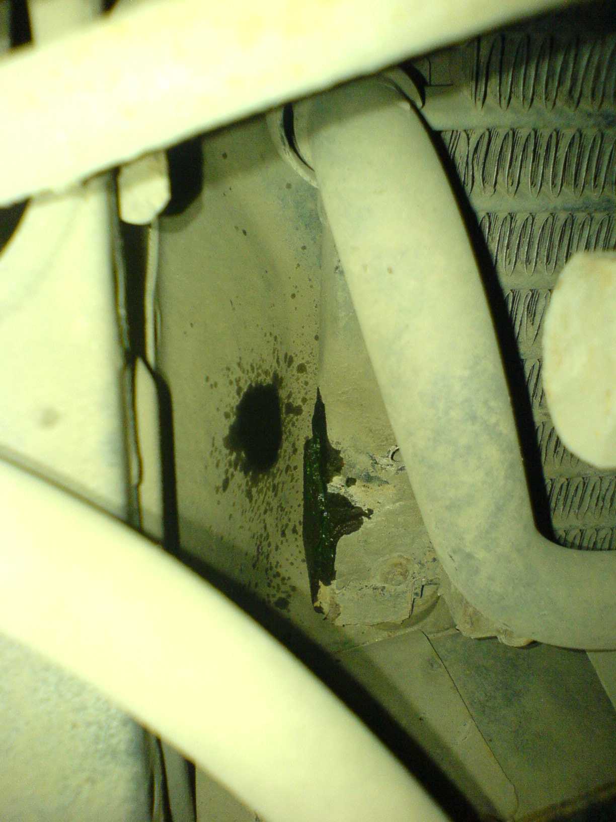 Сеня был у кондиционерщиков. На вакуум проверили, сказали что все ок. Заправили, минут пятнадцать машина работала, кондик холодил хорошо. Лазили, лазили с УФ лампой, под конец нашли утечку.Это низ радиатора со стороны правого крыла. Но можно ли заварить однозначного ответа не дали. Глянте, плиз, Мож у кого было так. Заварить можно или нет? Нужно срочно. Спасибо!!!