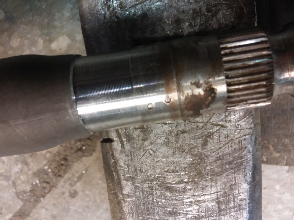 Накерниваем вал по кругу в месте посадки подшипника. Зачищаем и обезжириваем.
