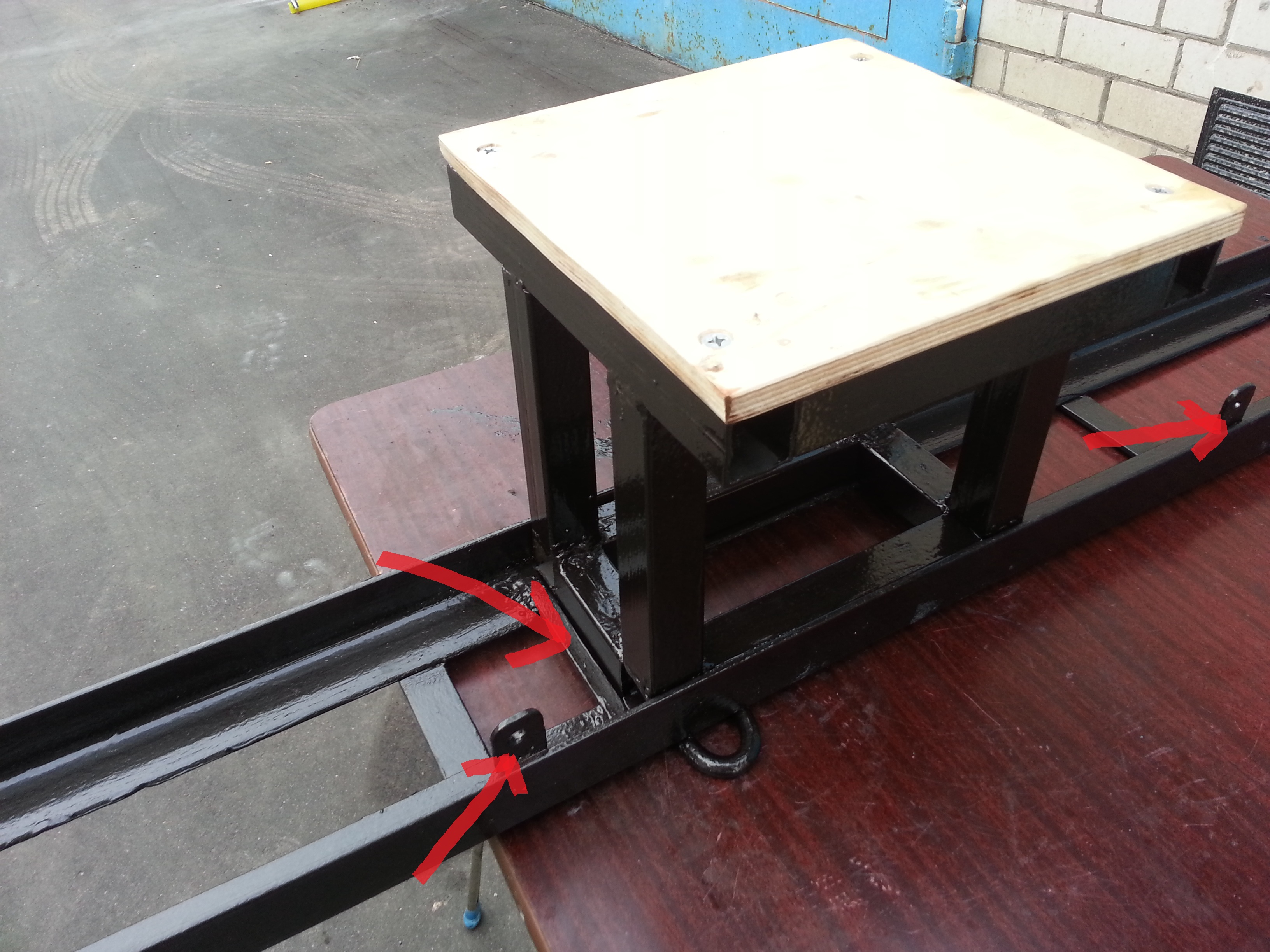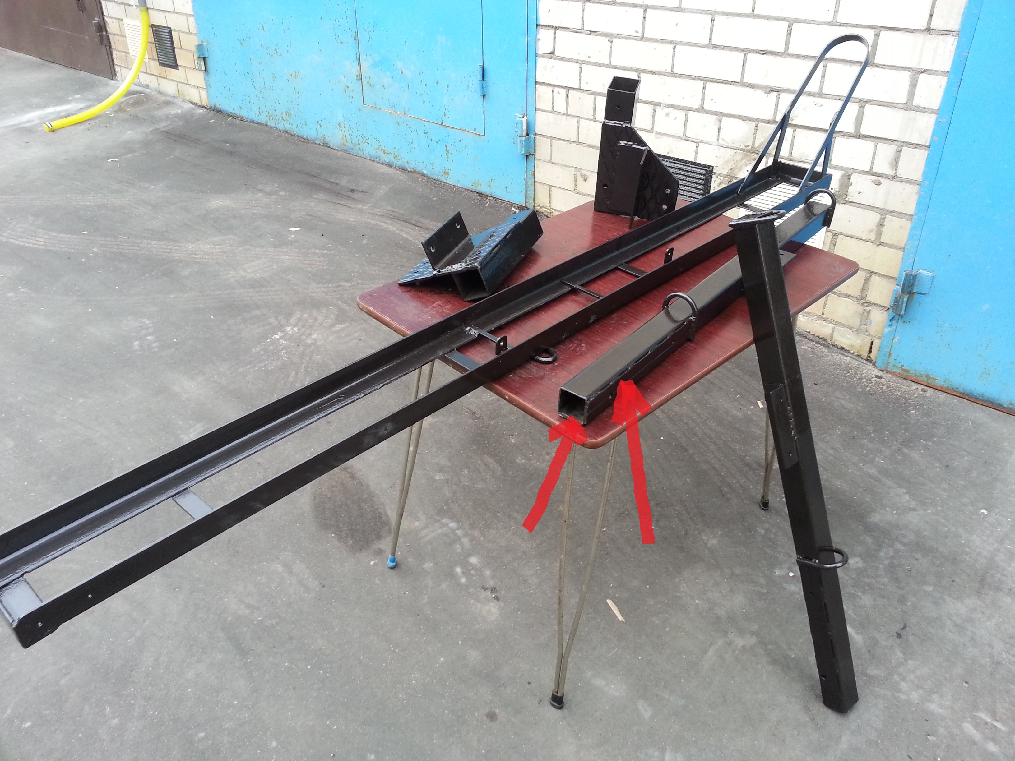 Квадратов подходящего сечения не нашел, потому наварены дополнительные пластины, заодно усиливают и служат как дополнительные ребра жесткости