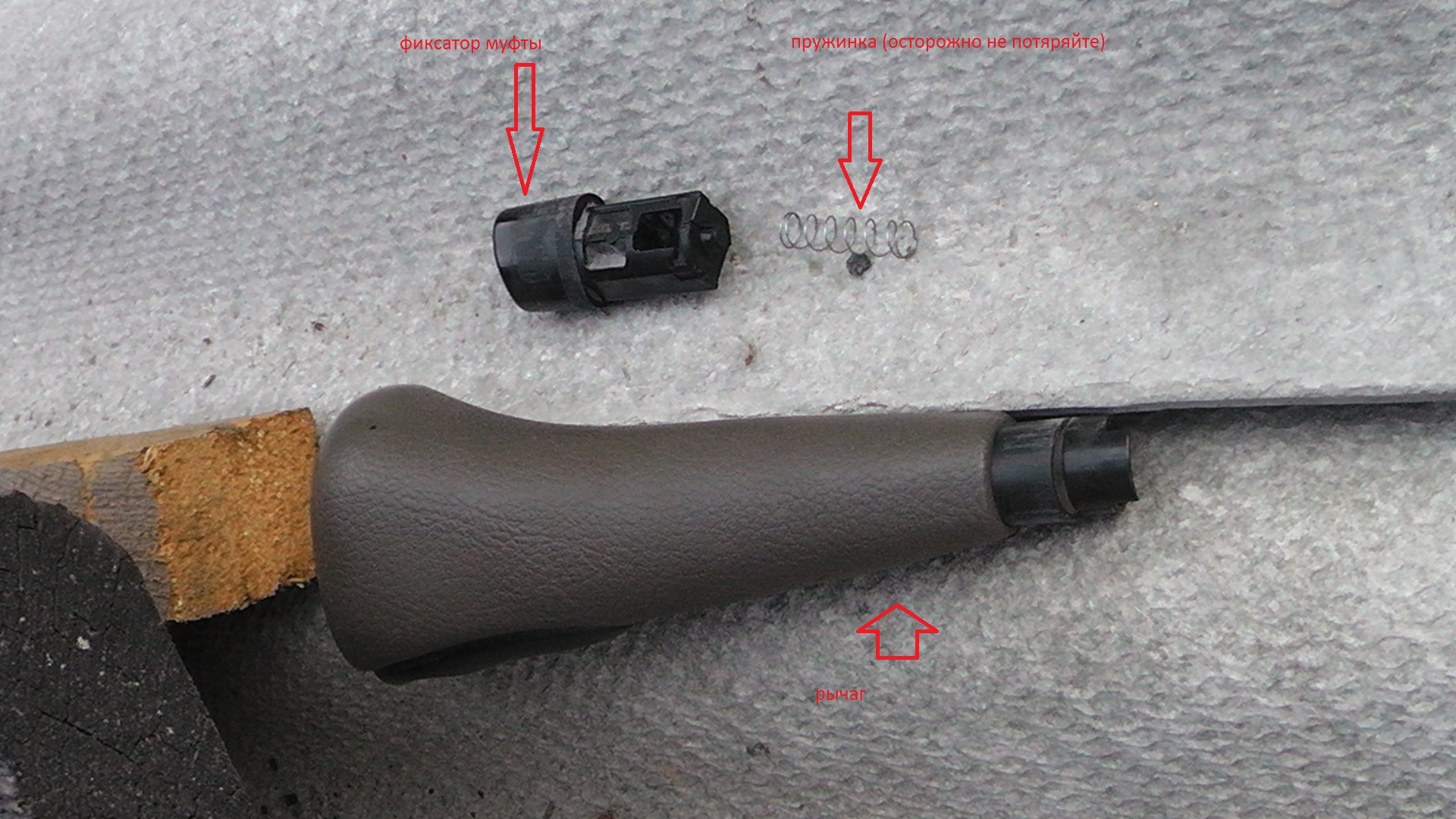 Аккуратно! При снятии рычага переключения, из него вылетает пружинка.