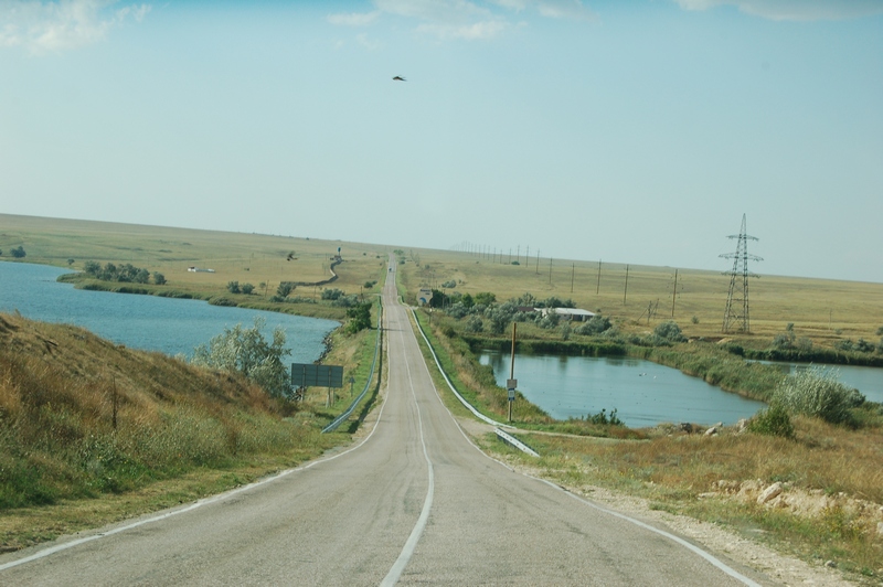 Далее, немного поплутав благодаря Навителу, по Евпатории, вы выехали на Черноморское шоссе, и вот плотина на Донузлаве, и вот уже самый западный крымский регион, и наше первое месторасположение.