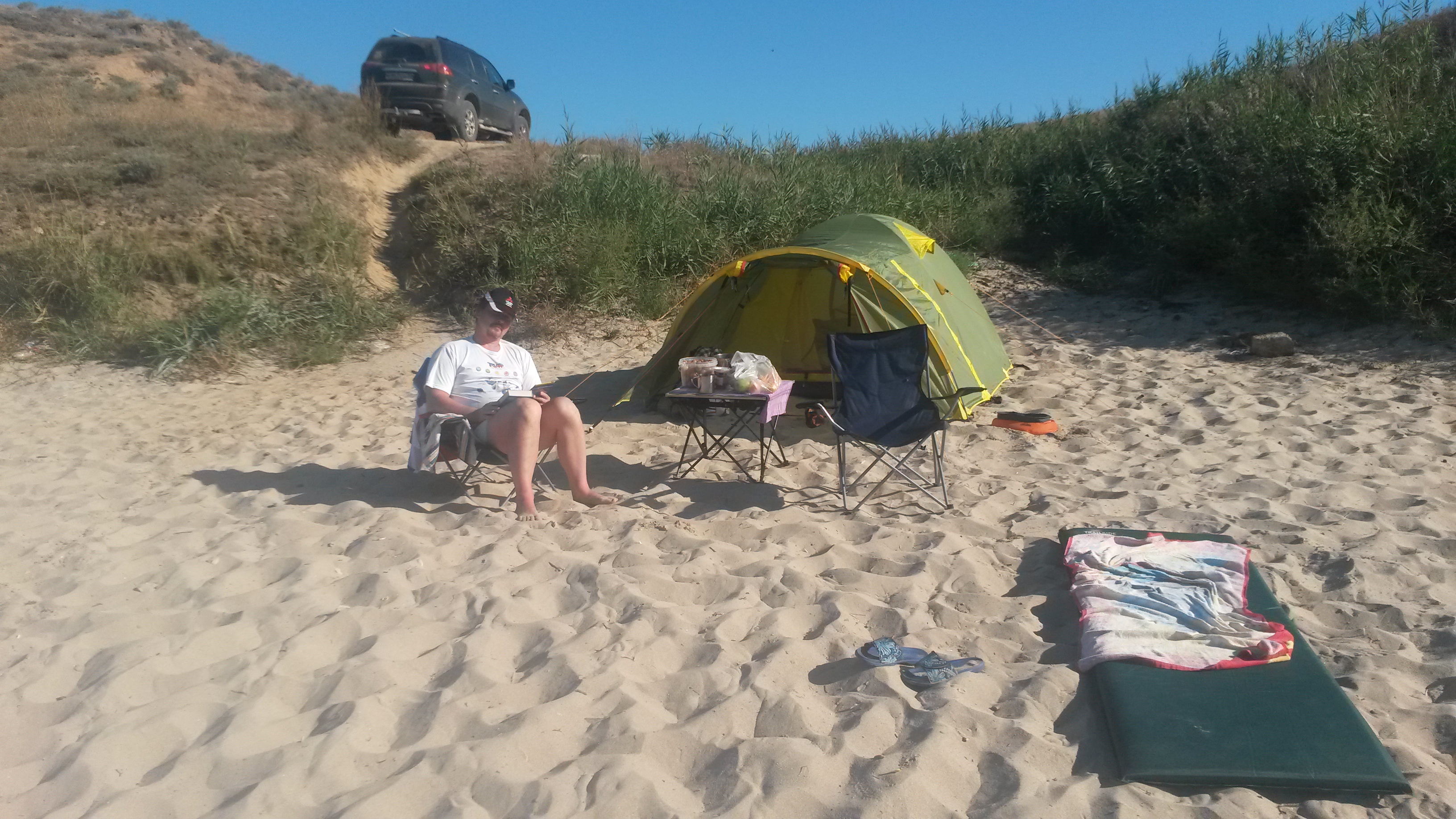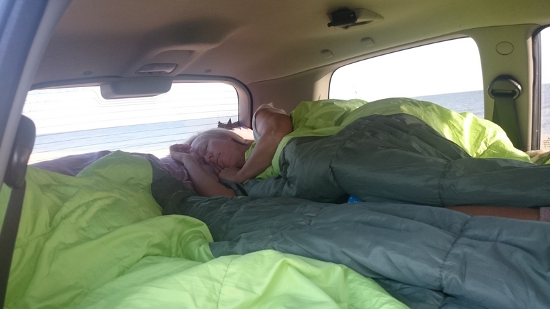 Спали в машине. У меня стоит спальная система, переделанная из той, что я заказывал еще в 2012 году Диме Скитальцу. Я чуть позже опишу что там и как, но сразу скажу, что спать в машине было очень удобно и ничуть не хуже, чем в палатке.