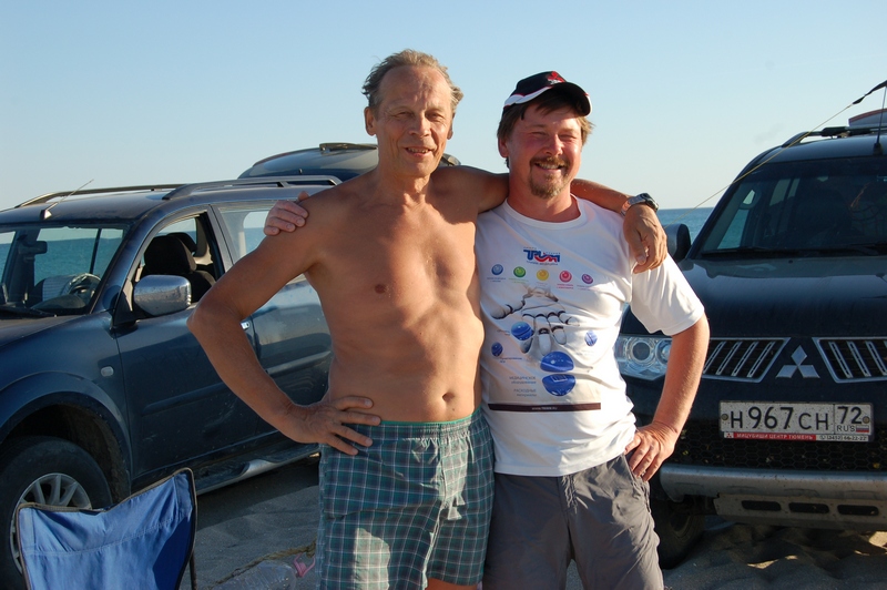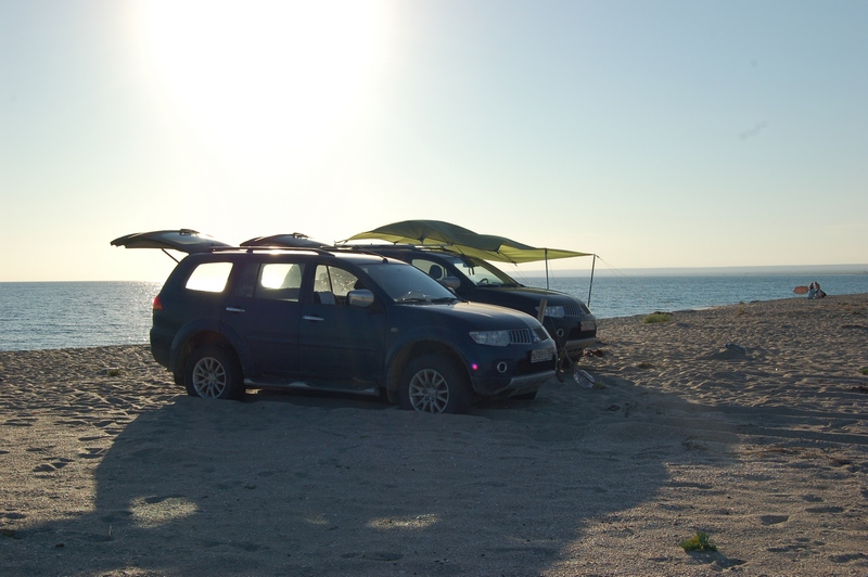 Как я уже писал выше, еще планируя поездку в Крым, читал разные отчеты на разных форумах. И меня очень заинтриговала убежденность Василия (VAZ), в том что запад Крыма и именно район мыса Тарханкут самые лучшие в плане отдыха. Так получилось, что Василий уже 17 лет ездит сюда и прекрасно знает эти места. В этом году он с женой Ириной выехал в Крым из Москвы 30 августа, ну а мы были в Крыму уже 6 сентября. Переписывались в личке, и договорились созвониться, как будем на месте. На мой звонок уже в Крыму, с места нашей стоянки, Василий ответил - едем к вам! В общем мы провели несколько не забываемых дней вместе. Василий предложил нам сменить место дислокации и переехать туда, куда они ездят из Черноморского, а именно на пляжи Беляуса. Это песочная коса между Черным морем и лиманом от озера Донузлав. Мы с радостью приняли предложение, и два дня стояли на Беляусе.